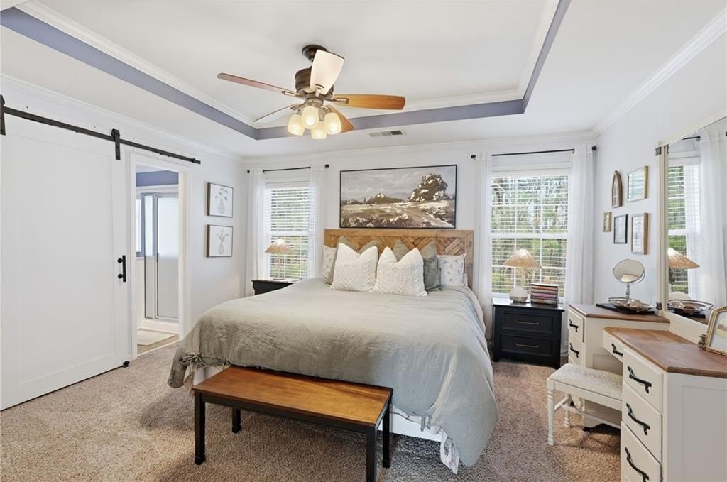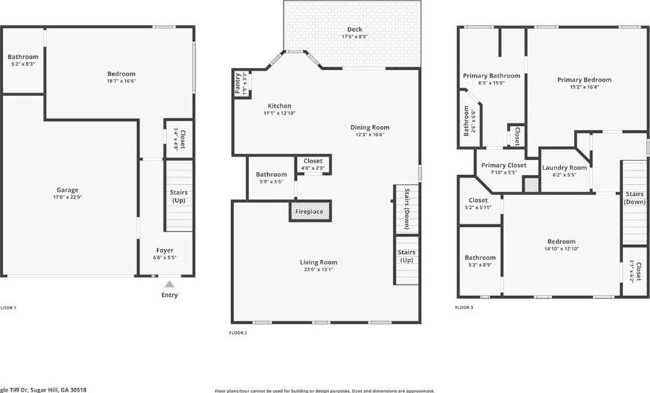 Welcome home to 460 Eagle Tiff Drive, a beautifully maintained, residence in the heart of Sugar Hill, GA. This inviting home offers a thoughtful and flexible layout featuring two spacious bedrooms with private en suite baths, along with an additional bedroom and full bathroom conveniently located on the main level-perfect for guests, in-laws, or a home office. This home shines with a thoughtfully upgraded kitchen featuring stone countertops, crisp white cabinetry, and stainless steel appliances, perfectly complemented by a breakfast bar ideal for casual dining and entertaining. The home has been meticulously cared for, offering a clean, move-in-ready feel throughout. With a functional layout and timeless finishes, this property is perfect for both everyday living and hosting guests. Conveniently located near shopping, dining, parks, and top Sugar Hill amenities-this is one you won't want to miss.