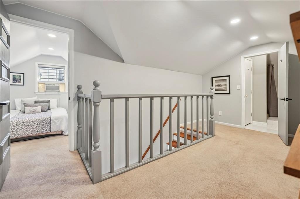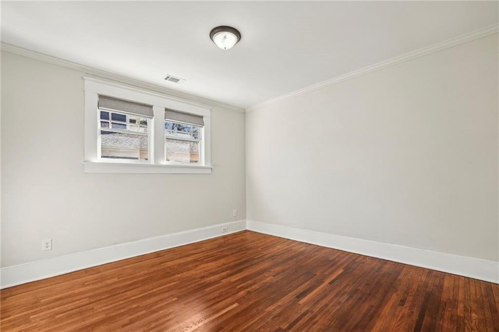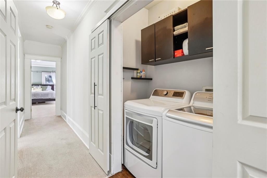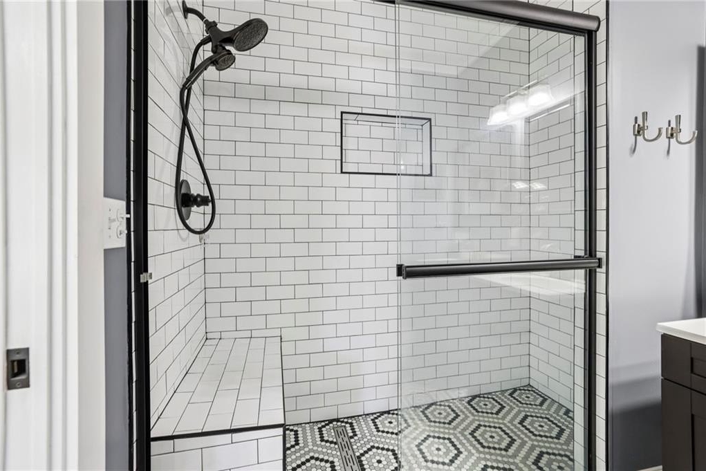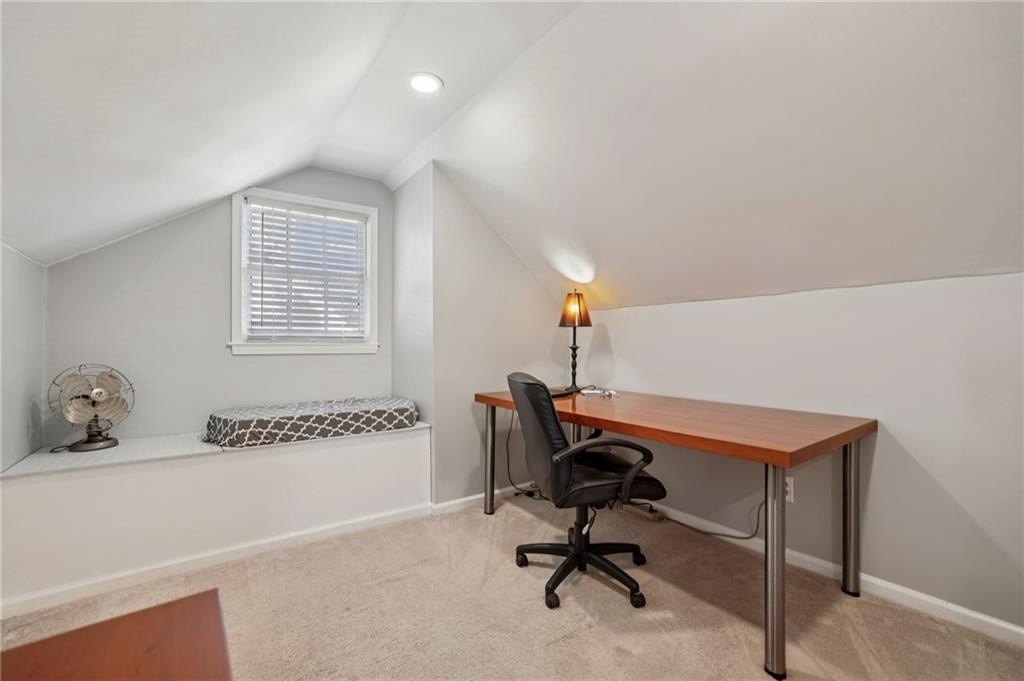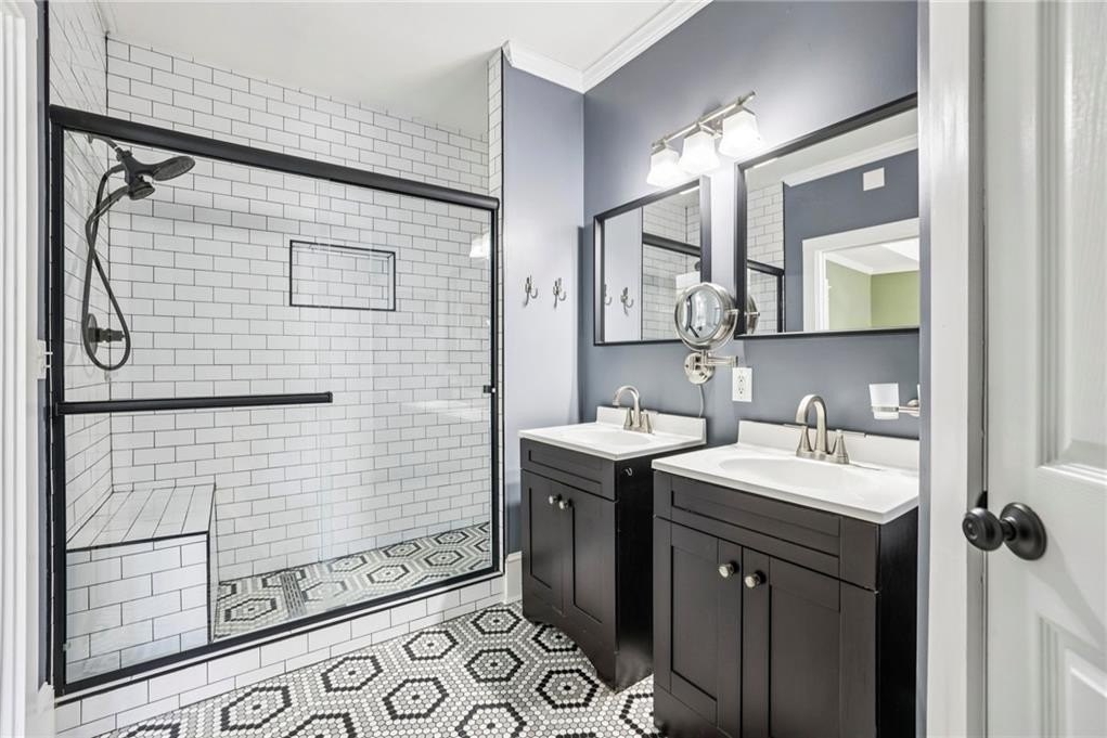 Porch-sitting charm included. This beautifully preserved 1930 brick bungalow sits in the heart of Kirkwood and blends classic Craftsman details and thoughtful period updates throughout. Painted a timeless medium gray, the exterior features decorative roofline sconces and a welcoming side porch entry-perfect for sipping tea and chatting with neighbors. The warmth and charm are immediately evident as you enter the home. A light-filled living room spanning the full width of the home and centered around a white brick fireplace flanked by built-ins and charming windows that set a timeless tone. The living room connects seamlessly to the dining area and kitchen through elegant French glass doors. Hardwood floors, crown molding, wide trim, and a statement chandelier anchor the dining space, while a raised breakfast bar opens to the kitchen. The kitchen offers abundant stained cabinetry, granite countertops, stainless steel appliances, a large pantry, and hexagon tile flooring. The main level boasts 10 ft ceilings and includes two secondary bedrooms-one with built-in shelving and a TV nook, the other generously sized with a walk-in closet-along with a beautifully updated hall bath featuring classic tile flooring and crisp white subway tile in the tub/shower. The oversized primary suite is a true retreat with vaulted ceilings, a walk-in closet, and French doors opening to the back patio. The primary bath features double vanities, a linen closet, tile floors, and an oversized subway-tiled shower with seating. Upstairs offers two additional bedrooms, and a full bath-ideal for guests, work-from-home space, or flexible living. Outside, enjoy a private, fenced backyard with mature landscaping and a cozy patio accessible from both the kitchen and primary suite. Location is everything and just 4 houses away from Bessie Branham Park, and a short walk to the library and all the restaurants, shops and gathering spots downtown Kirkwood has to offer. Classic, inviting, and full of character-this bungalow feels like home the moment you arrive.