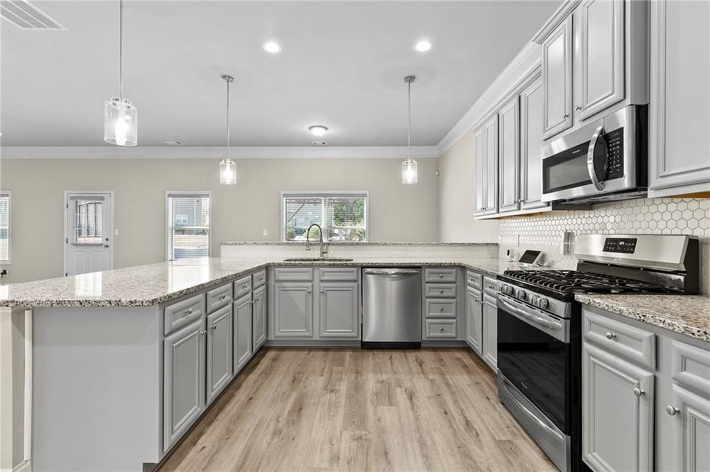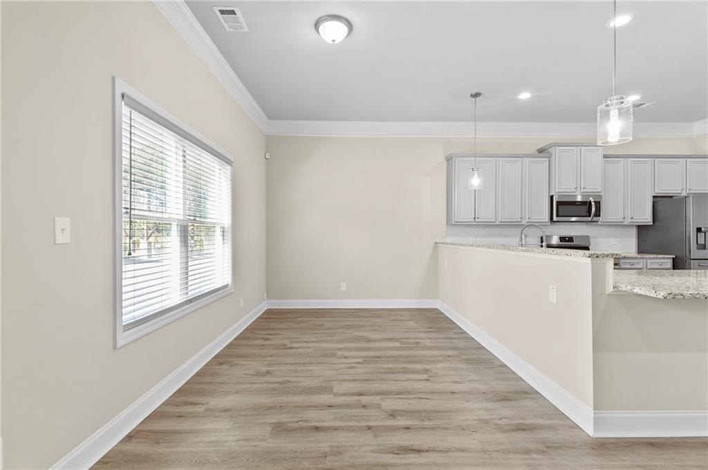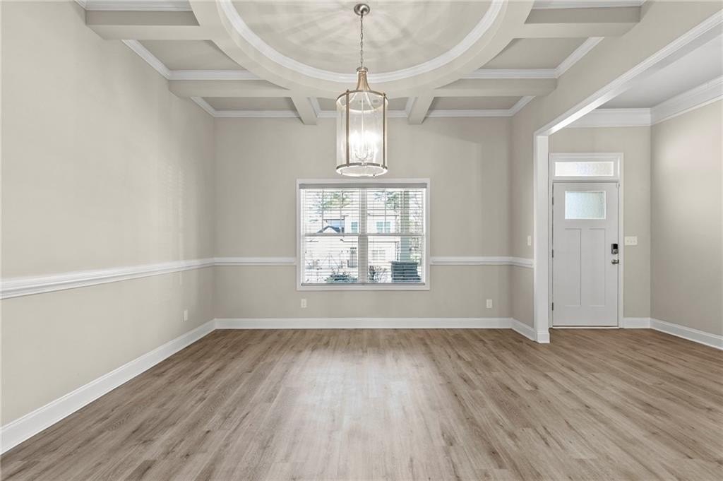 This one has every builder upgrade that was offered!! Step into this barely lived in, five-year-old home that feels brand new! This beautiful 3-bedroom, 2.5-bathroom residence is designed for modern living. The main level features beautiful coffered ceilings in the dining room that flows through an open-concept layout. The spacious kitchen is the heart of the home, boasting a huge peninsula perfect for meal prep and entertaining. It opens seamlessly to the family room and dining area, creating a welcoming and connected space for daily life. Upstairs, you'll find all three bedrooms, including an oversized primary suite complete with an oversized closet. Next, you'll find both secondary bedrooms and the laundry room, making chores a breeze! The backyard provides a secluded retreat complete with the community pavilion, grills and playground.. right in your back yard!! This home perfectly blends style, comfort, and convenience, offering a fantastic opportunity for anyone looking for a move-in ready property.