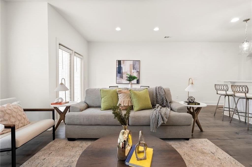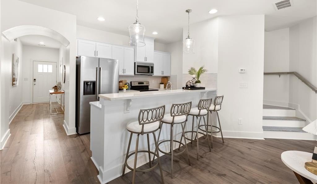 This STUNNING END UNIT showcasing exquisite and well-thought-out designs. Prepare to be amazed by the tons of natural light that fills this remarkable 3-bedroom, 2.5-bathroom residence. With a 2-car garage, a driveway spacious enough for two cars, and an inviting kitchen on the main level, this home offers convenience at its finest. As you step inside, you'll be captivated by the open concept floor plan, perfect for modern living and entertaining. The kitchen boasts elegant granite countertops and top-of-the-line stainless steel appliances, including a side-by-side fridge. This home features beautiful hardwood floors on the main level, creating a luxurious and cohesive atmosphere throughout and carpet on the upper level. Indulge in the lavishness of the master bathroom, complete with a separate tub and shower, a double vanity, and a generous walk-in closet. Two additional spacious bedrooms await you on the upper level, providing ample space for your loved ones or a dedicated home office. For those with furry companions, the yard is fully fenced, ensuring a secure environment for your pets to roam and play freely. The Homeowners Association takes care of the lawn maintenance, allowing you to enjoy a well-manicured exterior without the hassle. This beautiful new community is conveniently located in Lithonia, offering easy access to shopping centers, grocery stores, and the nearby I-20. Situated just off Covington Hwy, this location is a commuter's dream. Don't miss the opportunity to explore this exceptional home.
