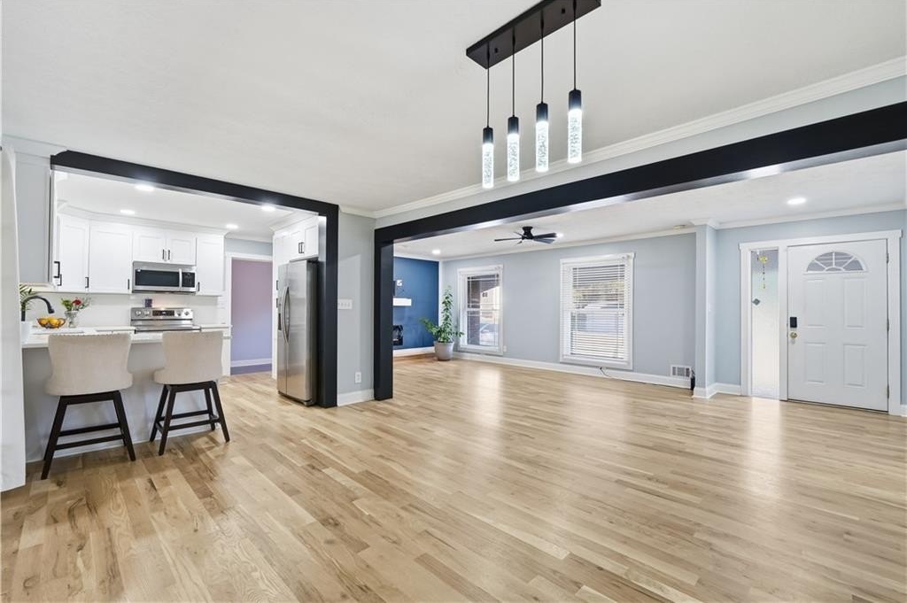 SELLER IS WILLING TO GIVE 5K TOWARDS CLOSING COSTS! Welcome to this amazing home located in the heart of Morrow, offering the perfect blend of comfort, style, and convenience. Centrally located with Home Depot, AutoZone, Chick fil A, and many other everyday essentials just down the street, this home sits in a very quiet and peaceful area while keeping you close to everything you need. This very spacious home features four bedrooms and two full bathrooms with nearly 1,800 square feet of beautifully updated living space. The open floor concept creates an inviting flow throughout, highlighted by gorgeous cedar posts, an electric fireplace, modern light fixtures, and recessed lighting that elevate the overall design. The brand new kitchen is a true showstopper, featuring new cabinets, an L shaped quartz countertop, stunning white backsplash, a large farmhouse sink, and brand new stainless steel appliances including a microwave, dishwasher, refrigerator, oven, and range. Ample pantry space makes this kitchen both stylish and functional for everyday living and entertaining. Enjoy the huge sunroom with new LVP flooring, offering endless opportunities for a second living area, home office, or relaxation space. A large laundry area adds even more convenience, and an extra room near the sunroom serves as the fourth bedroom with tremendous space and great closet storage. The bathrooms have been completely remodeled with ceramic tile stand up showers, white ceramic flooring, quartz countertop vanities, and modern fixtures. The master bedroom is exceptionally large and features its own elegant bathroom with a ceramic tiled tub, white ceramic flooring, a new vanity, and stylish finishes. This home has been fully remodeled inside with brand new hardwood floors, fresh paint inside and out, new trim throughout, and partially updated electrical and plumbing. Major upgrades include a brand new roof, a new garage door, and an A C system in great condition. Outside, you will find a spacious front and back yard, a fully fenced backyard, and a shed for extra storage. The driveway has been partially replaced and offers plenty of space for multiple vehicles, along with an additional carport for even more parking. Do not wait to view this incredible home. Start the year 2026 just right by making this beautifully renovated Morrow property yours.