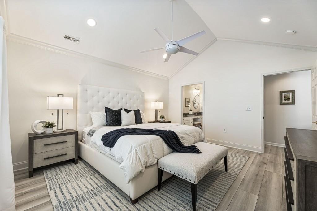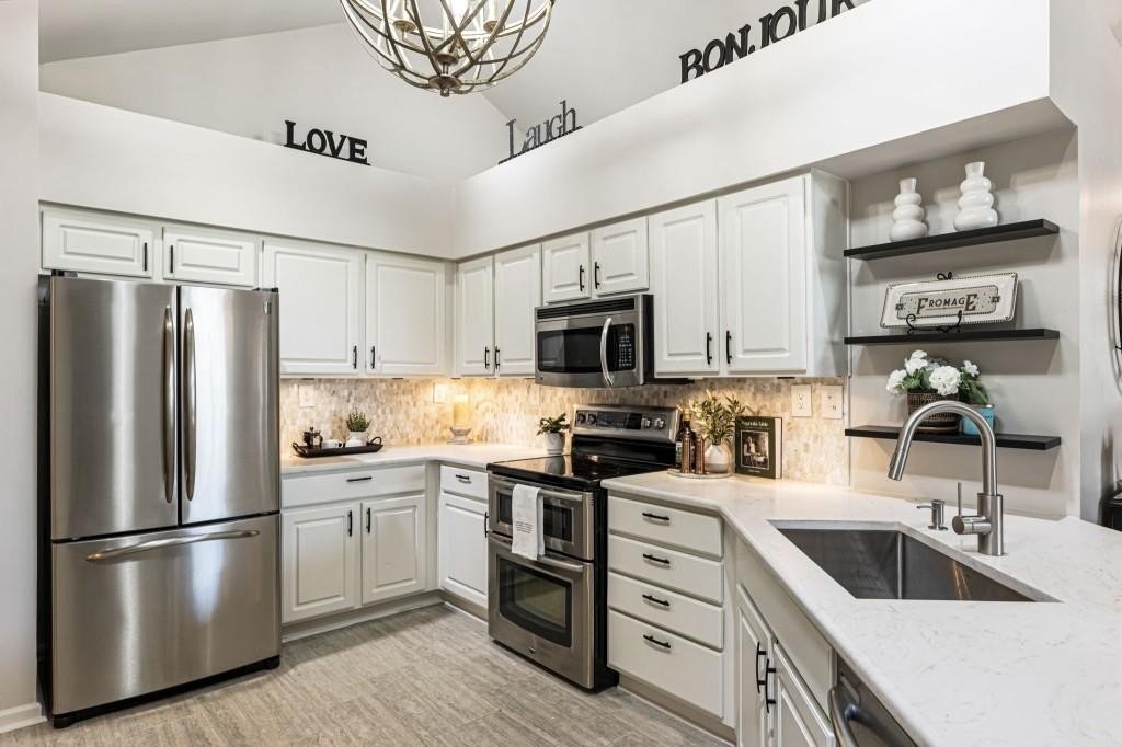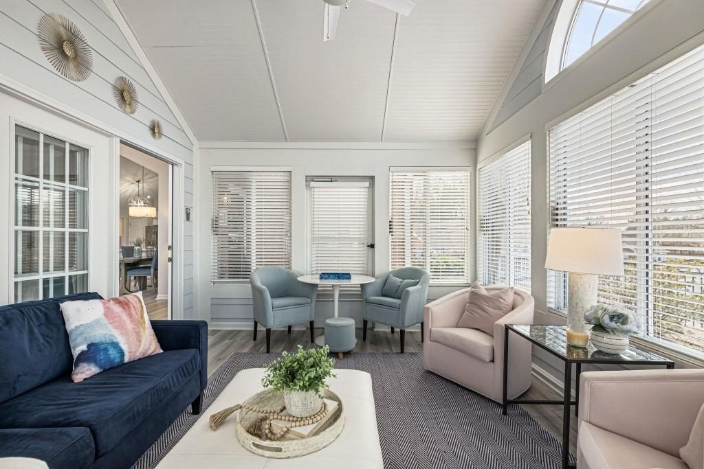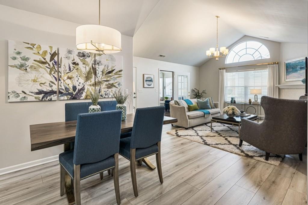 An exceptional and increasingly hard-to-find opportunity, this completely renovated, move-in ready one-level residence delivers the ease of stepless living paired with the feel of a private luxury retreat. Thoughtfully redesigned from top to bottom, this 3-bedroom, 2-bath home with a 2-car garage and coveted sunroom offers refined, modern living in the heart of Johns Creek. Every detail has been meticulously updated. Freshly painted walls & trim, new luxury LVP flooring, new windows and upgraded designer lighting and ceiling fans create a bright, cohesive, and elevated aesthetic. The stunning, fully renovated kitchen is both functional and beautiful, featuring premium stainless-steel appliances, new quartz countertops and backsplash, crisp white cabinetry, new tile flooring, a farmhouse sink with pull-down faucet, and an added skylight that fills the space with natural light. The open, flowing floor plan showcases a vaulted great room with a gas fireplace, seamlessly connecting to the dining area. A spacious laundry room with a dedicated closet/mudroom adds everyday convenience and valuable storage space. The primary suite is a true retreat, featuring a spacious walk-in closet and a beautifully updated bath with granite countertops. Two additional bedrooms offer ideal flexibility for guests or a home office, while the refreshed secondary bath is equally stylish. One of the home's standout features is the beautifully designed vaulted sunroom - a serene, light-filled space that feels like a private retreat, perfect for relaxing year-round. Additional features include newer furnace, new front glass door, and storage throughout, including a pantry, coat closet, and a spacious 2-car garage. Enjoy truly carefree, low-maintenance living with an HOA that includes Everything - landscaping, water, sewer, trash, road maintenance, termite protection, and exterior maintenance. Just across the street, you'll find the recently renovated world-class community amenities including a pool, fitness center, clubhouse, and library. Ideally situated just minutes from GA-400, Avalon, Downtown Alpharetta, top-tier shopping and dining, award-winning schools, and Emory Johns Creek, this home represents a rare blend of luxury, location, and low-maintenance living. A truly exceptional offering that is increasingly hard to come by!