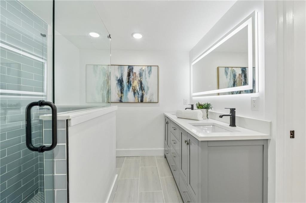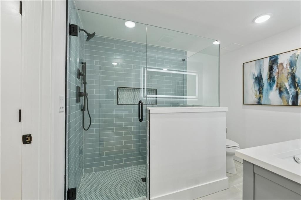 Stunning fully renovated 5-bedroom, 4-bath Brookhaven home with bespoke luxury upgrades throughout. This exceptional residence includes a fully independent one-bedroom in-law apartment with private entrance, full kitchen, and laundry, offering flexibility for multigenerational living, guests, or rental income. Located just minutes from Brookhaven's premier shopping and dining, this home combines modern design with effortless sophistication. The main level features an open, sun-filled layout anchored by a designer kitchen with quartz countertops, custom cabinetry, premium appliances, and a convenient pot filler. The primary suite serves as a private sanctuary, complete with a spa-inspired bath and expansive closet, while additional bedrooms provide versatile space for family, guests, or a home office. Every detail has been thoughtfully upgraded, including new electrical, all-new plumbing with oversized copper lines, high-performance HVAC systems with Nest thermostats, engineered hardwood floors throughout, and a custom NewAge garage floor. The exterior has been fully refreshed with TimberTech decking, new concrete driveway and sidewalks, and a discreet four-camera security system, creating both curb appeal and peace of mind. The finished lower level offers exceptional versatility, featuring the private apartment, an additional bedroom, full bath, and a spacious recreation area with wet bar, perfect for entertaining, extended living, or rental opportunities.