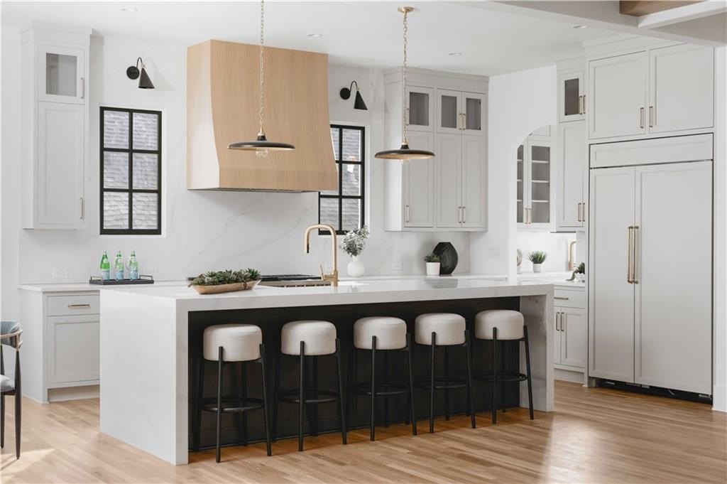 WELCOME HOME! In the heart of Peachtree Heights & around the corner from Duck Pond, this intentionally curated modern cottage demands affection and shines with masterful detail! Boasting 5 spacious bedrooms, 5.5 luxurious baths, a full finished basement, multiple outdoor living spaces, & two car garage...every box is checked & every dream is realized! Enter the foyer with herringbone laid white oak floors & admire the custom built in's framing a formal living room overlooking the front gardens. A central hall opens up into the family room & kitchen where custom cabinets, quartz counters, a waterfall island, Wolf & Subzero Appliance package, & custom fixtures will impress even the most accomplished chef. Don't miss the walk-in pantry & butler's pass through to formal dining room with custom trim and designer lighting package. Upstairs...retreat to the Owner's suite, saturated with natural light, a sitting room & fireplace, vaulted ceilings & lovely views of the rear gardens. Relax in the spa like bath highlighted by the custom freestanding tub, carrerra marble walk in shower, & a one of one walk in dressing room! The terrace level is built for entertaining, including an in-law suite, media room, mudroom, & walk-out to the drive side of the home. No detail has been overlooked in this brilliant home in a MATCHLESS location. So close to EVERYTHING, just a few short blocks to Duck Pond, Bobby Jones Golf Course, Buckhead Village, & the Atlanta Beltline. BRILLIANT!