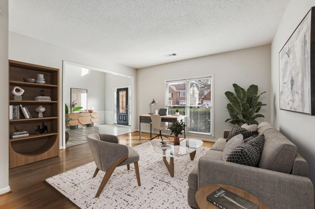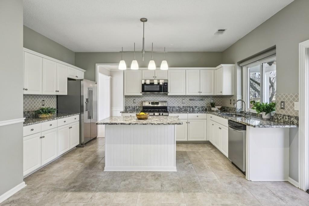 Beautifully Updated Brick Traditional Home in the Heart of Johns Creek, nestled in a Highly Sought-After Community within the Award-Winning Northview High School District and zoned for Wilson Creek Elementary and River Trail Middle School. With No Rental Restrictions, this property offers excellent flexibility and strong appeal in a High-Demand School District, where rental homes are consistently sought after. Ideally located, this home offers easy access to Top-Rated Schools, shopping, dining, parks, and exciting nearby destinations including Cauley Creek Park and the highly anticipated Medley Johns Creek Entertainment District. From the moment you arrive, Manicured Landscaping and classic curb appeal set the tone. Step inside to a Light-Filled Two-Story Foyer that creates an inviting first impression. To the left, a Formal Living Room offers flexible space perfect for a Home Office, Playroom, Study, or additional sitting area. The thoughtfully designed floor plan flows seamlessly into the Formal Dining Room, ideal for hosting gatherings and sharing memorable meals. At the heart of the home, the Two-Story Great Room impresses with soaring ceilings and a Gas Fireplace anchored by a dramatic Floor-to-Ceiling Mantel, creating a warm and welcoming focal point. The Updated Kitchen is both stylish and functional, featuring White Cabinetry, Granite Countertops, a Large Island with Breakfast Bar, Chic Neutral Tile Backsplash, Stainless Steel Appliances, a Pantry, and a sunny Breakfast Nook perfect for casual meals and morning coffee. A Convenient Half Bath is located just off the main hallway. A door from the kitchen opens to a Covered Stone Patio, extending your living space outdoors and making Al Fresco Dining effortless year-round. Upstairs, retreat to the Spacious Primary Suite with Soaring Ceilings and a Spa-Inspired Ensuite Bathroom featuring a Dual Vanity, Soaking Tub, Separate Shower, and a Large Walk-In Closet. Two additional bedrooms share a Full Hall Bathroom with Dual Vanity, ideal for family or guests. The Upper-Level Laundry Room adds everyday convenience. Step outside to a truly Enchanting Backyard Retreat, where a thoughtfully designed Tiered Garden Landscape creates a peaceful, storybook setting. Meandering Stone Pathways lead through lush plantings filled with Blooming Perennials, including Coneflowers, Black-Eyed Susans, Hydrangeas, Hostas, Ferns, and seasonal color that brings the yard to life throughout the year. Mature trees provide shade and privacy, while curated garden beds and charming details create a serene environment perfect for relaxing, birdwatching, or evening strolls. Whether enjoying quiet mornings on the Covered Stone Patio or hosting friends surrounded by vibrant blooms, this garden oasis offers beauty, tranquility, and a rare sense of escape right in your own backyard. Enjoy Resort-Style Community Amenities including a Swimming Pool, Tennis Courts, Clubhouse, Playground, and Lake, all contributing to a vibrant neighborhood lifestyle. Located just minutes from Top-Rated Schools, Shopping, Dining, and Parks, this home offers the perfect blend of timeless design, modern comfort, and an exceptional Johns Creek location all in one of North Fulton's Most Desirable Communities.