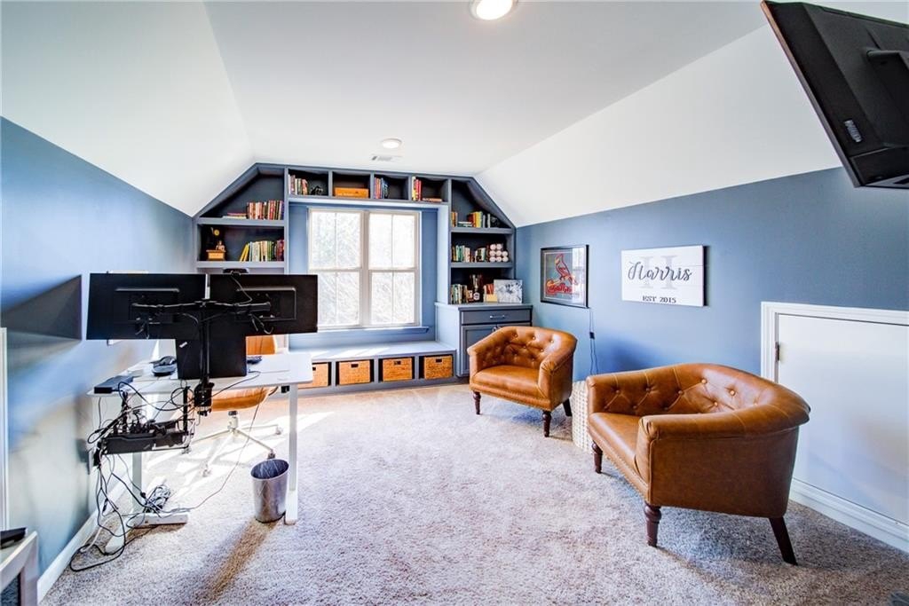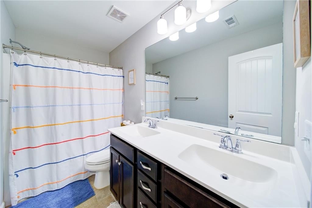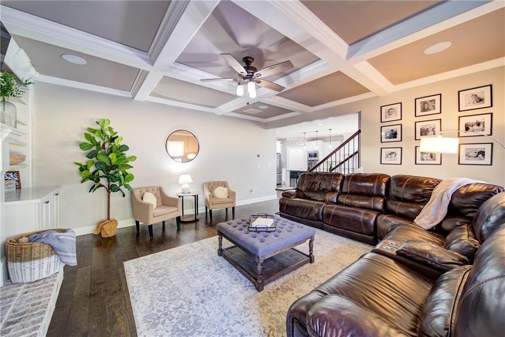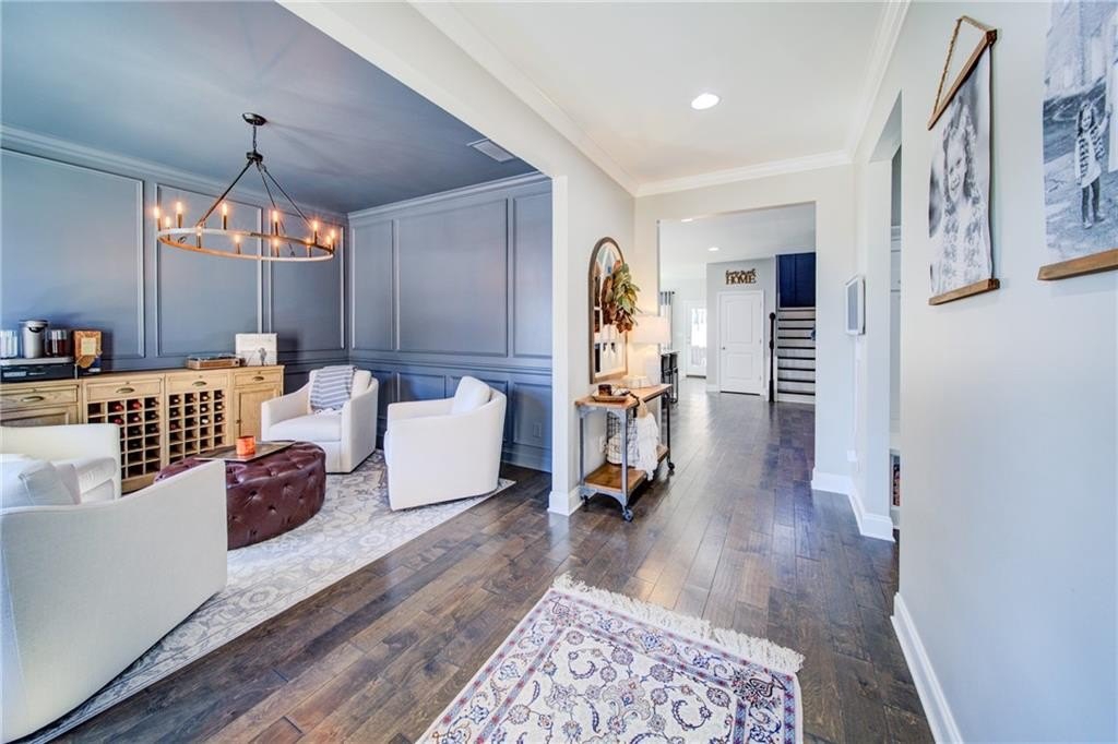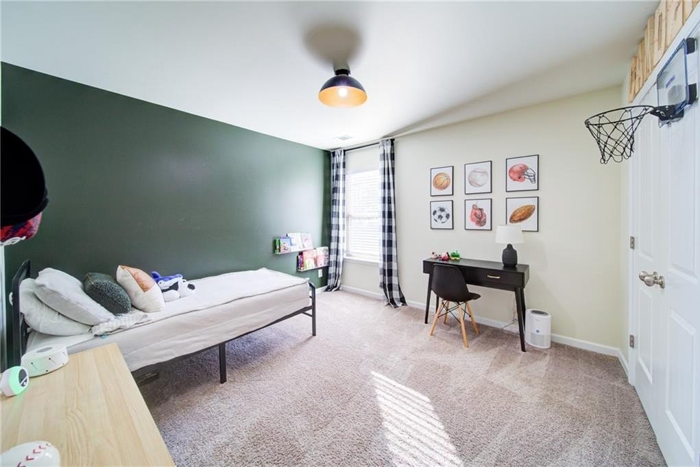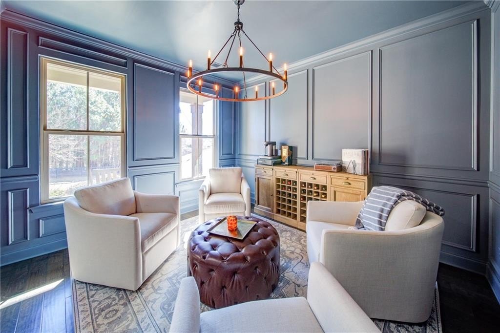 This gorgeous 5-bed, 3-bath traditional home is located in the sought-after Concord Creek community just minutes from shopping, dining, great schools, and Lake Lanier! The residence is a spacious 3,004 sq ft of well-designed living space with a gourmet kitchen featuring ample cabinets, a large island, walk-in pantry, oversized breakfast area, and double ovens - perfect for everyday living and entertaining. Here you can enjoy the family room with a cozy fireplace just off of the kitchen, the carefully designed parlor, and a secondary bedroom with an adjacent bath on the main level. Upstairs, a wide hallway leads to three additional roomy bedrooms and a full bath, plus a spectacular owner's suite with a custom dual walk-in closet, dual vanities, separate tub and shower, and generous storage. The 4th bedroom upstairs has been converted to a home theater in order to create a private, sound-isolated retreat for movies, gaming, and family entertainment without disrupting the main living areas. Additional highlights include a mudroom off the garage, the convenient placement of the laundry room upstairs, engineered hardwood floors, additional detached garage, extended driveway, large backyard space, covered patio, and firepit. The community offers amenities including a pool, sidewalks, and street lights. perfect for families seeking privacy, space, and convenience. The builder thoughtfully pre-plumbed the fourth bedroom (currently used as a theater) to accommodate the future addition of a private bathroom.