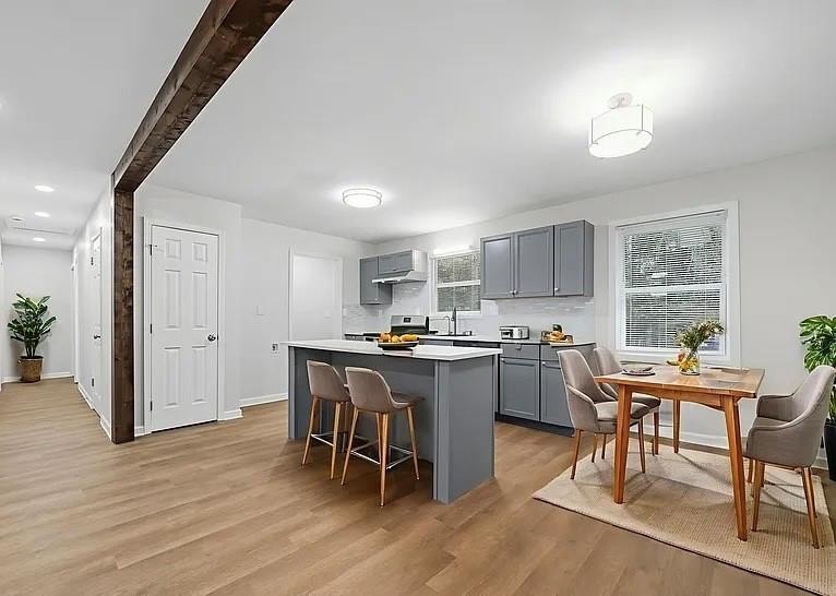 Welcome to this beautifully renovated 3 bedroom, 2 bathroom home offering 1,375 SQFT of modern comfort and functionality! From the moment you arrive, you'll notice the long driveway, large front and back yards, and peaceful setting on a quiet dead end street, perfect for privacy and tranquility. Step inside to an open floor concept filled with natural light, fresh paint inside and out, and new luxury vinyl flooring throughout the main areas complemented by white ceramic tile in the bathrooms. The kitchen is a true showstopper! Fully renovated with a stunning island that can serve as both a dining or bar table, modern backsplash, upgraded sink with multiple functions, built in water filter, and gorgeous cedar posts adding warmth and character as it opens into the living room. Enjoy cozy evenings by the beautiful digital fireplace, surrounded by new modern light fixtures, new windows and doors, and upgraded electric system with a new panel. The bathrooms have been completely updated with elegant ceramic tiled showers, new vanities, countertops, and LED mirrors that add a touch of luxury. The spacious master bedroom features a walk in closet and a magnificent ensuite bathroom with stunning ceramic tile work in the stand up shower. The home also includes a separate laundry room, new A/C system with new air ducts, moisture barrier in the crawl space, and a roof that's only about 5 years old. The septic tank was just pumped a month ago, ensuring peace of mind. Outside, you'll love relaxing on the new front porch or entertaining on the large back deck overlooking a mostly cleared backyard, ideal for gatherings or gardening. Perfectly located near all your favorite restaurants and stores, this home combines modern upgrades, a quiet location, and unbeatable convenience. Don't hesitate to schedule your showing today! This move in ready home has it all!