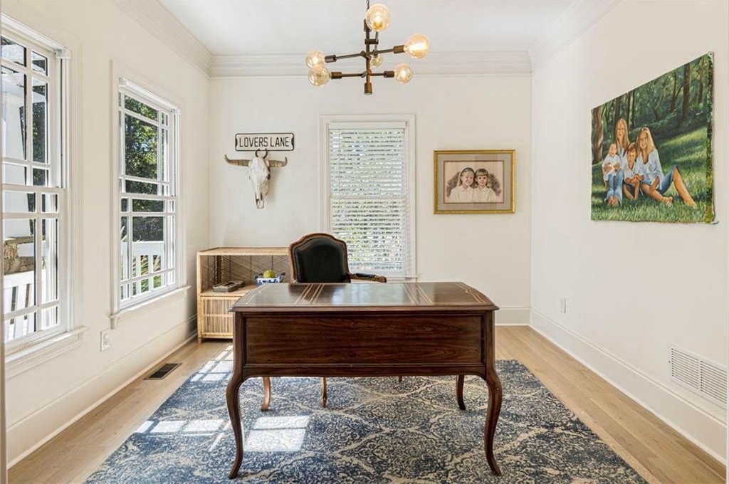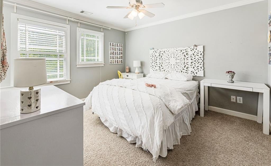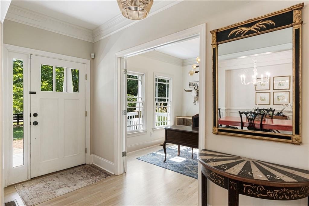 Nestled on a scenic privately gated lot in Alpharetta, this beautifully crafted custom home seamlessly combines timeless architecture with modern convenience. Designed in the classic Craftsman style, it offers an elegant yet relaxed atmosphere, providing both space and privacy. The charming wide front porch greets you, creating a peaceful spot to unwind while admiring the beautifully landscaped front yard. As you enter, the foyer unveils a formal dining room to one side and a dedicated home office on the other. The main level features a bright, open layout with defined living and dining areas, accented by freshly updated hardwood floors, custom trim, and a stone fireplace that anchors the family room. Flanked by built-in bookcases, the fireplace creates a cozy focal point. From the family room, the screened-in porch seamlessly extends your living space outdoors, overlooking a sprawling fenced backyard-perfect for a garden, play area, or simply enjoying the outdoors. The kitchen is designed for style and efficiency, featuring granite countertops, a center island with seating, a high-end Thermador oven, stainless steel appliances, tile backsplash, and abundant cabinetry that provides excellent storage. Its open sightlines in the main living areas make it ideal for everyday living and entertaining. Upstairs, the spacious primary suite serves as a tranquil escape, featuring a large bedroom, two oversized closets, and a luxurious spa-style bathroom with a soaking tub, dual vanities, and a stand-alone tile shower. Just at the top of the stairs, a built-in office nook offers a quiet spot for work or study. Four additional bedrooms are thoughtfully laid out, providing versatility for guests, home offices, or extra living space. The fully finished terrace level adds valuable living space full bathroom, multiple storage closets, and access to the back patio. This flexible area is ideal for a media room, home office, gym, or guest suite. This exceptional property also includes a spacious two-car garage with plenty of vehicle room and additional storage. Located just minutes from Milton's renowned equestrian farms, this home offers convenient access to a vibrant mix of local dining, boutique shopping, and scenic beauty. Here, you'll enjoy the perfect blend of space, comfort, and privacy in one of North Georgia's most sought-after communities.