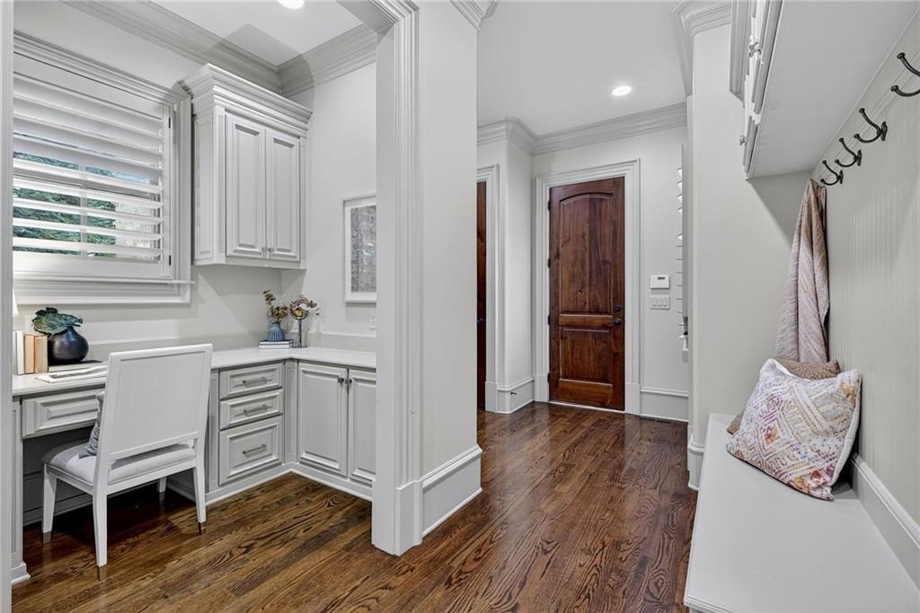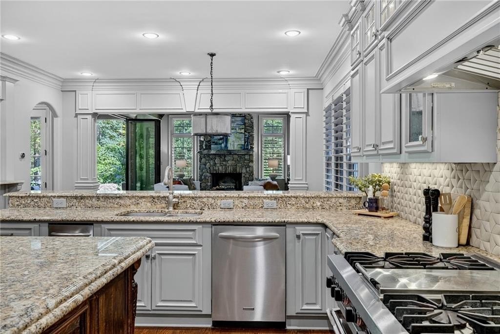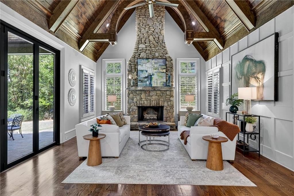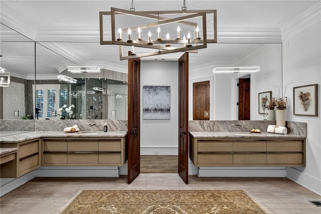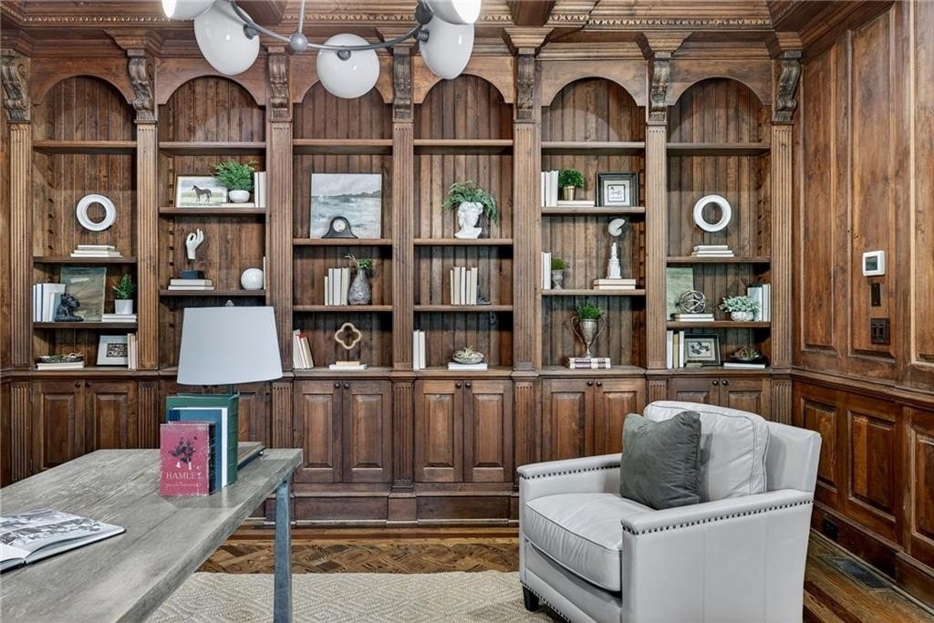 Stunning North Buckhead Residence in The Park at Brookhaven! This exquisite home offers an unmatched blend of elegance, comfort, and convenience, just minutes from the heart of Buckhead. Enjoy proximity to Phipps Plaza, Lenox Mall, Capital City Club, Nancy Creek Park, renowned restaurants, and top medical centers including Emory Saint Joseph and Northside hospitals. Designed with exceptional craftsmanship and attention to detail, this residence features four-sided brick construction and soaring ceilings on all three levels that create a grand and open atmosphere. The main-level primary suite is a private retreat, complete with a renovated spa-like bath and an oversized dressing suite. A two-story foyer opens to a sophisticated wood-paneled office, perfect for work or meetings, and a formal dining room with butler's pantry. The chef's kitchen is a true showpiece, featuring an oversized island with prep sink, Sub-Zero refrigerator, 48" Viking range with six burners and double ovens, and a dedicated bar area with wine cooler, dishwasher, and additional refrigerator. The kitchen flows seamlessly into a dramatic morning room with vaulted beamed ceiling and stone fireplace. Accordion/bi-fold doors open to a covered porch with fireplace, automatic screen, and slate flooring, ideal for year-round entertaining overlooking the private backyard. Additional highlights on the main level include a mudroom, pocket office, laundry room, and two half baths. The upper level offers spacious en-suite bedrooms, a secondary dressing suite, an additional laundry room, and an expansive Au Pair Suite providing privacy and comfort. The terrace level is designed for entertaining with a custom bar, wine wall with cabinetry and shelving, and additional unfinished space for future build-out or storage. With four fireplaces, two laundry rooms, extensive storage, and refined finishes throughout, this home offers the perfect balance of luxury and livability in one of Buckhead's most desirable neighborhoods.