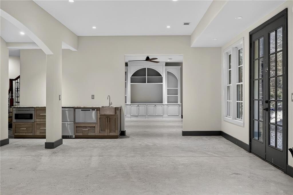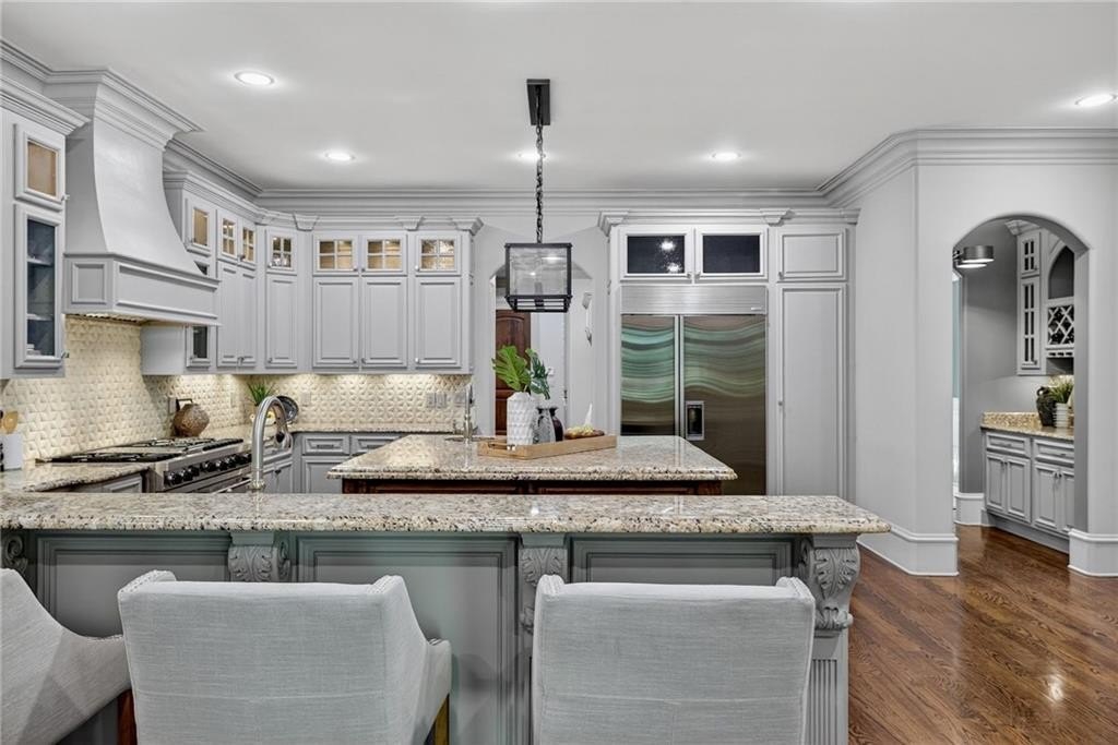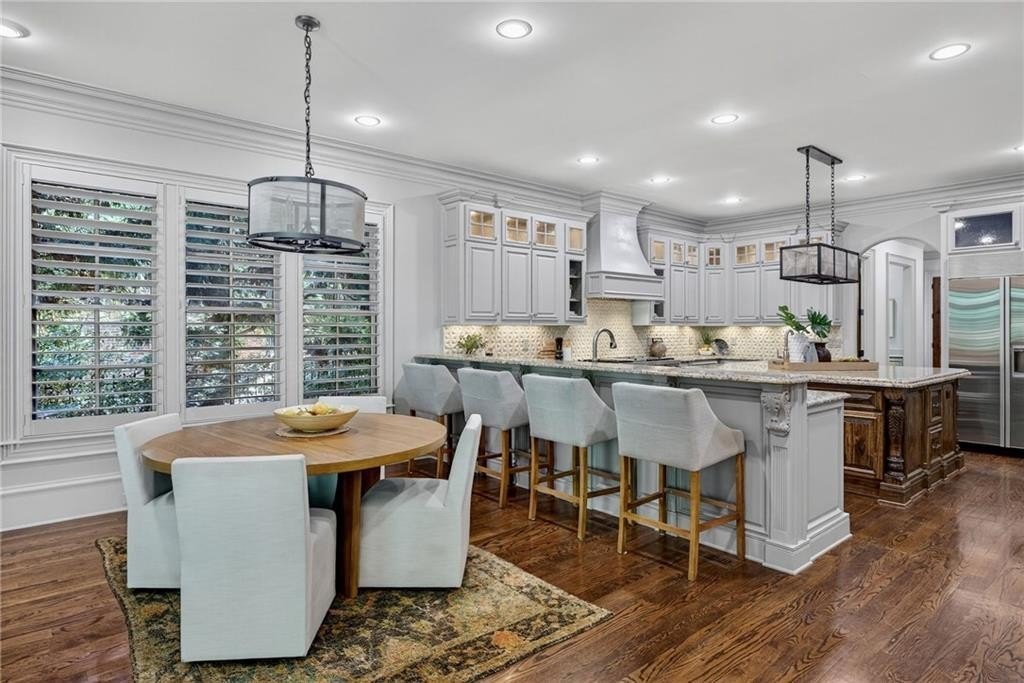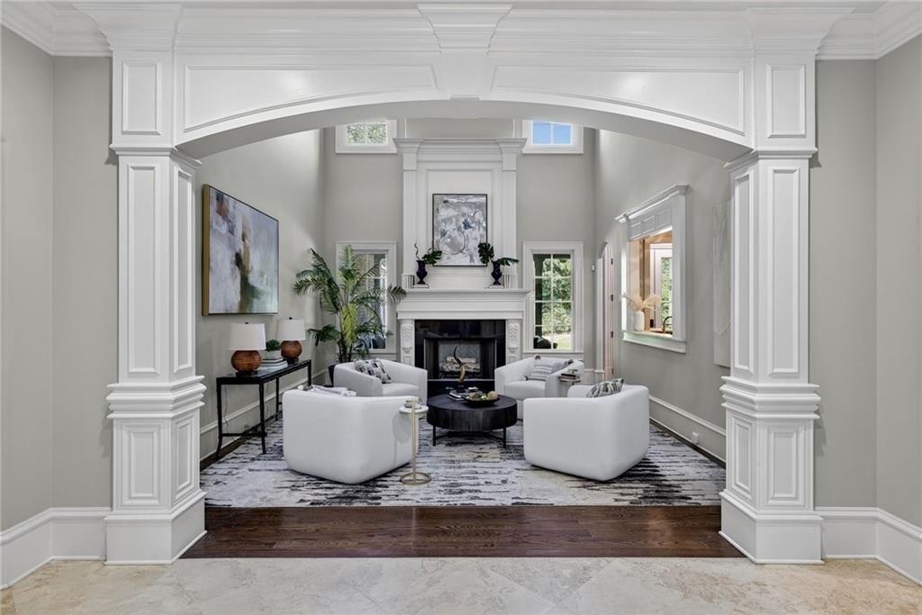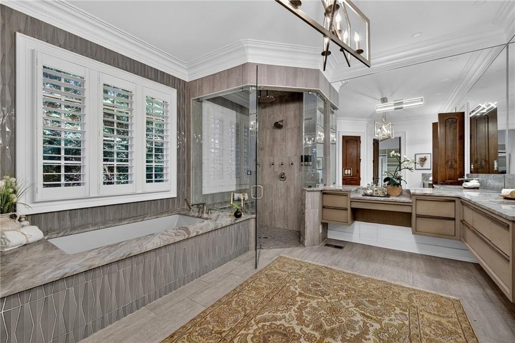 Stunning North Buckhead Residence in The Park at Brookhaven! This exquisite home offers an unmatched blend of elegance, comfort, and convenience, just minutes from the heart of Buckhead. Enjoy proximity to Phipps Plaza, Lenox Mall, Capital City Club, Nancy Creek Park, renowned restaurants, and top medical centers including Emory Saint Joseph and Northside hospitals. Designed with exceptional craftsmanship and attention to detail, this residence features four-sided brick construction and soaring ceilings on all three levels that create a grand and open atmosphere. The main-level primary suite is a private retreat, complete with a renovated spa-like bath and an oversized dressing suite. A two-story foyer opens to a sophisticated wood-paneled office, perfect for work or meetings, and a formal dining room with butler's pantry. The chef's kitchen is a true showpiece, featuring an oversized island with prep sink, Sub-Zero refrigerator, 48" Viking range with six burners and double ovens, and a dedicated bar area with wine cooler, dishwasher, and additional refrigerator. The kitchen flows seamlessly into a dramatic morning room with vaulted beamed ceiling and stone fireplace. Accordion/bi-fold doors open to a covered porch with fireplace, automatic screen, and slate flooring, ideal for year-round entertaining overlooking the private backyard. Additional highlights on the main level include a mudroom, pocket office, laundry room, and two half baths. The upper level offers spacious en-suite bedrooms, a secondary dressing suite, an additional laundry room, and an expansive Au Pair Suite providing privacy and comfort. The terrace level is designed for entertaining with a custom bar, wine wall with cabinetry and shelving, and additional unfinished space for future build-out or storage. With four fireplaces, two laundry rooms, extensive storage, and refined finishes throughout, this home offers the perfect balance of luxury and livability in one of Buckhead's most desirable neighborhoods.