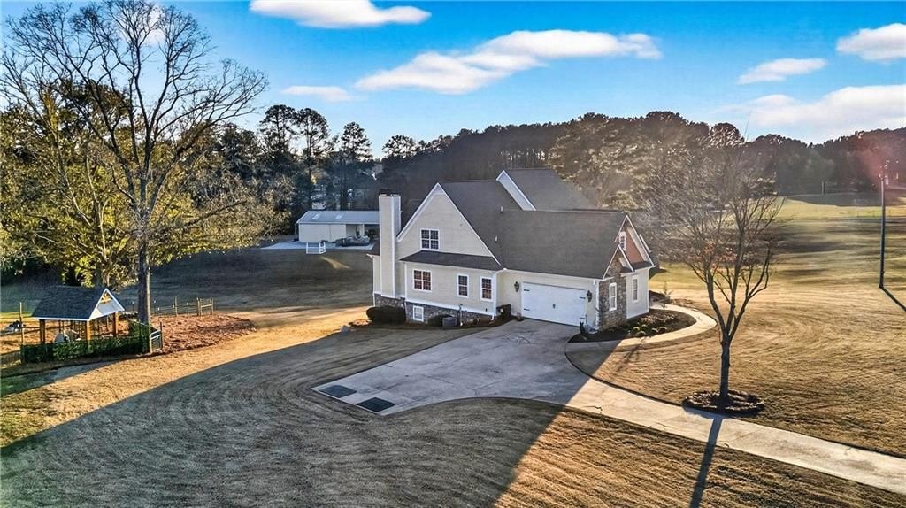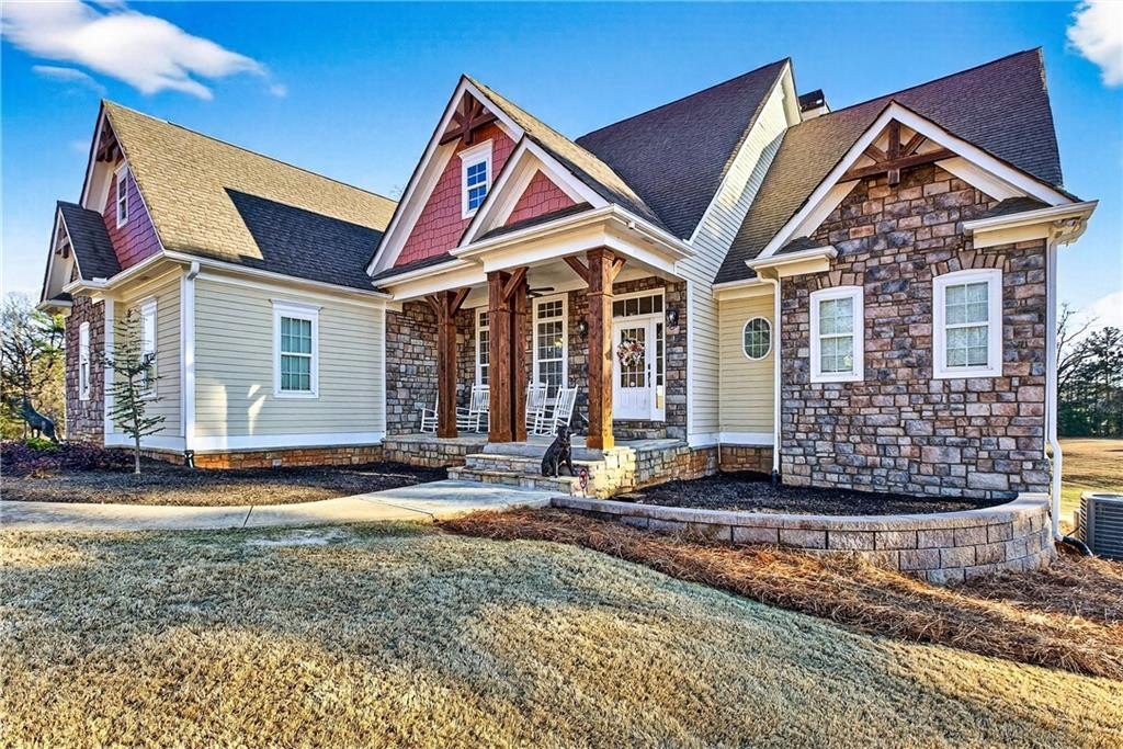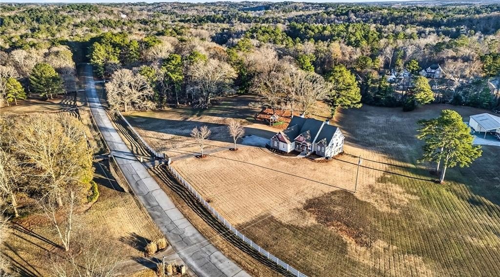 Set behind a private, double-gated entrance on 6.6 fully fenced acres with 800 feet of road frontage, this refined estate offers exceptional privacy, security, and thoughtful design throughout. The home features 4 bedrooms and 3.5 baths, with custom ceilings, upgraded trim, transom and oversized windows, and 9-foot ceilings on both the main level and basement, creating a light-filled, elevated living experience. The chef's kitchen is beautifully appointed with commercial-grade appliances, quartz countertops, and a built-in refrigerator, flowing seamlessly into inviting living spaces highlighted by two fireplaces, including a cast-iron fireplace with blower in the keeping room and an oversized fireplace in the family room. An upstairs theater room with mini-fridge and microwave and a partially finished basement provide flexible spaces for entertaining or relaxation. Recent upgrades include new double-pane windows (2024), mirror-tinted rear windows (2025), enhanced insulation between HVAC zones, smart keypad entry, camera and security systems, and newly replaced full farm fencing. Outdoors, the property continues to impress with a 40x60 accessory building, freshly poured gravel access, gazebo with water and power, irrigation system, solar-lit fencing, and an owned 1,000-gallon underground propane tank. Furniture negotiable. A rare offering combining elegance, acreage, and exceptional versatility-just minutes from major routes for easy access to Atlanta.