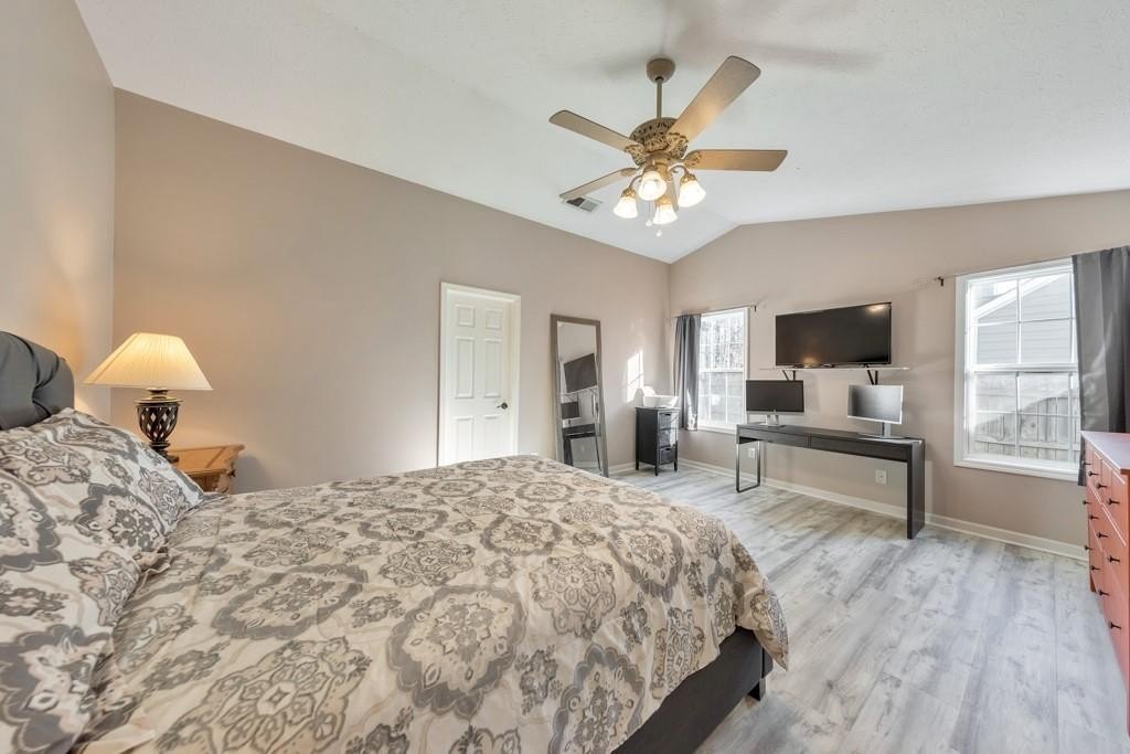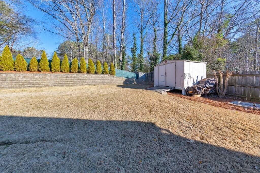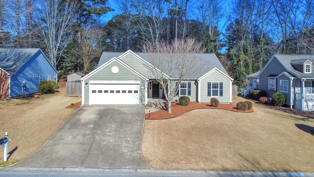 Pack your bags because this is the one! This stunning 3 bed / 2 bath ranch is nestled in the sought-after Marleigh Farm community. The interior has been freshly painted throughout including ceilings and walls, with newer exterior paint as well. An inviting foyer and beautiful bamboo hardwood flooring lead into the living room, which features an upgraded fireplace with gas logs that can be converted to wood burning if desired. The elegant kitchen offers white cabinetry, new granite countertops, a new sink and faucet, updated lighting and hardware, and over-cabinet lighting. The laundry room is conveniently located off the kitchen and includes the washer and dryer. A formal dining room provides the perfect space for hosting guests. The primary suite boasts vaulted ceilings and LVP flooring, along with a spa-like bathroom offering a frameless shower, soaking tub, granite double vanity, and walk-in closet. Two secondary bedrooms, one carpeted and one with LVP flooring, share a refreshed hall bath featuring new flooring, paint, toilet, and lighting. The garage features a newer door and opener installed in 2021 with WiFi connectivity, built-in shelving, and attic storage. Three year old Trane HVAC system (3-ton, 14 SEER) with added returns and vents installed in 2019 along with a 2009 architectural roof with 25-year shingles for peace of mind. Outdoor highlights include an extended patio with gazebo, fenced and level private yard, tool shed, and 220V wiring for a future spa. Conveniently located near Cobb Parkway, downtown Kennesaw, KSU, and Barrett Parkway.