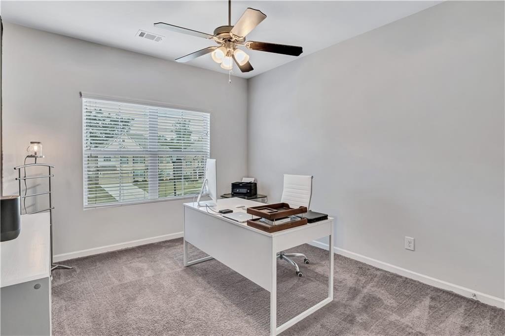 Stylish, Spacious, and Move-In Ready in Fairburn. Step into elevated style in this beautifully designed two-story home, where abundant natural light and an open-concept layout create an inviting, modern atmosphere. The dramatic catwalk overlooks a chic family room with a cozy fireplace, flowing seamlessly into a designer kitchen featuring stone countertops, a stunning tile backsplash, and a central island perfect for gathering. A butler's bar adds flair and function, connecting the kitchen to an elegant formal dining room. Upstairs, three generous bedrooms offer flexibility for families or guests. The luxurious primary suite is a true retreat, complete with double vanities, a soaking tub, and a walk-in shower. Step outside to enjoy a charming front yard, a fully fenced backyard, and a screened-in patio-ideal for relaxing, entertaining, or enjoying Georgia evenings bug-free. Stylish, spacious, and thoughtfully designed-this Fairburn gem is ready to welcome you home. Schedule your tour today!