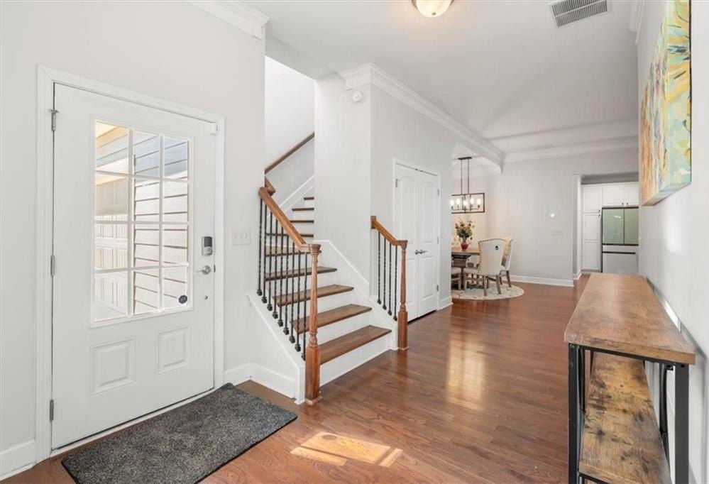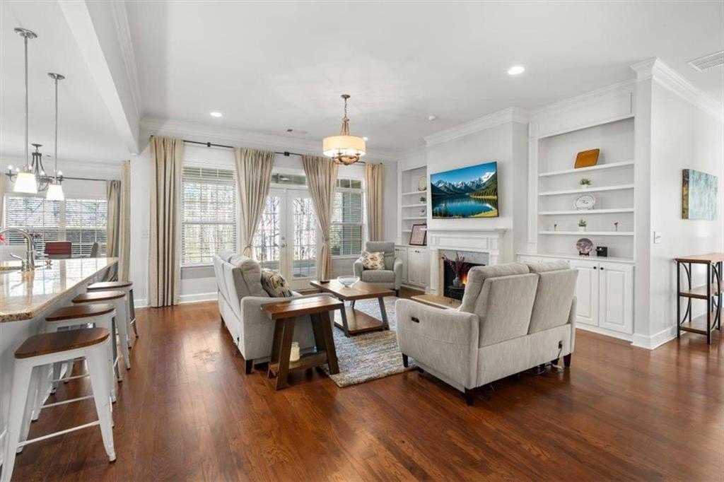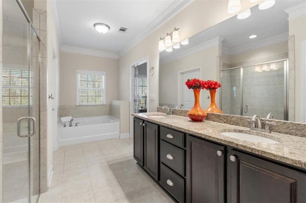 Welcome Home to 2280 Grove Valley Way in Grove Park! - where comfort, convenience, and low-maintenance living come together in this beautifully landscaped Active Adult 55+ community just minutes from Marietta Square. This is the Magnolia floor plan, the largest and most sought-after floor plan in the community. Enjoy one level living plus a large 2nd-floor 4th Bedroom or bonus space! Step inside to Beautiful hardwood floors that are further complimented by tall ceilings, oversized windows, crown molding, and natural light throughout. The warmth of the gas log fireplace in the expansive great room creates an inviting ambiance, accented by built-in shelves perfect for showcasing treasured books and keepsakes while tall glass double doors lead out to an expansive covered patio that overlooks the backyard and private woods! The large Chef's kitchen is fully equipped with white cabinets, tons of prep space, a newer Samsung Bespoke Appliance package, an oversized island w/ ample seating, granite countertops, generous counter space, a huge walk-in pantry, and modern finishes-perfect for cooking, hosting, or casual meals at home. The spacious main level primary suite features a tray ceiling, large walk-in closet, and spa-like ensuite complete with double vanities, a soaking tub, and separate oversized tiled shower. The second bedroom and full bathroom provide comfort and privacy for guests. Adjacent is a flexible room with glass double doors, ideal for a home office, gym, or third guest room. Upstairs, you'll find an expansive flex space with an additional full bathroom that is perfect for a media room, craft area, or guest retreat. Additional highlights include a large laundry room, two expansive storage rooms, and a two-car garag e. Appreciate a simplified lifestyle as all exterior building/roof maintenance and yard maintenance are included in the monthly HOA dues PLUS water, trash, sewer allowing you more time to enjoy what matters most! Grove Park features gated access and a beautiful Clubhouse with catering kitchen, gym, and library; a swimming pool; a dog park; a community lake; a composting area; and walking paths throughout the community. Conveniently located near shopping, dining, parks, Marietta Square, the Avenue at West Cobb, Silver Comet Trail, Kennesaw Mountain, the Battery and Truist Park (home of the Atlanta Braves), this home offers quick access to everything Marietta and the greater metro area have to offer while delivering comfort, functionality, and simplified living! ***Owner is Licensed Realtor in the state of Georgia***