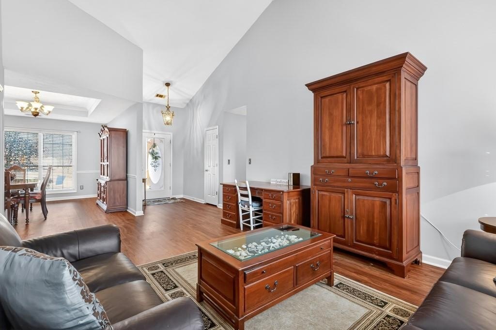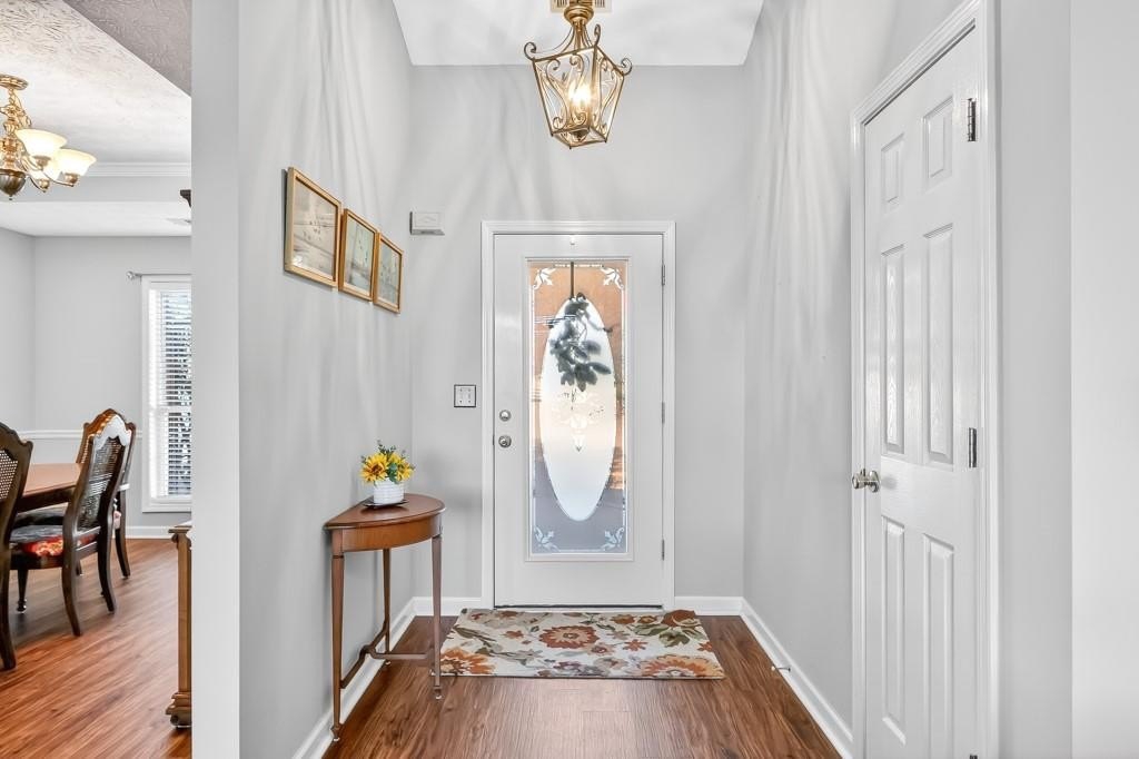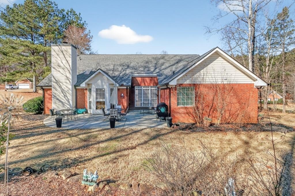 Beautiful Brick Ranch on Incredible, Private Lot! Upon entering, you'll discover an impeccably maintained home with soaring ceilings, new flooring and lots of natural light. Elegant dining room and inviting family room lead to bright and cheerful kitchen with large counter bar, stainless appliances, charming breakfast room with bay window, and cozy fireside keeping room. Owner's suite offers double trey ceiling, dual vanities, soaking tub, entrance to patio, and walk-in closet with built-ins. Oversized patio overlooks the expansive backyard with manicured lawn, mature hardwoods and firepit- a truly private sanctuary with plenty of space to entertain, explore, or enjoy morning birdwatching or a beautiful sunset. New roof and gutters, plus fridge, washer and dryer included in purchase! Situated in the cul-de-sac of a quaint neighborhood with well-maintained homes and no HOA. Convenient location, close to charming downtown Flowery Branch, Lake Lanier, shopping, dining, parks and I-985! Start the new year off right and make this move-in-ready gem yours!