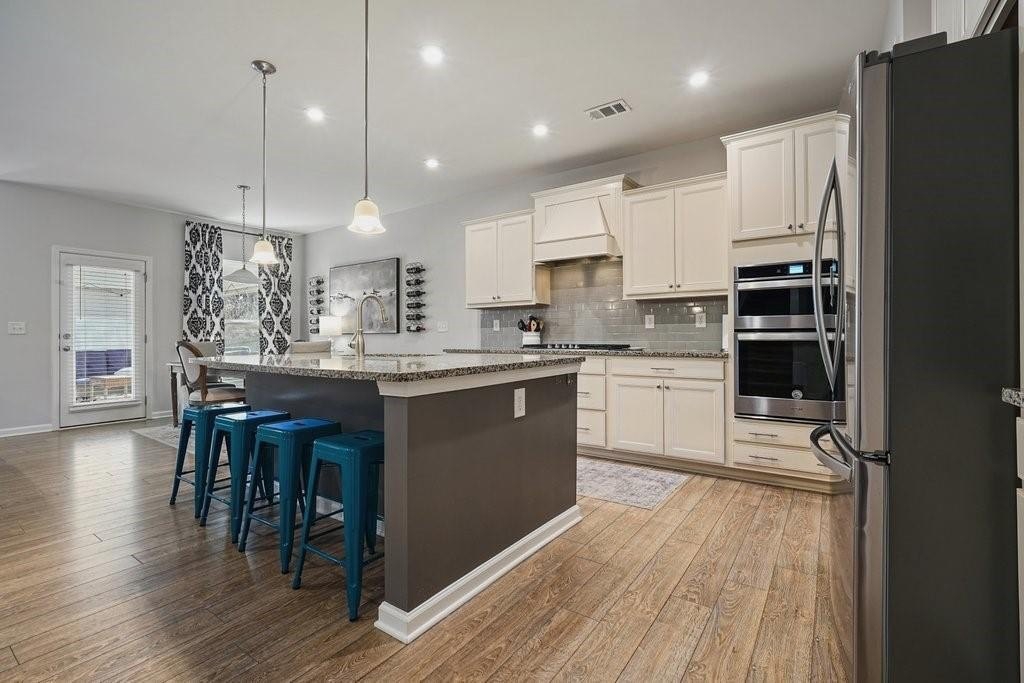 Welcome to this stunning 5 bedroom - 4 bath home in the heart of the Hickory Flat area of Sequoyah HS District. Featuring a main-level bedroom and full bath, plus a spacious upstairs loft area perfect for work or play. Freshly painted inside and out, this lovingly maintained home offers both comfort and flexibility for large households, guests, or multigenerational living. The open-concept main living area keeps everyone connected, making it ideal for entertaining and everyday living. Buyers will love the functionality of the mudroom/dropzone and workspace right off the garage. Step outside to enjoy the beautiful covered patio added by the seller, which extends your living space and creates the perfect spot for outdoor dining or relaxing evenings. Upstairs, the spacious primary suite offers a private retreat, along with three additional bedrooms and a generous loft. This versatile space can easily serve as a home office, playroom, fitness area, or additional family room. Conveniently located within walking distance to Sequoyah High School and just minutes from restaurants, shopping, and the library, this home offers an unbeatable combination of location, space, and charm. Truly move-in ready and a perfect 10-don't miss it!