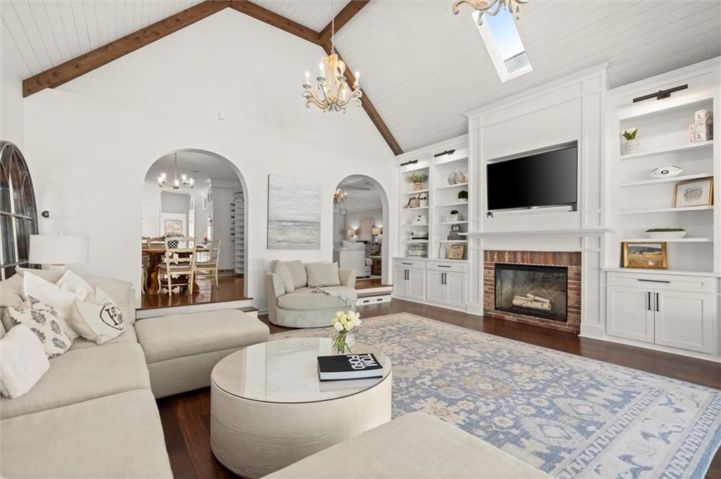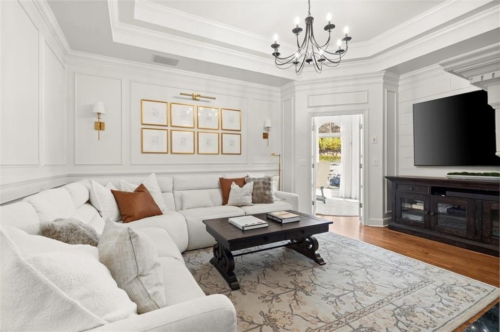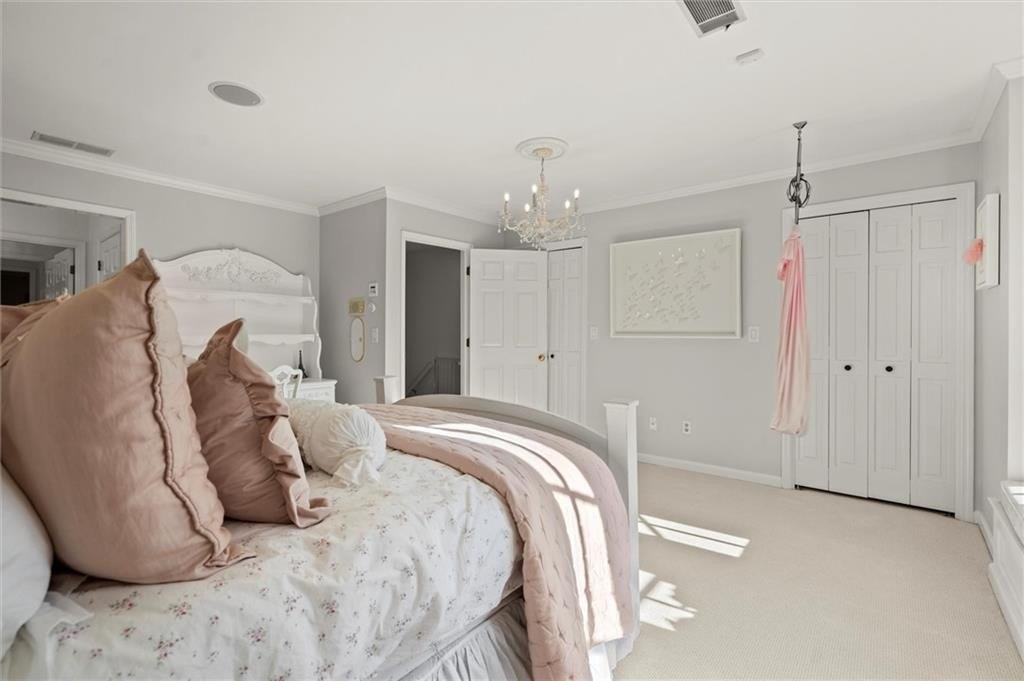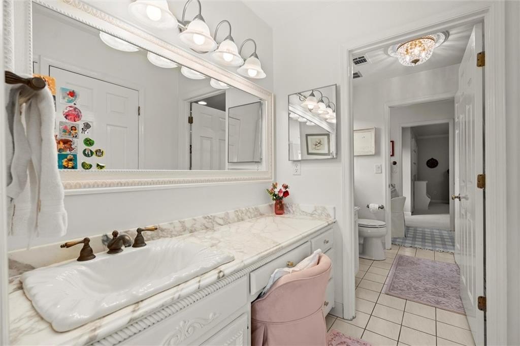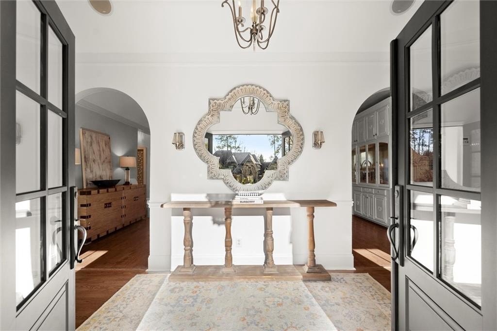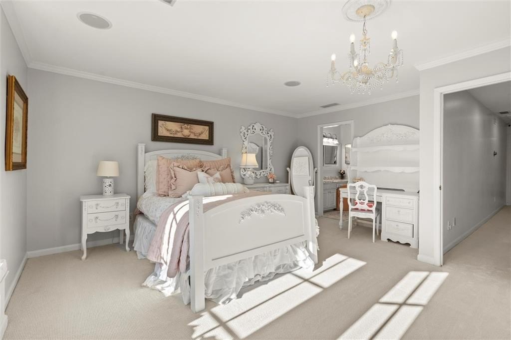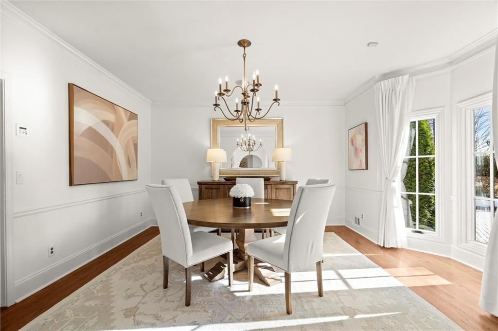 Tucked away on a quiet cul-de-sac in the prestigious Atlanta Country Club community and located within Cobb County's top-rated school district, this custom-designed, all-brick residence (stucco on top) is a true entertainer's retreat. Thoughtfully positioned on a beautifully landscaped half-acre+ flat lot, the home offers exceptional privacy, generous separation from neighboring properties, and a rare sense of both exclusivity and community. The resort-style backyard renovation is nothing short of spectacular. Designed for year-round enjoyment, it features a walkout level saltwater, heated pool and spa with WiFi-controlled, multicolored lighting and flagstone decking, a private putting green, an expansive outdoor kitchen and grilling area, and plenty of flat, grassy space-all fully fenced and surrounded by lush landscaping for total seclusion. Whole-home audio with four independent outdoor zones completes this exceptional outdoor living experience. A circular paver driveway and ample parking provide ease for everyday living and effortless entertaining. Inside, the home showcases solid construction and timeless design, lovingly maintained by the current owner, who grew up in the residence. The floor plan seamlessly blends formal and casual spaces, ideal for both intimate gatherings and larger celebrations. A gracious foyer opens to expansive main living and dining areas adorned with hardwood floors and abundant natural light, creating a warm yet refined atmosphere. The kitchen is both functional and elegant, featuring white cabinetry, a large center island, Thermador double ovens, and a Viking gas cooktop, perfect for cooking and hosting simultaneously. The kitchen flows into a light-filled sunroom with built-in bookshelves and striking steel doors, overlooking the tranquil backyard oasis and pool. The main-level primary wing is a private sanctuary. Along the way, you'll pass a spacious walk-in laundry room. The primary suite offers stunning pool views, a separate private movie room with a double-sided fireplace, and an adjoining circular office with beautiful pitched ceiling-both overlooking the putting green and amazing backyard. The spa-like primary bath includes a corner jetted tub, separate shower, double vanities, two walk-in closets, and a dedicated shoe closet. Also on the main level is a well-appointed private guest suite with a walk-in shower, ideal for visitors. Upstairs, brand-new carpeting leads to two spacious bedrooms connected by a Jack-and-Jill bath. The terrace level expands the living space further with a gym, theater area, playroom, an additional bedroom and full bath, plus abundant unfinished storage. Notable upgrades include a whole-home PowerShare backup generator, Tesla electric car charger, new windows, fresh paint, new carpet. Atlanta Country Club is one of the area's premier private golf clubs, yet notably has no homeowners association and no mandatory club membership. Residents enjoy proximity to The Avenue East Cobb, shopping and dining, Cochran Shoals Riverwalk, Truist Park and The Battery, with quick access to I-75 and GA-400 for convenient travel to Buckhead and beyond. Enjoy a country club lifestyle-or simply the exceptional convenience of this sought-after East Cobb community-with access to top-rated public schools (Sope Creek, Dickerson, and Walton), premier entertainment, outdoor recreation, healthcare, and low Cobb County property taxes.