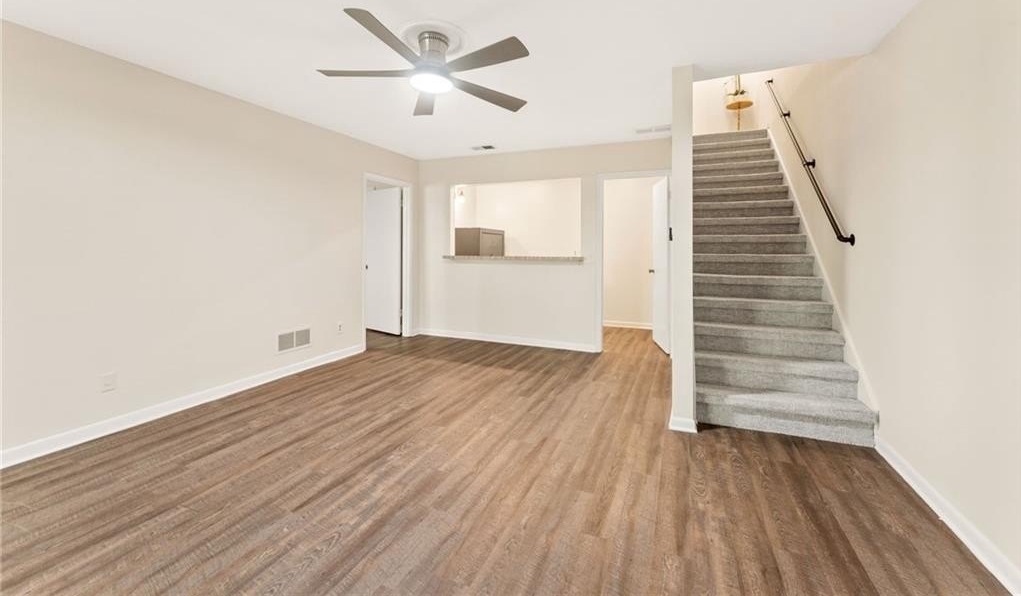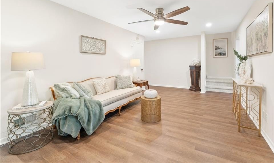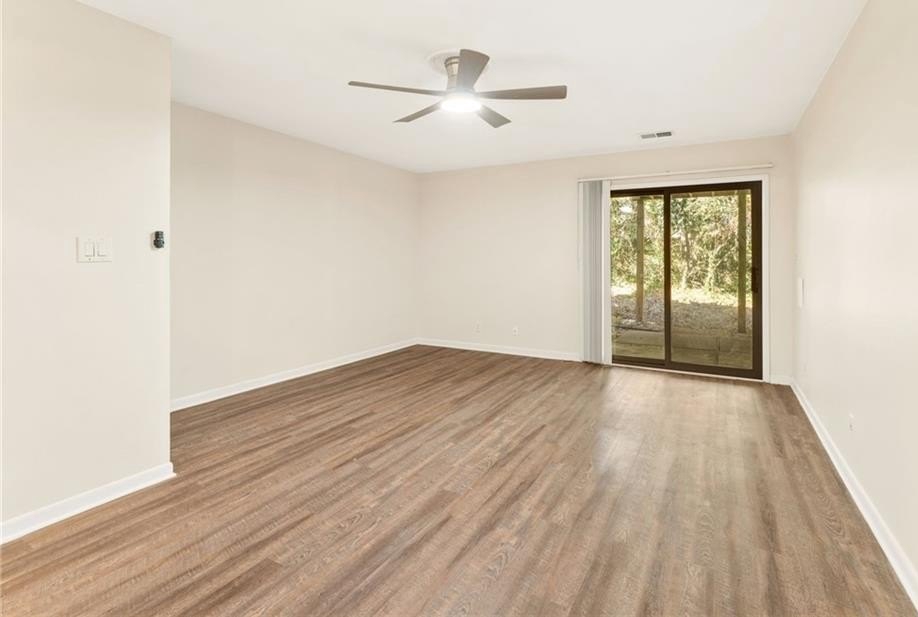 Welcome to Lakeview at Dunwoody Springs, an exceptional community gracefully tucked away just off Peachtree Dunwoody Road. This fully renovated, move-in-ready 4-bedroom, 3.5-bath condominium offers the perfect blend of modern comfort and timeless charm. Step inside to discover a thoughtfully redesigned home featuring a brand-new kitchen, a luxurious primary bath, updated lighting throughout, freshly scraped ceilings, and a newly built deck. Every detail has been carefully curated to create a bright, inviting atmosphere ready for you to make your own. Conveniently located near Cox Media, world-class shopping, top-rated schools, and renowned hospitals, this home offers both tranquility and accessibility. If you've been searching for a peaceful, walkable neighborhood with amenities like a community pool and tennis courts, your search ends here. As you enter, you're greeted by new luxury vinyl plank flooring throughout the main level, complemented by fresh paint and modern finishes. The fully renovated kitchen showcases crisp white cabinetry, striking granite countertops, stainless steel appliances, and recessed lighting, all framing a large window overlooking the wooded backyard. The adjoining dining area opens to a spacious wooden deck, perfect for relaxing after a long day or entertaining guests. The living room centers around a charming stone fireplace, flanked by custom built-in bookshelves, creating a warm and inviting space. Upstairs, the primary suite impresses with its generous size and split barn-door entry to a stunning en-suite bathroom-complete with porcelain flooring, white cabinetry topped with marble counters, and barn-style glass shower doors. Two additional bedrooms and a fully renovated hall bath with white cabinetry and quartzite countertops complete the upper level. A conveniently located laundry closet adds to the home's thoughtful layout. The lower level offers even more versatility with new fans, recessed lighting, and scraped ceilings, along with an additional bedroom, walk-in closet, and full bath-ideal for a guest suite, home gym, playroom, or private retreat. Lakeview at Dunwoody Springs offers a serene, community-focused lifestyle surrounded by nature, yet remains just minutes from the vibrant heart of Atlanta. Experience the perfect balance of peaceful living and urban convenience-your new home awaits.