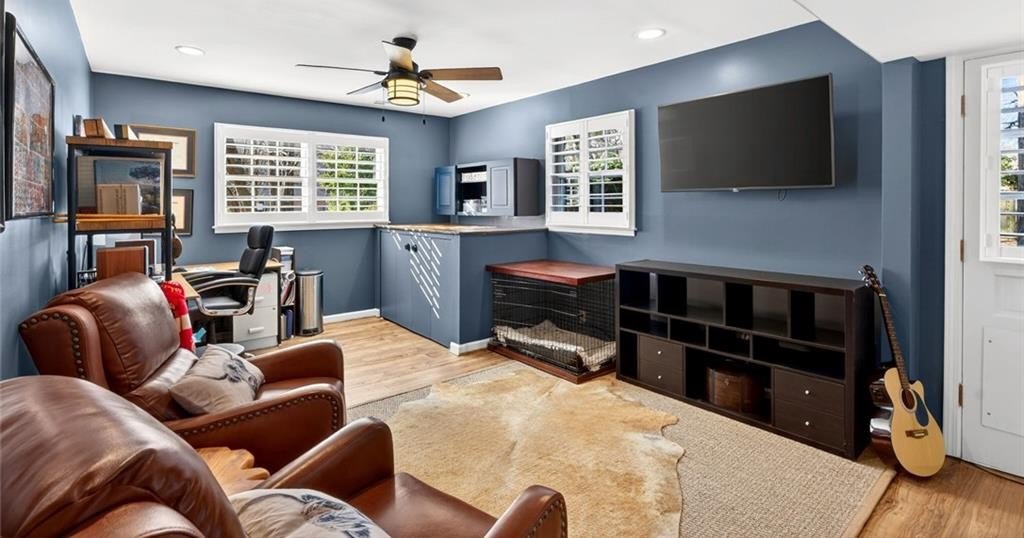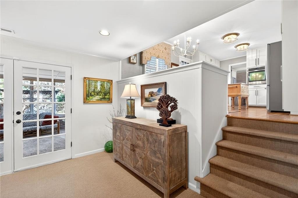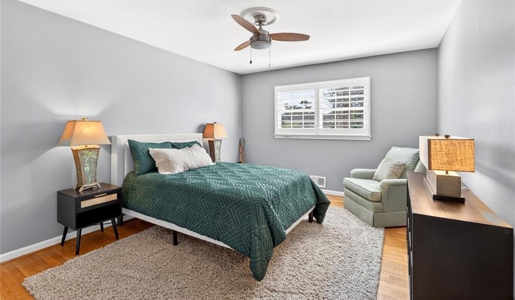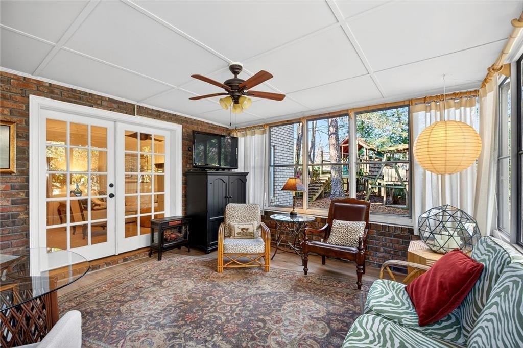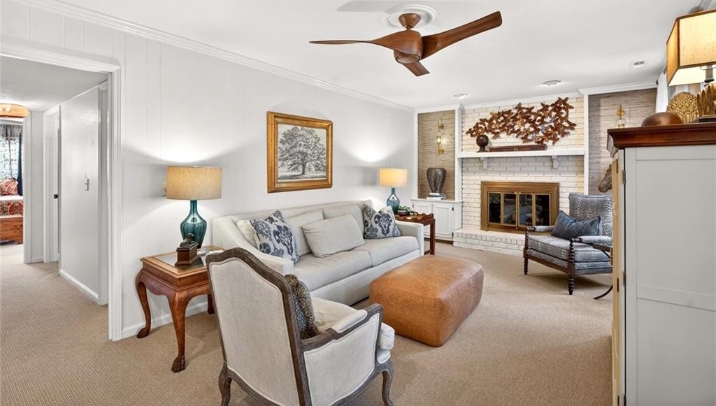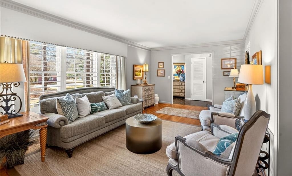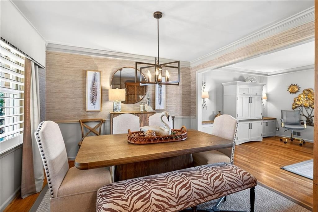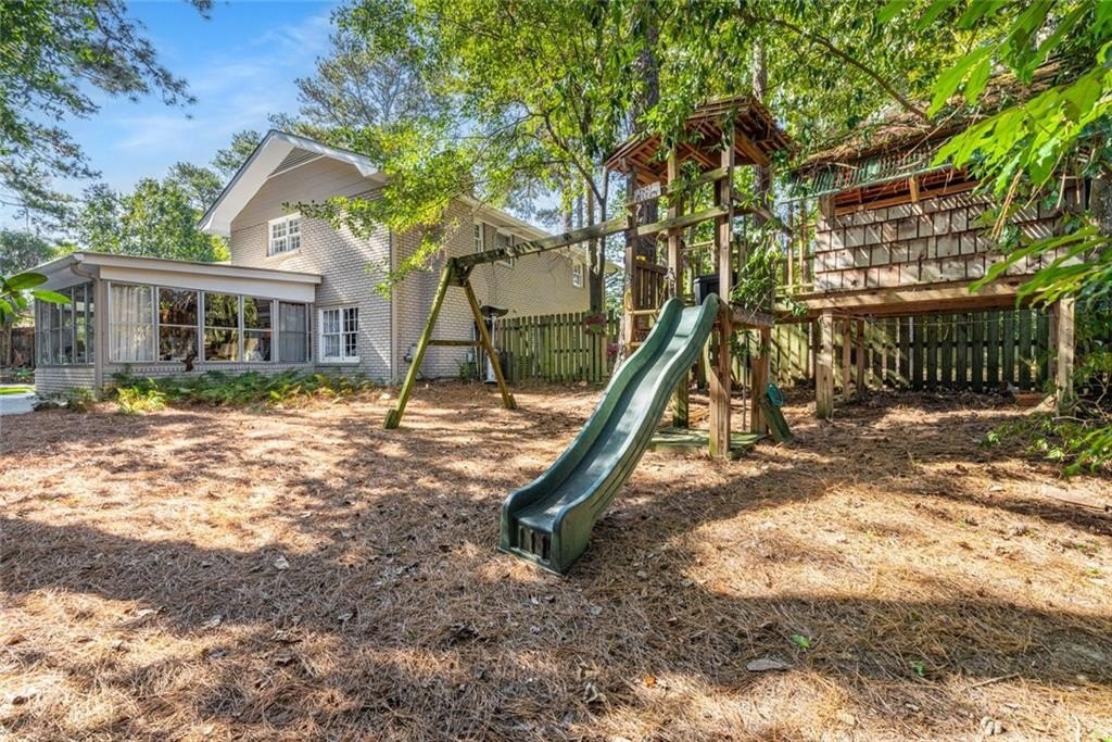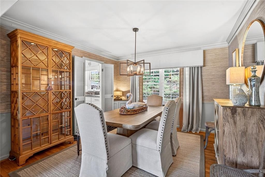 Welcome to this beautifully maintained Dunwoody residence offering timeless charm, comfort, and exceptional space. Upon entering, you're greeted by a bright and inviting living room showcasing detailed crown molding and original hardwood floors that radiate warmth and character. Just off the main living area and kitchen, the formal dining room is ideal for hosting holiday gatherings, dinner parties, and special occasions. The kitchen is both functional and elegant with marble countertops, beautiful cabinetry, a classic backsplash, a built-in pantry with pull out drawers and a bright eat-in dining area. On the lower level, the family room offers a cozy yet open gathering space, featuring a gas fireplace that creates an inviting atmosphere which is perfect for everyday living and entertaining alike. Enjoy year-round natural light in the sunroom, perfect for morning coffee while overlooking the beautifully landscaped backyard. The spacious primary suite offers a true retreat with walk-in closets and a well-appointed layout. With 5 bedrooms and 3 bathrooms, the home provides flexibility for a variety of needs, including a fifth bedroom that can easily serve as a guest bedroom, playroom, home office, or bonus space. Plantation shutters throughout provide both style and privacy while enhancing the home's classic appeal. Thoughtfully updated, the home features newly renovated bathrooms throughout, blending modern finishes with classic character. Outside, a dedicated outdoor living space creates the perfect setting for relaxing, entertaining, and enjoying the peaceful surroundings.
