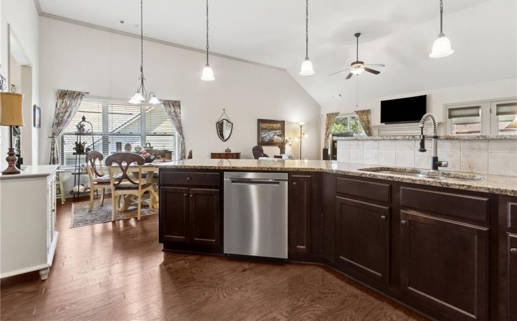 Discover this beautifully maintained home in a well-established neighborhood just steps from downtown Dawsonville. Designed with comfort and style in mind, the home features an inviting open floor plan and high ceilings that create a bright, airy feel throughout the main living spaces. Enjoy hardwood floors and a spacious kitchen equipped with granite countertops and a gas stove, perfect for cooking and entertaining. The seamless flow between the kitchen, dining, and living areas makes this home ideal for gatherings of any size. Situated on a huge premium corner lot, the property offers exceptional outdoor space, added privacy, and excellent curb appeal. With its prime location, desirable layout, and quality finishes, this home offers the perfect blend of comfort and convenience in the heart of Dawsonville.