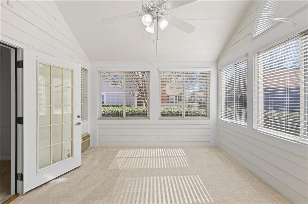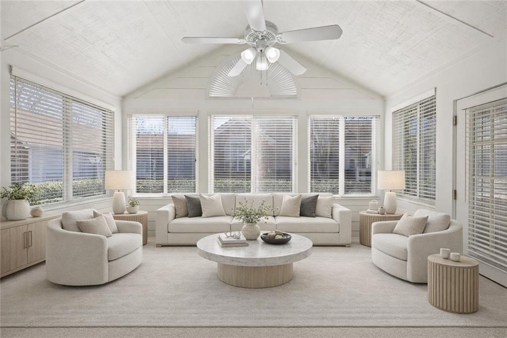 Sophistication Meets Serenity - and Effortless Living Step into this one level garden home that immediately feels different - where natural light pours in, spaces unfold with ease, and every detail has been thoughtfully curated to balance beauty with function. Completely move-in ready, this beautifully refreshed single-level condo offers an elevated lifestyle without compromise. Whether it's reading, crafting or enjoying your coffee, tea, this bright beautiful sunroom is yours to use year round. From the moment you enter, fresh interior paint, new carpet and updated lighting create a bright, welcoming ambiance. The open layout flows seamlessly, blending timeless architectural elements with modern updates for a refined yet highly livable aesthetic. Soaring ceilings and generous windows enhance the airy feel, while clean lines and carefully chosen finishes add warmth and modern updates. At the heart of the home, the kitchen serves as both centerpiece and gathering place. Designed for everyday living and effortless entertaining, it features granite countertops, and stainless steel appliances - all thoughtfully positioned to connect seamlessly with the adjacent dining and living spaces. Whether hosting friends or enjoying a quiet evening in, the main living areas invite connection and comfort. The primary suite offers a true sanctuary - peaceful, and private indulgence. Large bedroom with vaulted ceiling, bathroom with double sinks and walk in shower. Two additional private bedrooms for family, guests and more with a full bath. Life here extends well beyond your front door. The vibrant community is known for its scenic beauty and active lifestyle, featuring a picturesque lake, two tranquil ponds, a swimming pool, and a clubhouse. Even better, the HOA covers exterior maintenance and grounds care, offering a true lock-and-leave experience that allows you to focus on what matters most. Conveniently located just minutes from Kennesaw State University, along with excellent shopping and dining, this home delivers comfort, community, and convenience in one exceptional offering. This is more than a residence - it's a lifestyle. A place where everyday living feels elevated, and serenity greets you in all the right ways.