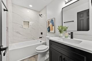 Sleek. Bold. Unapologetic. Tucked into a quiet cul-de-sac, this striking black-on-black home makes a lasting first impression, highlighted by a bold red front door that welcomes you in with warmth and character. Homes with this modern presence are rare and always in demand. Located in a quiet, well-established neighborhood, you'll enjoy a peaceful setting with a nearby neighborhood lake perfect for walks, fresh air, or simply unwinding. While it feels tucked away, you're still conveniently close to shopping, dining, and the places you visit every day. Inside, natural light and clean, modern finishes create a space that feels fresh and inviting. With 6 bedrooms, 2.5 bathrooms, and a basement, there's flexibility for comfortable living, guests, work-from-home space, or investment potential, plus plenty of storage throughout. The kitchen blends style and function for everyday living and entertaining, while outside the lifestyle continues with a covered front porch and oversized rear deck, giving you space to relax, gather, and enjoy the outdoors. The entertainment and comfort don't stop at the front door. Ideal for first-time buyers, growing households, or investors; this home works beautifully as a primary residence, long-term rental or Airbnb opportunity. A rare find in any area, and one that likely won't stay available for long. It's not just a must see; it's a must have.