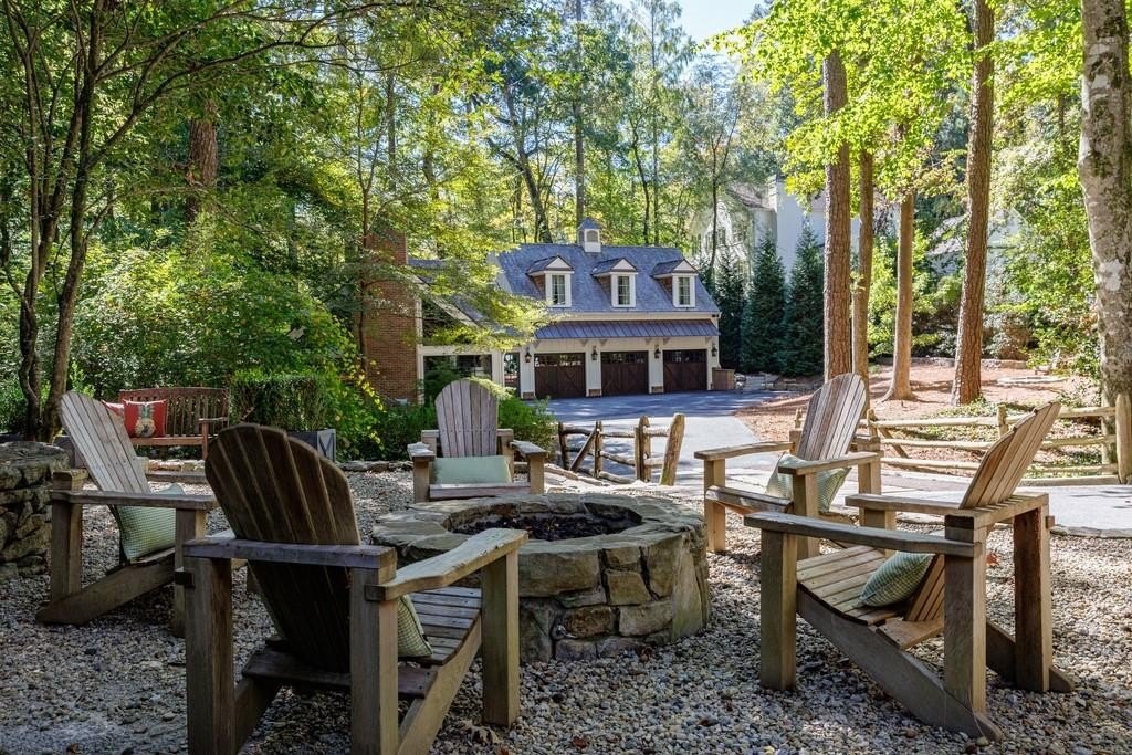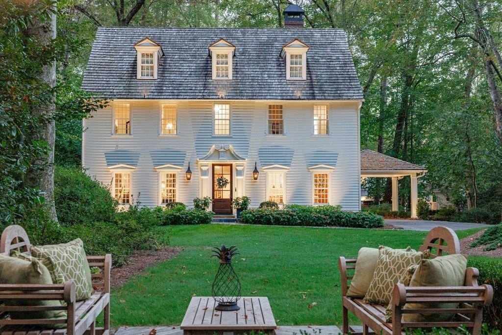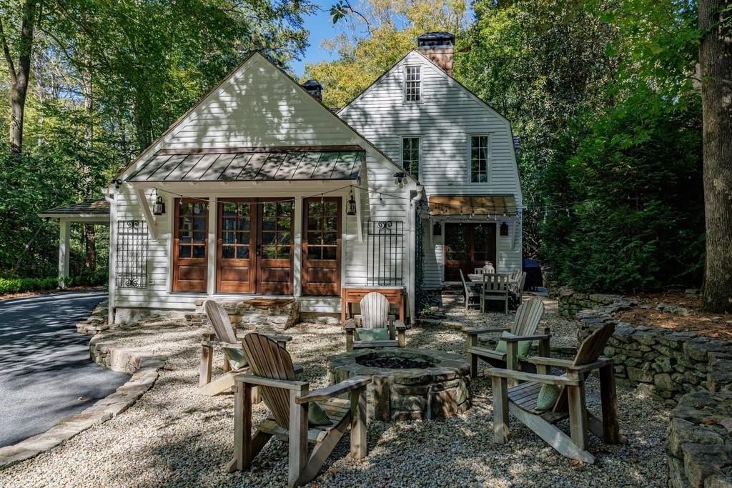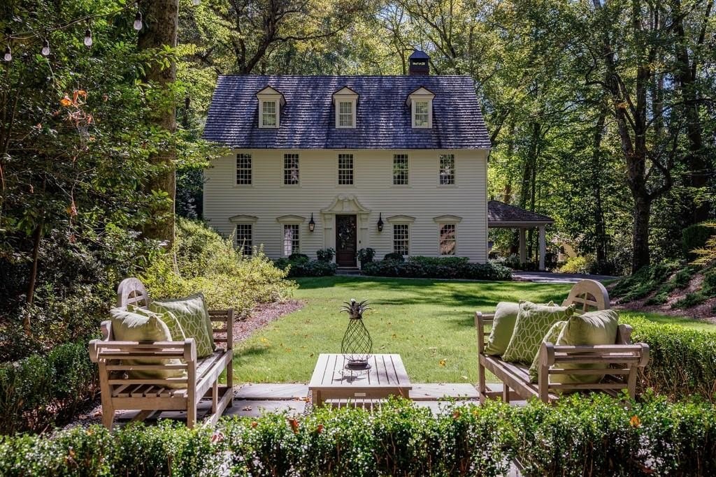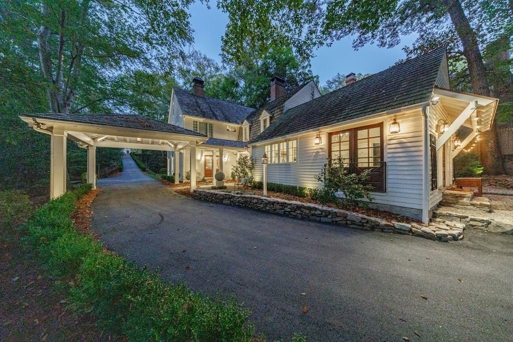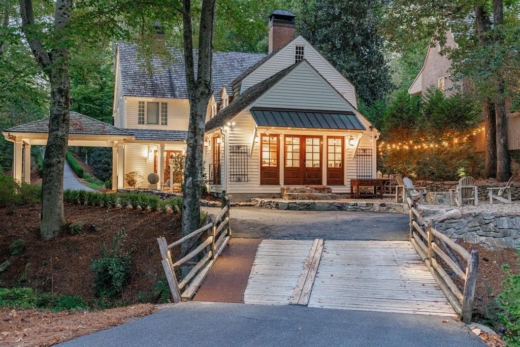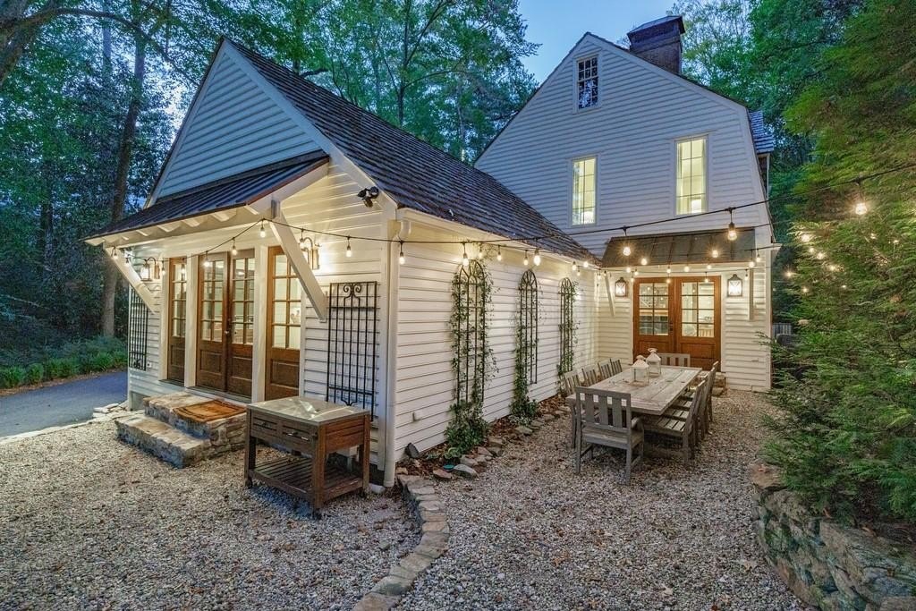 Truly one of a kind, this exceptional estate sits on a private 1.7+/- acres and features a Deerfield, Massachusetts-inspired colonial residence paired with a thoughtfully designed detached guest house and three-car garage. The main home has been beautifully renovated to incorporate modern luxury while preserving the timeless charm of an older estate, showcasing antique wood beams, original brick fireplaces, and a stunning chef's kitchen that opens seamlessly to the keeping room. A separate prep kitchen/bar enhance both everyday living and entertaining. Upstairs, the primary suite is a serene retreat complete with a fireplace, custom walk-in closet, and a spa-like bath featuring vaulted ceilings, dual vanities, and a separate soaking tub and shower. The grounds are just as special as the home itself. The detached guest house, designed by Mike Hammersmith to perfectly complement the main residence, offers exquisite details including exposed wood beams, shiplap accents, and a beautiful fireplace. Floor-to-ceiling windows in the kitchen and great room overlook the lush property, while a spacious deck with hot tub create the perfect space for relaxing or hosting guests. The upper level features a private bedroom suite with sitting area and full bath. Additional highlights include a three-car garage, porte-cochere for convenient daily access, and side entry into the main home. Surrounded by nature with the soothing sound of a nearby creek, this Buckhead estate offers a rare and serene setting unlike anything else in the area.