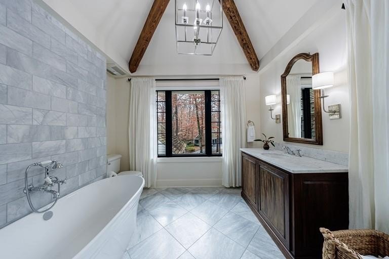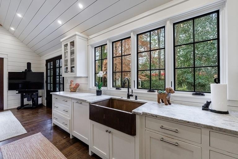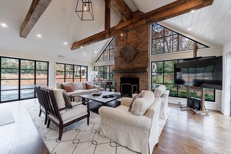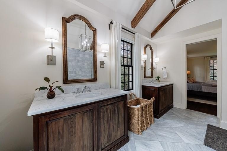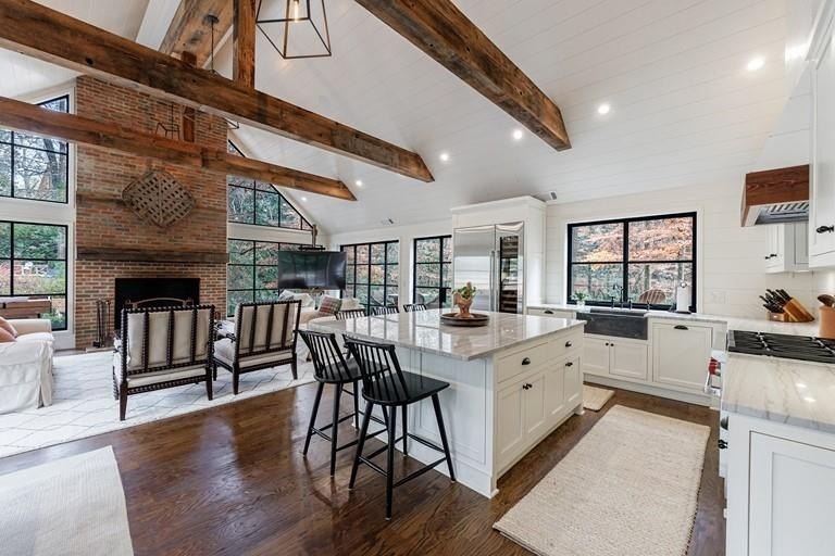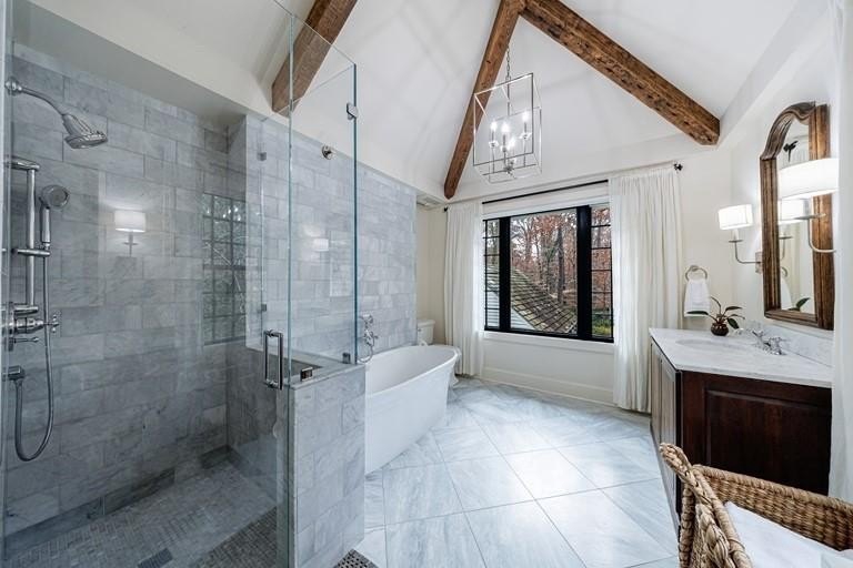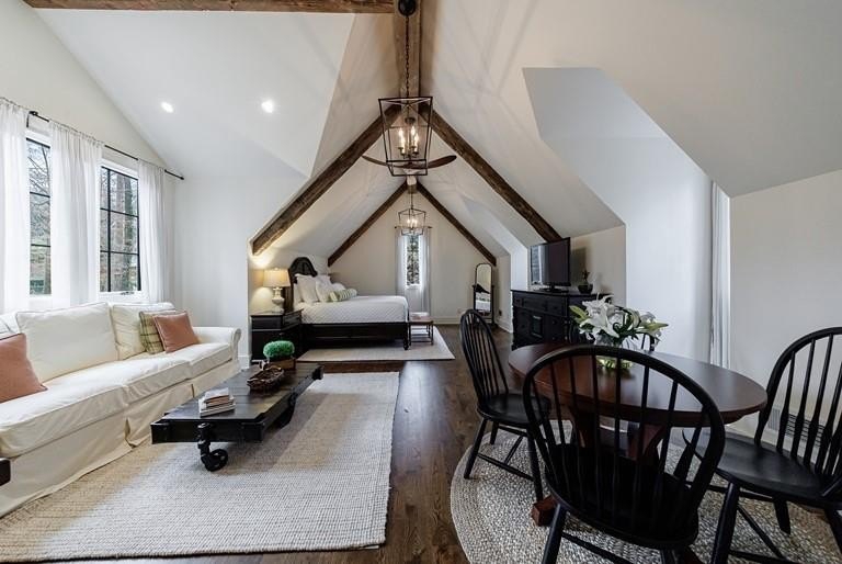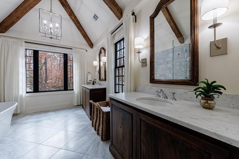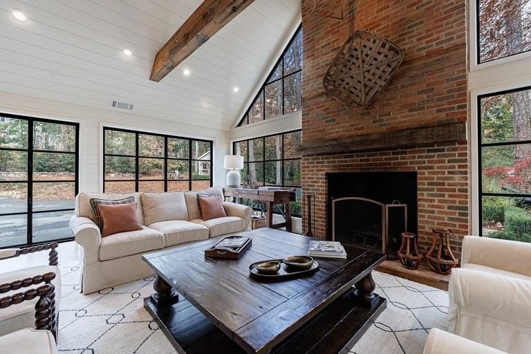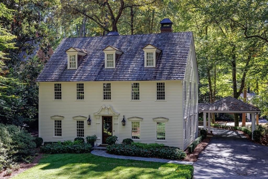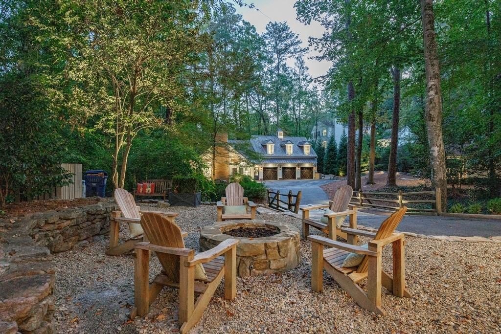 Truly one of a kind, this exceptional estate sits on a private 1.7+/- acres and features a Deerfield, Massachusetts-inspired colonial residence paired with a thoughtfully designed detached guest house and three-car garage. The main home has been beautifully renovated to incorporate modern luxury while preserving the timeless charm of an older estate, showcasing antique wood beams, original brick fireplaces, and a stunning chef's kitchen that opens seamlessly to the keeping room. A separate prep kitchen/bar enhance both everyday living and entertaining. Upstairs, the primary suite is a serene retreat complete with a fireplace, custom walk-in closet, and a spa-like bath featuring vaulted ceilings, dual vanities, and a separate soaking tub and shower. The grounds are just as special as the home itself. The detached guest house, designed by Mike Hammersmith to perfectly complement the main residence, offers exquisite details including exposed wood beams, shiplap accents, and a beautiful fireplace. Floor-to-ceiling windows in the kitchen and great room overlook the lush property, while a spacious deck with hot tub create the perfect space for relaxing or hosting guests. The upper level features a private bedroom suite with sitting area and full bath. Additional highlights include a three-car garage, porte-cochere for convenient daily access, and side entry into the main home. Surrounded by nature with the soothing sound of a nearby creek, this Buckhead estate offers a rare and serene setting unlike anything else in the area.
