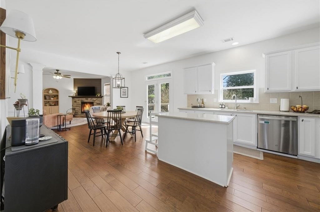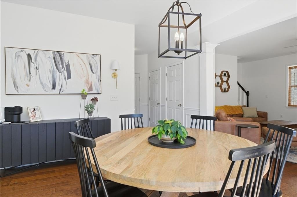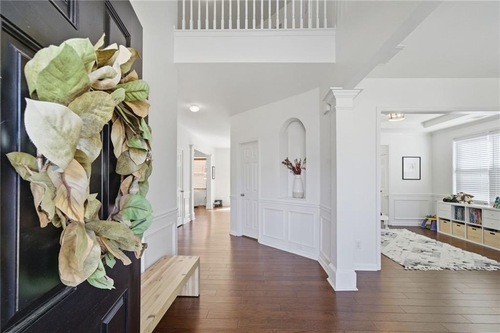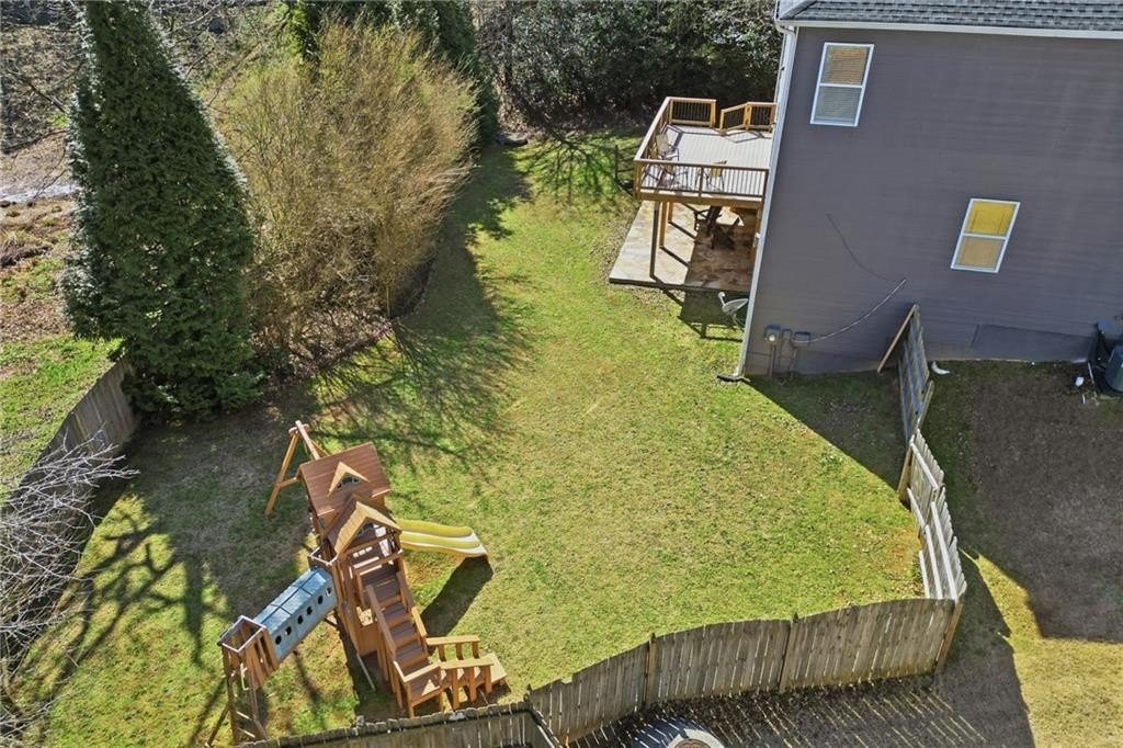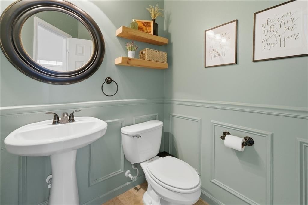 Welcome Home! This updated home can be found on a .27 acre culdesac lot in The Falls at Mill Creek! Step onto the rocking chair front porch and into the two story foyer with modern paint colors and engineered hardwoods throughout main. Flex space to your right leads you into the dining room framed with wainscoting connecting to the kitchen boasting of SS appliances, tile backsplash, pantry and plenty of room for additional seating w/ view to the living room! Tons of natural lighting with glass doors leading you to new trex back deck w/ gate and stairs down to fenced back yard! Living room framed around stacked stone + shiplap fireplace with bamboo Roman shades. Upstairs takes you to oversized landing area with primary bedroom w/ en suite bathroom featuring double vanity, separate tub + shower, and walk-in closet! Secondary bedroom sizes will not disappoint and share secondary bathroom on upper level! Laundry room upstairs. Partially finished basement offers additional space to entertain and a separate unfinished space for storage! Access to back yard from main basement room opens into pavers and a lush, private, flat green space! Newer roof and HVAC. Close to schools, shopping and restaurants! Don't miss the community amenities! This one is sure to check all of your boxes!