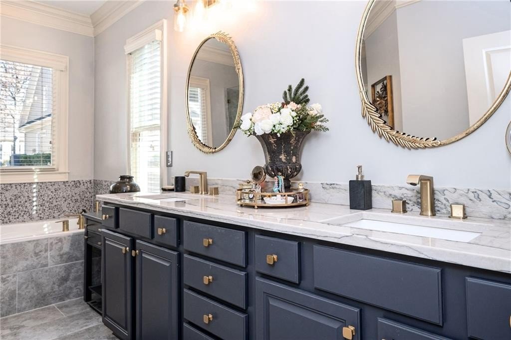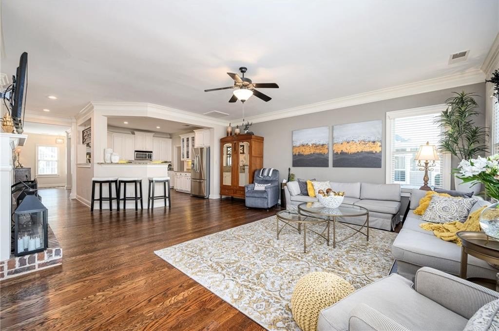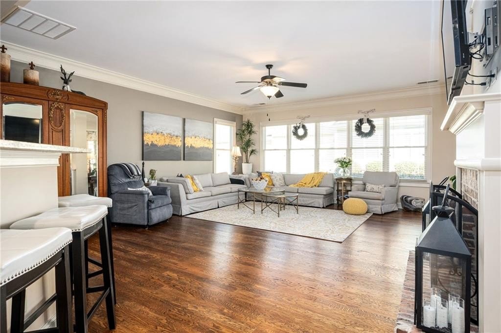 Beautifully updated home featuring one of the largest floor plans in the community and designed for comfort and functionality. This meticulously maintained property offers an inviting open-concept layout with rich hardwood floors that flow throughout the main living spaces, creating the perfect setting for both everyday living and entertaining. The well-appointed kitchen showcases cream-painted cabinetry with elegant glass-front doors, opening seamlessly to spacious living and dining areas. A versatile sitting room or office provides flexible space for work or relaxation. The primary suite on the main level serves as a private retreat with a renovated master bath and generous closet space, There is a guest bedroom with an en-suite bath on the main floor with a large walk in closet and offers ideal privacy for visitors. A stylishly updated half bath adds additional convenience. Upstairs, you'll find a spacious second level featuring a guest bedroom, full bath, and an oversized flex or recreation room, perfect for media space, hobbies, or additional living. Exceptional storage is provided with a huge walk-in attic space. Enjoy year-round outdoor living on the screened porch, ideal for relaxing or entertaining guests. Community amenities enhance the lifestyle with two pools, clubhouses, tennis courts, and a playground, offering activities and social opportunities for residents. Ideally located for an active and connected lifestyle, this home is just minutes from shopping, dining, and outdoor recreation including the scenic Silver Comet Trail. Commuters will appreciate easy access to I-285 and I-75, with vibrant entertainment and dining only a short drive away at The Battery Atlanta - approximately 15 minutes from your doorstep.