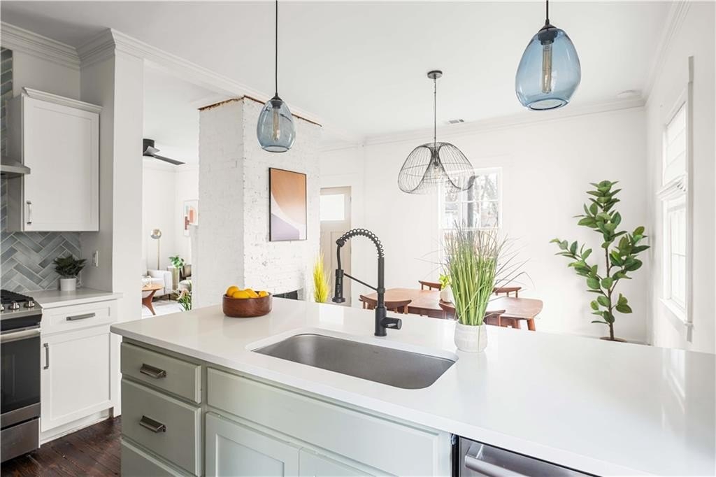 Welcome to 322 4th Avenue, a thoughtfully updated cottage tucked inside the City of Decatur, ideally positioned between Oakhurst Village and 2nd and Hosea. Enjoy close proximity to Decatur schools and two beloved retail districts with coffee shops, local restaurants, and neighborhood markets, all just minutes from your front door. Inside, the home balances charm and function. A double-sided fireplace anchors the living space, while the open kitchen flows easily into a dedicated dining room. The spacious primary suite features double vanities and a walk-in closet, offering a comfortable retreat. Down the hall, two additional bedrooms and a second full bath provide flexible space for guests, work, or play. The flat, fully fenced backyard is a standout - lush, private, and beautifully cultivated to bloom each Spring. With a newer HVAC system (2024) and tankless water heater, the updates are already in place. Move right in and enjoy the best of Decatur living!