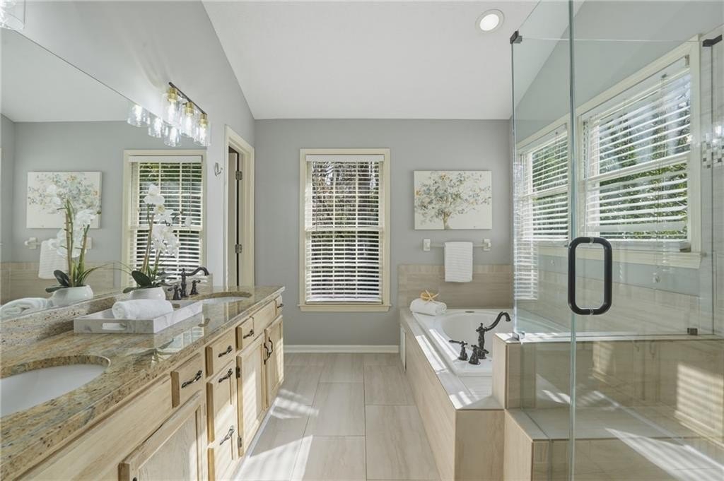 Nestled on a quiet cul-de-sac in sought-after Alpharetta within the prestigious Johns Creek High School district, this beautifully appointed home offers space, comfort, and exceptional entertaining features. The main floor features a room perfect for an office, playroom, or formal living room; a designated dining room; open concept kitchen which flows nicely into the living area and breakfast nook- Making entertaining and modern living effortless! This home features 4 spacious bedrooms, including an oversized owner's suite with a luxurious spa-inspired bathroom, designed for both relaxation and everyday living. The thoughtfully finished terrace level expands your living space with a full bath, custom bar, and dedicated theatre room - perfect for movie nights or hosting guests. Step outside to a private backyard retreat ideal for entertaining, complete with a built-in outdoor grill and plenty of space to gather with family and friends. If all of that was not enough, it comes with brand new carpet throughout, updated lighting, HVAC UV lights, and water filtration in the kitchen. This home truly offers the perfect blend of elegance, functionality, and location. Don't miss the opportunity to make it yours.