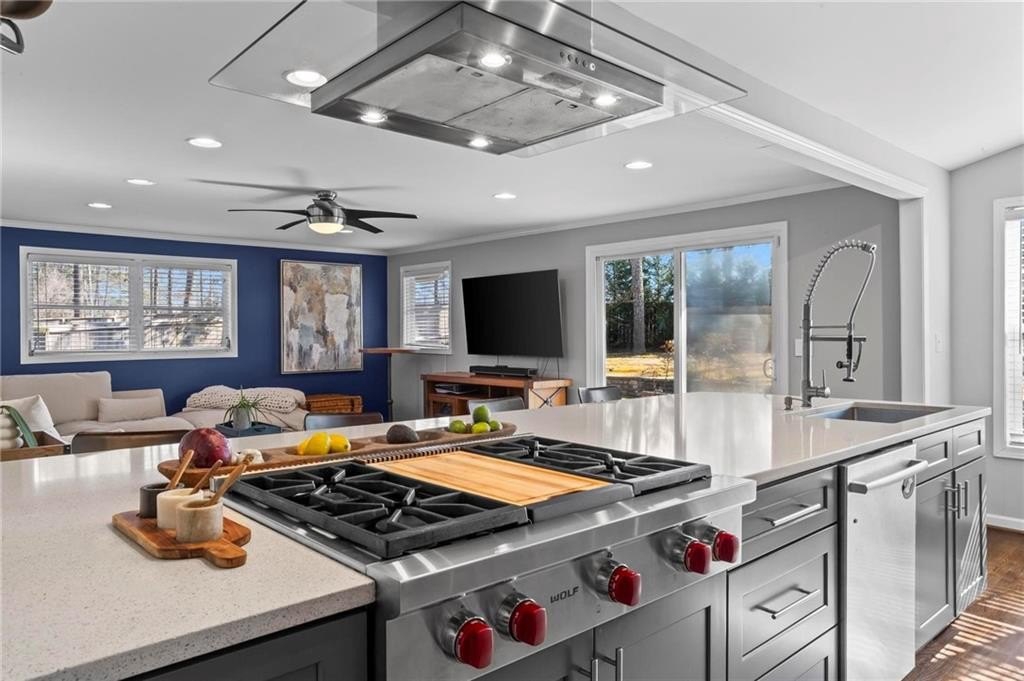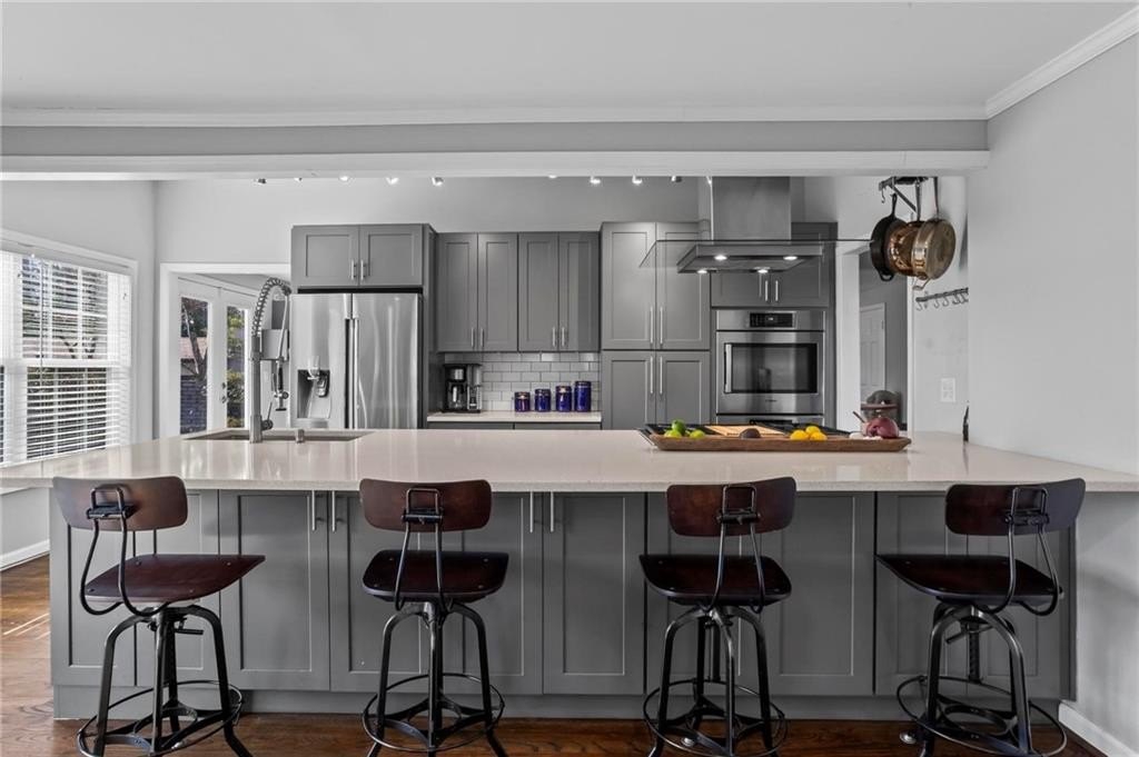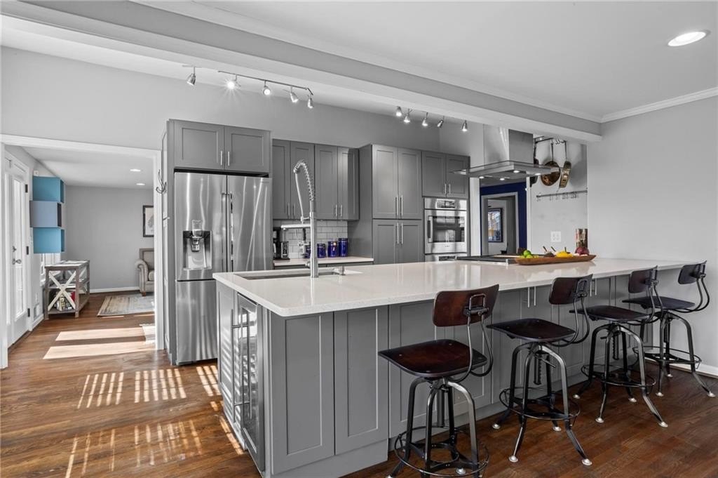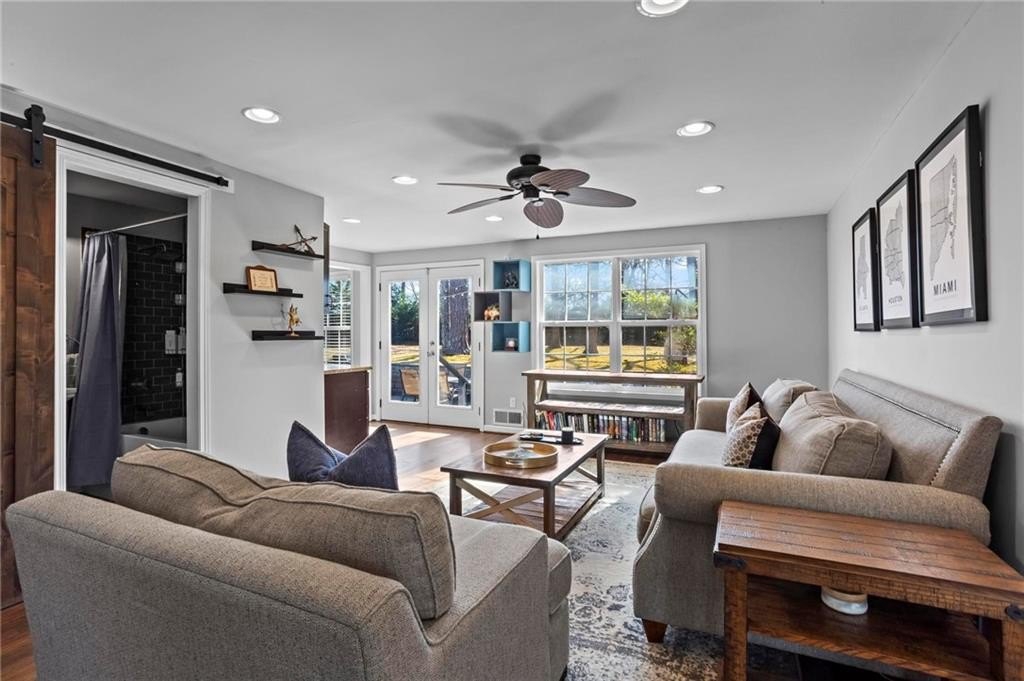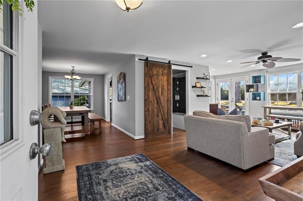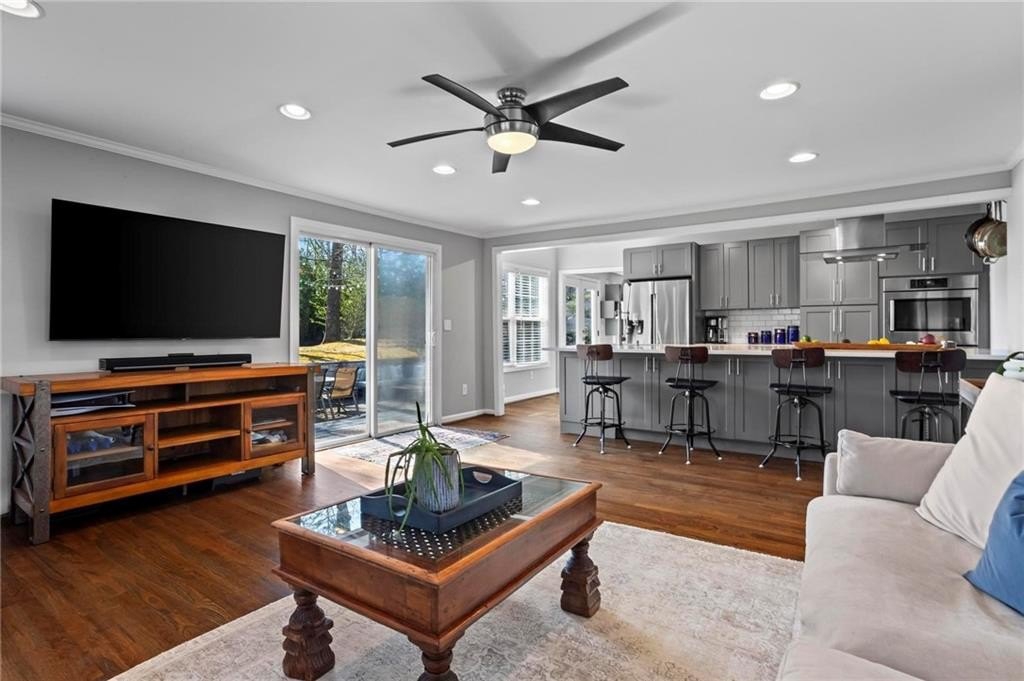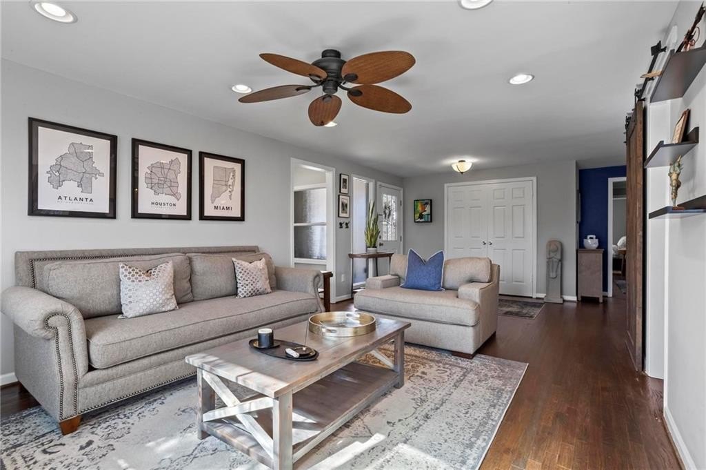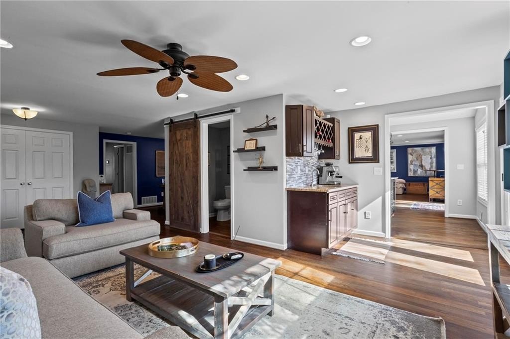 Located in the sought-after Hillsdale neighborhood of Brookhaven, this sprawling ranch offers a rare combination of space, functionality, and community. Known for its strong neighborhood feel and active social atmosphere, Hillsdale remains one of Brookhaven's most desirable pockets. This updated home features 3 bedrooms and 2 bathrooms with a truly unique floorplan for the neighborhood. Two very large living spaces provide flexibility for everyday living, work-from-home needs, or entertaining. The front living room includes a wet bar with generous storage. The chef's kitchen is thoughtfully designed with a Wolf range, Bosch appliances, built-in wine fridge, and an oversized bar that overlooks the back living room,creating an easy flow for gatherings. Hardwood floors run throughout the home, and abundant natural light enhances the open feel. The primary bedroom comfortably fits a king-sized bed, and the secondary bedrooms are generously sized as well. A spacious laundry room adds convenience and is found within the home by the door to the garage. The crawlspace is another area to highlight, as there is room to stand and offers easy access and valuable additional storage. Outside, the fenced walkout backyard and patio provide usable outdoor living space, ideal for entertaining or everyday enjoyment. Additional improvements include a newer roof and newer water heater. Enjoy close proximity to Town Brookhaven, Dresden Village, Publix, Kroger, Chick-fil-A, and easy access to I-85, making daily errands and commuting a breeze. This amazing home is not to be missed!