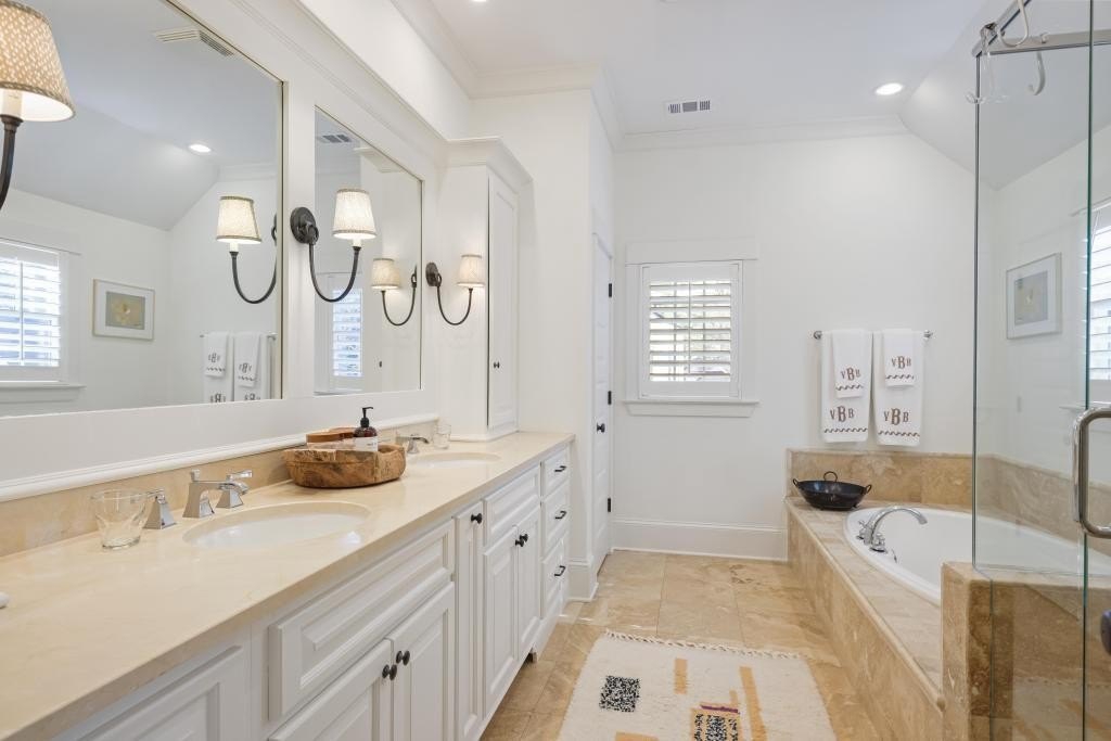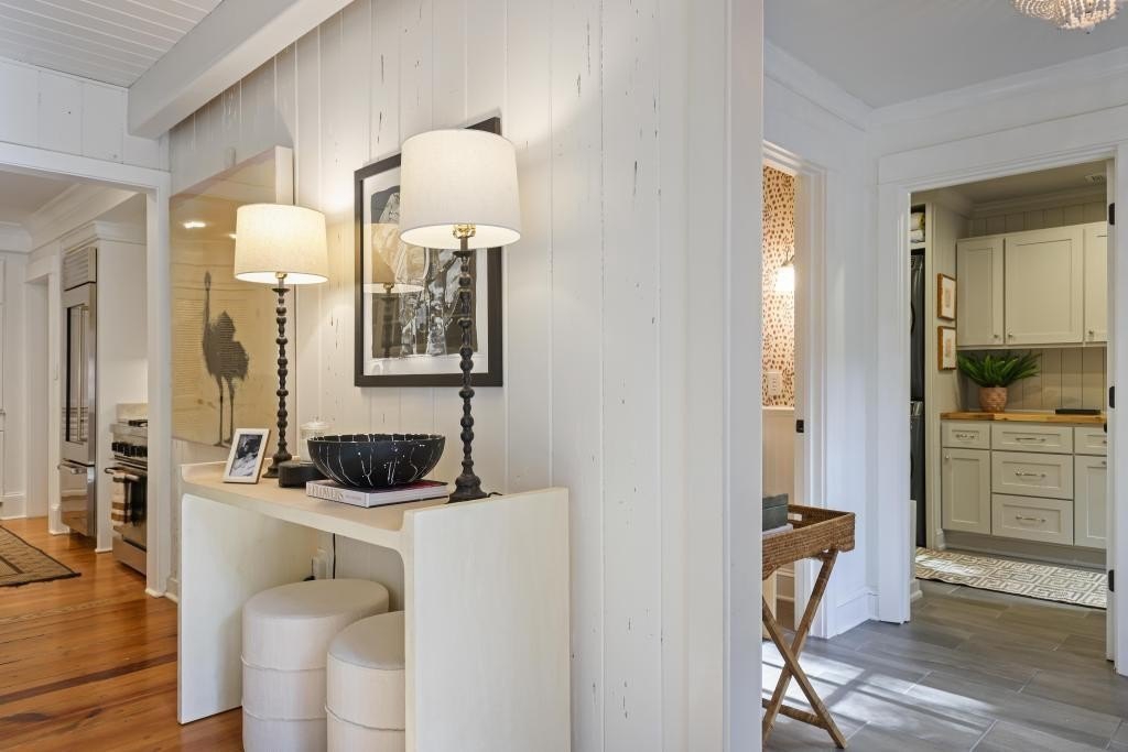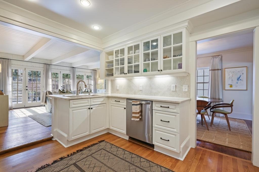 This dreamy, fully renovated home in sought-after Garden Hills has it all! From the moment you step inside, you are welcomed by a light-filled interior featuring a two-story foyer and a beautiful fireside formal living room! A separate dining room with custom built-ins flows seamlessly into the open-concept kitchen and family room-an ideal layout for both everyday living and effortless entertaining! The beautifully appointed kitchen showcases stone countertops with a breakfast bar, Sub-Zero refrigerator, Thermador range and plenty of storage! The kitchen opens to a warm and inviting family room with wide-plank hardwood floors, exposed beams, and a stunning wall of French doors leading to a slate terrace-perfect for dining al fresco and hosting gatherings year-round!! The professionally landscaped backyard is a true retreat, complete with low-maintenance turf and a private putting green! The main level offers two spacious bedrooms, one and a half baths, and a large, recently renovated laundry/mudroom. Upstairs, the oversized primary suite features a sitting area, two expansive custom walk-in closets, and a luxurious bath with dual sinks, soaking tub, and large walk-in shower. An additional upstairs bedroom includes its own en-suite bath and walk-in closet. With abundant storage throughout, a private backyard, and ample driveway parking, this home checks every box! Garden Hills features a neighborhood pool, tennis courts, park and is close to some of Atlanta's best restaurants, shopping, and schools. You do not want to miss this one!