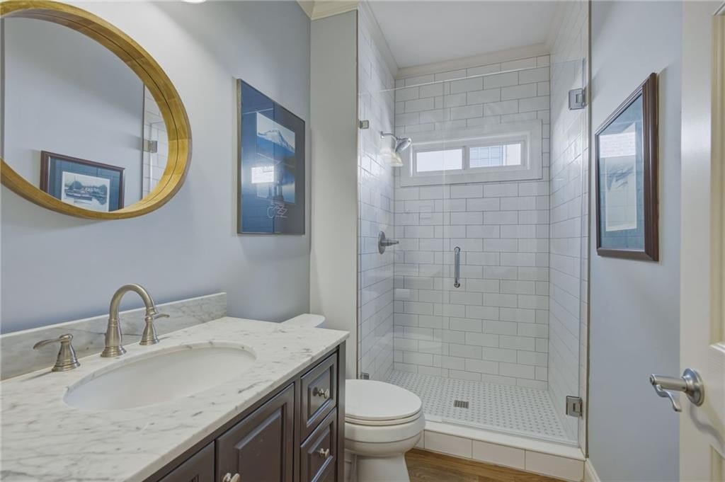 Beautifully maintained home is in IMMACUALTE condition and loaded with upgrades throughout. Hardwood floors throughout main level as well as upstairs. Upgraded kitchen with new island, backsplash, countertops, high-end appliances and a spacious walk-in pantry with custom built-in shelving. Main level offers large fireside family room, formal living room, open dining room with beautiful moldings, and a large bedroom with full updated bath. Primary suite boasts hardwood floors, cozy fireplace, tray ceiling, and a gorgeous, updated bath. Primary bath is complete with new his/her vanities, updated tile shower, soaking tub and heated tile floor to enhance the luxury. Primary closet offers custom closet system. 2 additional secondary bedrooms with private baths are upstairs. One of the standout features of this home is the massive laundry room located upstairs. It offers a utility sink and an abundance of cabinets and storage space. Enjoy morning coffee or an evening cocktail on the beautifully appointed screened porch off the main level. A full unfinished basement is stubbed for a bath and ready for future expansion and customization. Seller has taken incredible pride in maintaining the home with routine services, updates and upgrades. Conveniently located minutes to downtown Smyrna, I-285, Vinings, The Battery and 30 minutes to the Atlanta Airport.