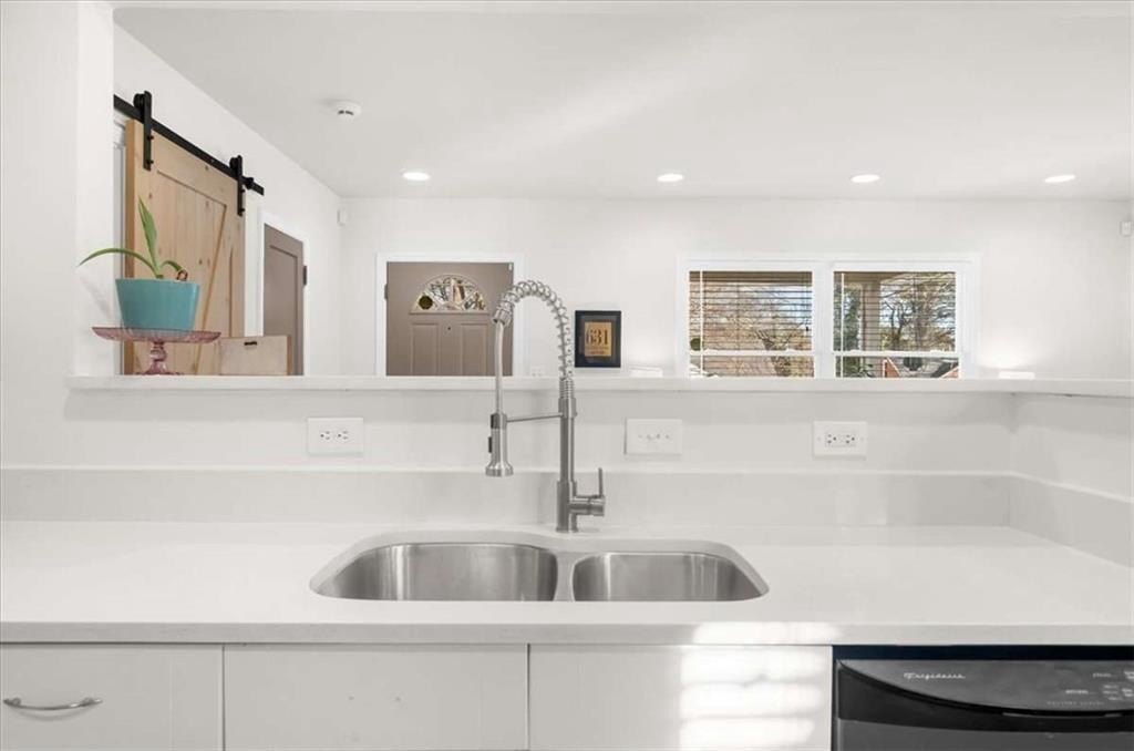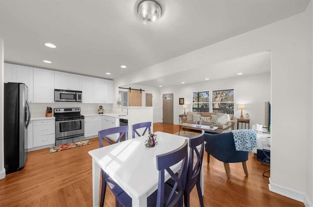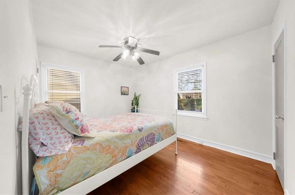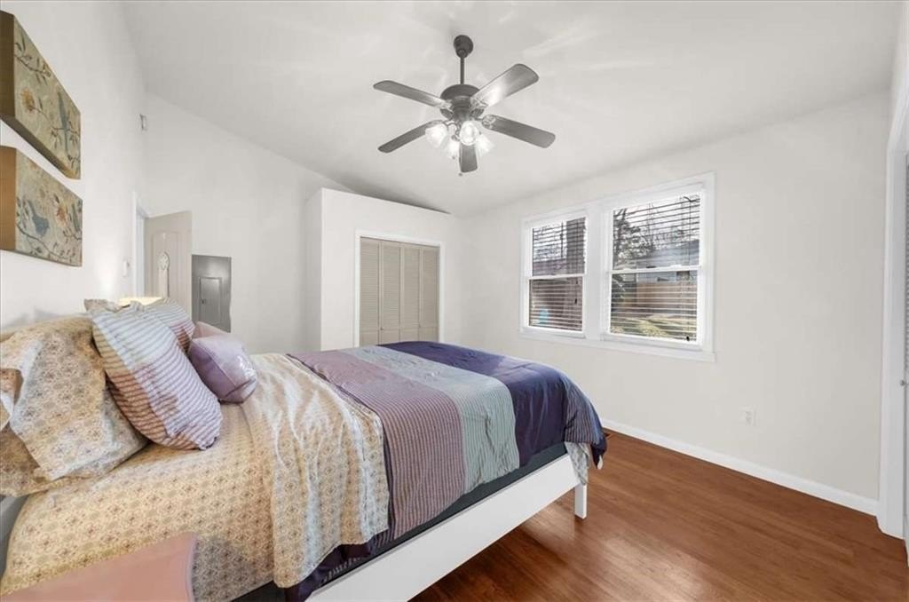There's something about 631 Quillian Avenue that feels effortless from the moment you arrive. It might be the turquoise door tucked beneath the covered entry. It might be the way natural light moves across the hardwood floors throughout the day. Or it might be knowing that Barker Bryant Memorial Park and Buena Vista Lake are just a block away, offering open green space and peaceful water views close to home. Built in 1949 and thoughtfully updated, this bungalow blends classic character with a layout that feels open and connected. The living, dining, and kitchen spaces flow seamlessly together, creating a setting that works just as well for quiet evenings as it does for hosting friends. Recessed lighting keeps the space bright and modern, while the expansive pass-through bar anchors the room and keeps conversation within reach. The kitchen is clean and functional with white cabinetry, quartz countertops, stainless steel appliances, and generous storage. The double-basin sink faces the main living area, reinforcing the home's open, welcoming feel. The primary suite offers vaulted ceilings and abundant natural light, giving the room an airy, retreat-like atmosphere. The en suite bath features a double vanity and tiled tub and shower surround. Two additional bedrooms provide flexibility for work, hobbies, guests, or creative space, along with a secondary full bath. Outdoor living feels just as inviting. The back patio opens to a fully fenced, level yard with space to entertain, garden, relax, or gather around the firepit. The backyard feels usable and private, framed by mature trees and open sky. Major updates include a full HVAC replacement in December 2024 and front roof replacement in November 2025. This move-in ready home offers classic bungalow charm paired with modern updates and a strong connection to its surrounding green space.