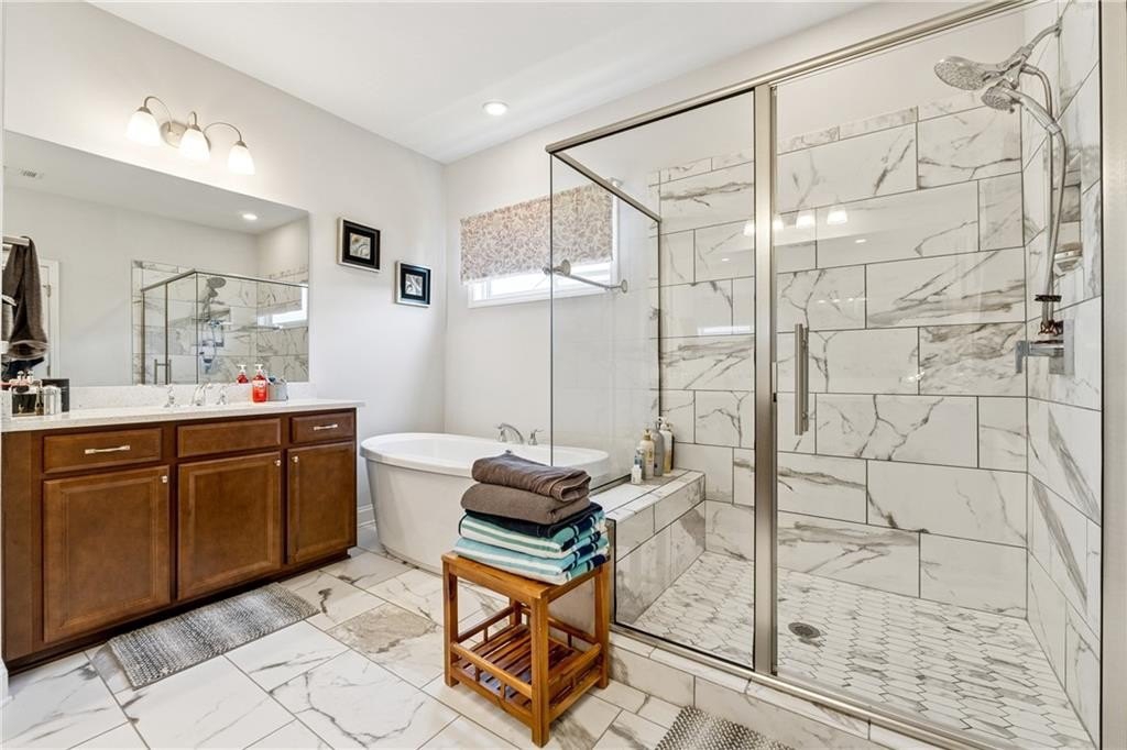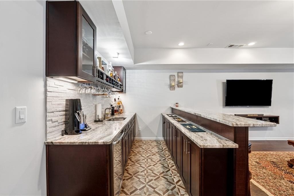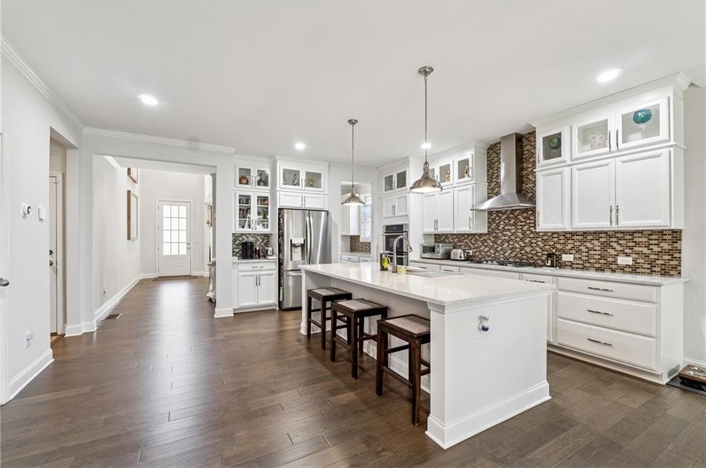 Priced to sell quick Welcome to this NORTH FACING HOME. Step into timeless charm in this gorgeous Snellville masterpiece-a true gem in the coveted Brookwood neighborhood! Beautiful dark hardwoods flow throughout the entire home, paired with a bright neutral palette that radiates warmth. A grand two-story entryway will delight you, setting a tone of timeless elegance. The expansive chef's kitchen overlooks the living area and shines with stainless appliances, sleek quartz counters, double ovens, a gas cooktop, a large island and a wet bar ideal for whipping up your favorite meals / drinks or hosting festive get-togethers. The open-concept living area, accented by a cozy fireplace, creates a positively chic space perfect for lively gatherings or quiet evenings at home. Four spacious secondary bedrooms with standing showers and walk in closets offer ample room for family, guests, or hobbies, while the stunning owner's suite boasts trey ceilings, a walk-in closet with built-ins, and a gorgeous ensuite featuring double vanities, a soaking tub, and a large shower for ultimate relaxation. A full, finished basement adds versatility with a bedroom, full bathroom, living area, and kitchenette-perfect for movie and game nights or accommodating visitors. Step outside to a screened-in porch overlooking a fenced backyard and patio, ideal for al fresco dining under the stars or sunny afternoon barbecues. The Brookwood neighborhood perfectly complements your lifestyle with a large pool and playground for endless fun. You'll find idyllic suburban living just minutes from downtown Snellville, with vibrant shopping, dining, and easy access to Ronald Reagan Pkwy, plus zoning for prestigious Brookwood High School. Schedule your showing today and discover the life within Snellville you've been dreaming of!