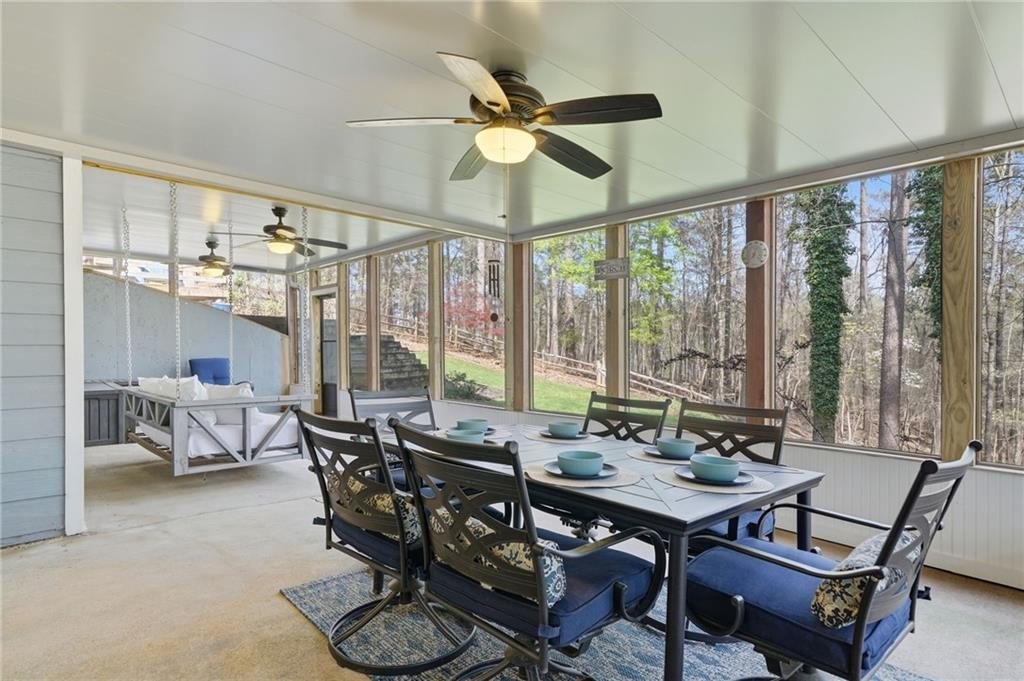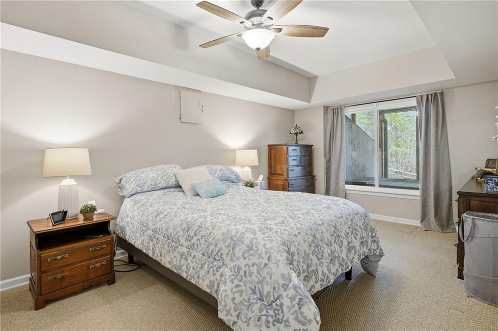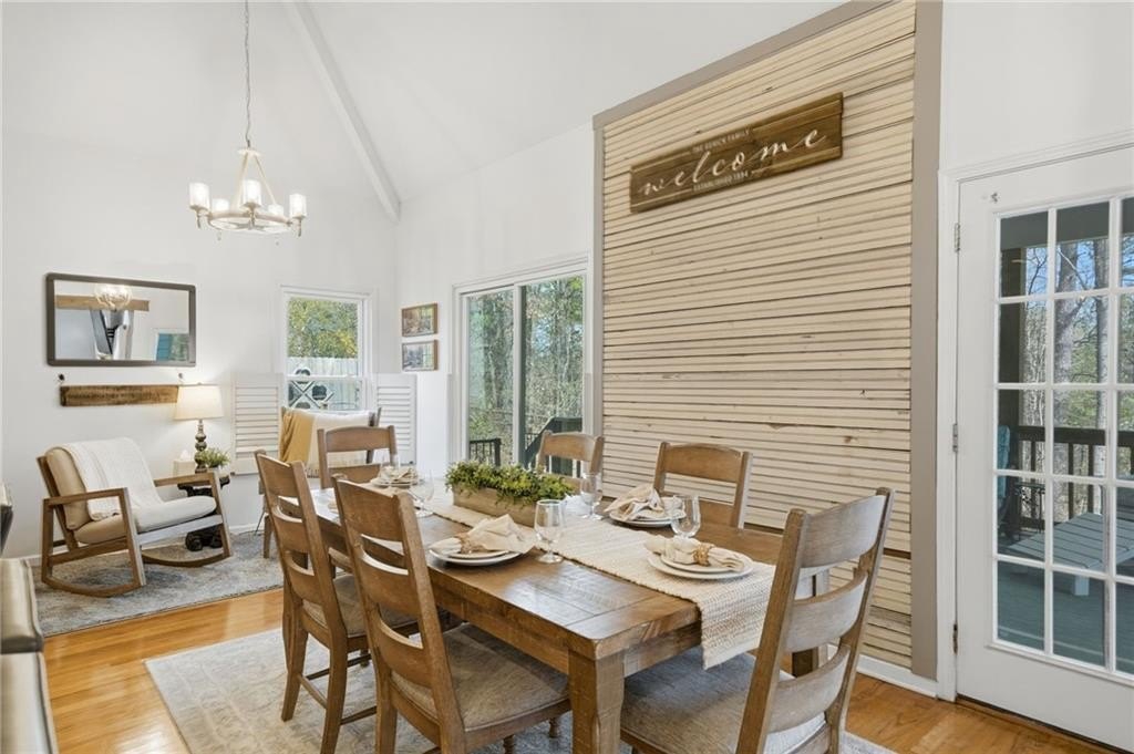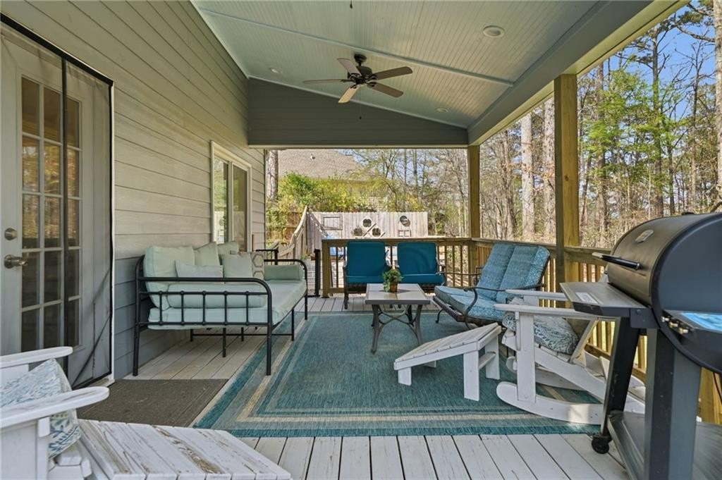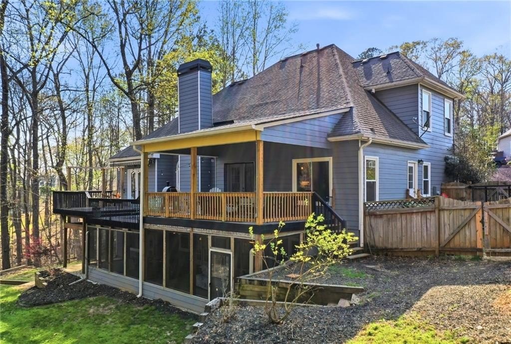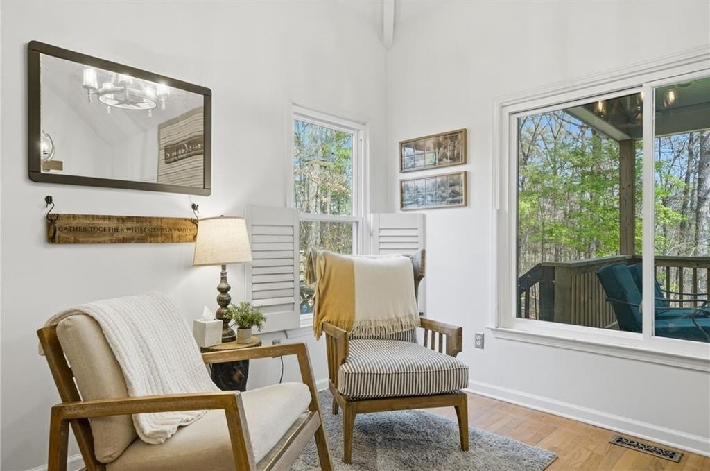 A MUST SEE peaceful retreat with Lake Allatoona access! Hike to the lake through the wooded backyard/Corps property or take a golf cart along the paved path to the community dock and party deck. Enjoy a break from the craziness of life and breathe in the beauty of nature, soak up the sunsets, and enjoy year-round lake living without the hassle of dock maintenance. Situated on a large lot in the highly desirable Lovinggood Landing golf cart community, this gorgeous, updated 6-bedroom, 3.5-bathroom beauty is calling you home! The 2-story foyer flows effortlessly into the great room with its lofty ceilings, natural light, and cozy stacked stone fireplace. Meander into the dreamy, recently remodeled chef's kitchen with beautiful wood beams, stunning shaker cabinets, a huge island/bar, newer stainless-steel appliances, granite counters, gorgeous lighting, a sitting area, and a dining space that could easily fit a table for twelve. It's the perfect spot to host family and friends! An adjacent room currently serves as an extension of the kitchen with a cool coffee bar and beautiful built-in cabinets, but it could also be utilized as an intimate formal dining room or cheerful office. Retreat to the private master on main that boasts high ceilings, tons of natural light, and access to the back deck and porch swing. The remodeled master bath features a double vanity with granite counters, a pretty soaking tub, separate tiled shower, and a large walk-in closet. A convenient half bath and laundry room/mud room complete the main floor. On the upper floor, you'll find three generously sized secondary bedrooms with walk-in closets and a shared Jack-and-Jill bathroom. You're not going to want to miss seeing the bright and cheerful, fully finished, terrace level that would make the perfect in-law suite. Unlike a typical basement, each room has a large window (or French doors) and is flooded with natural light. There's so much to love -- from the spacious bedrooms, full bath and beautiful eat-in kitchen to the open living room, easy-to-access storage areas and peaceful screened patio! Above the screened patio is a huge, partially covered deck with plenty of room to relax, grill out with friends, or wind down at the end of the day. Opportunities like this don't come along often! Jump at your chance to move near the lake and start living your best life today! *Windows and all three HVAC systems have been replaced.