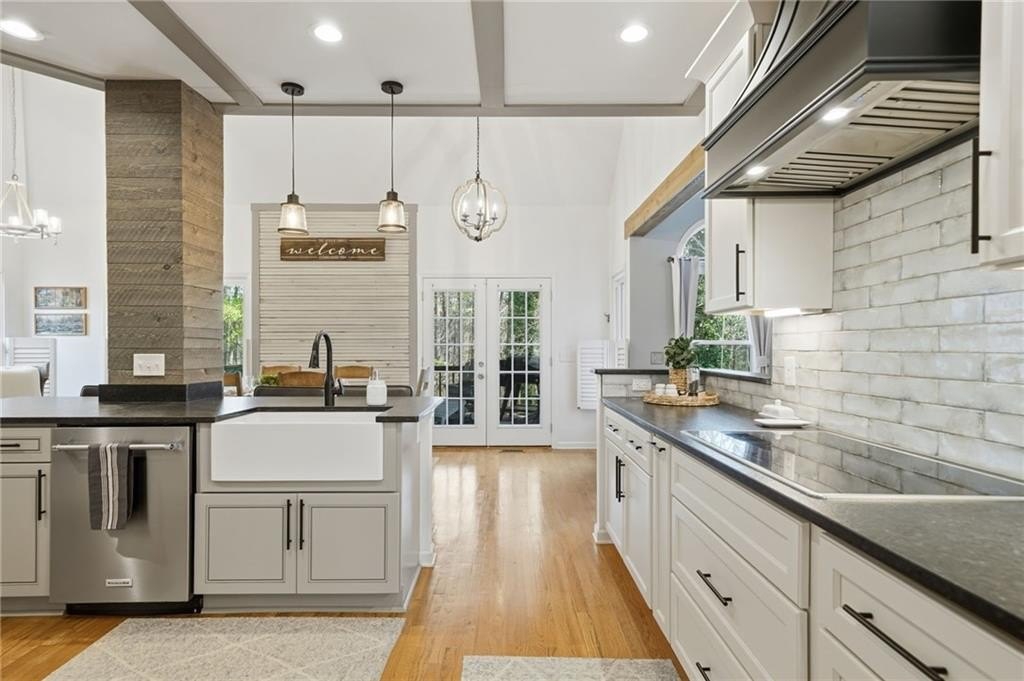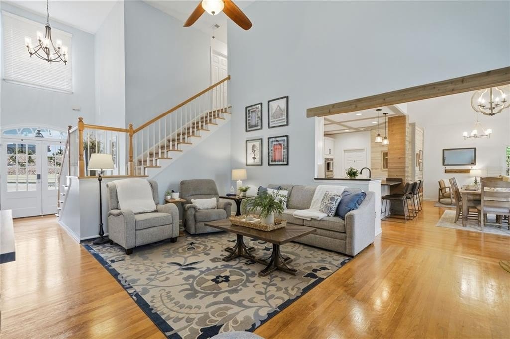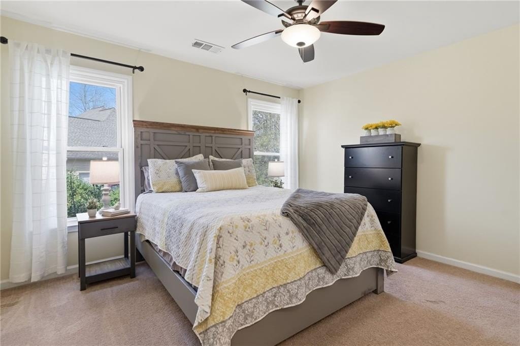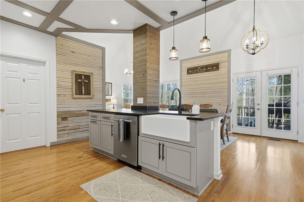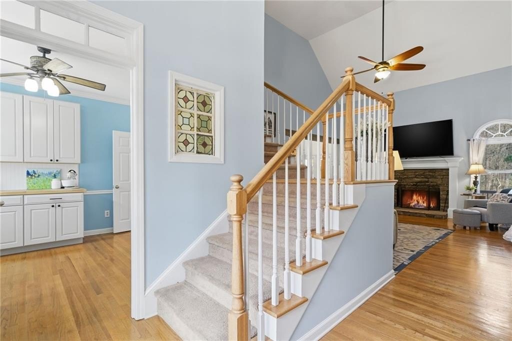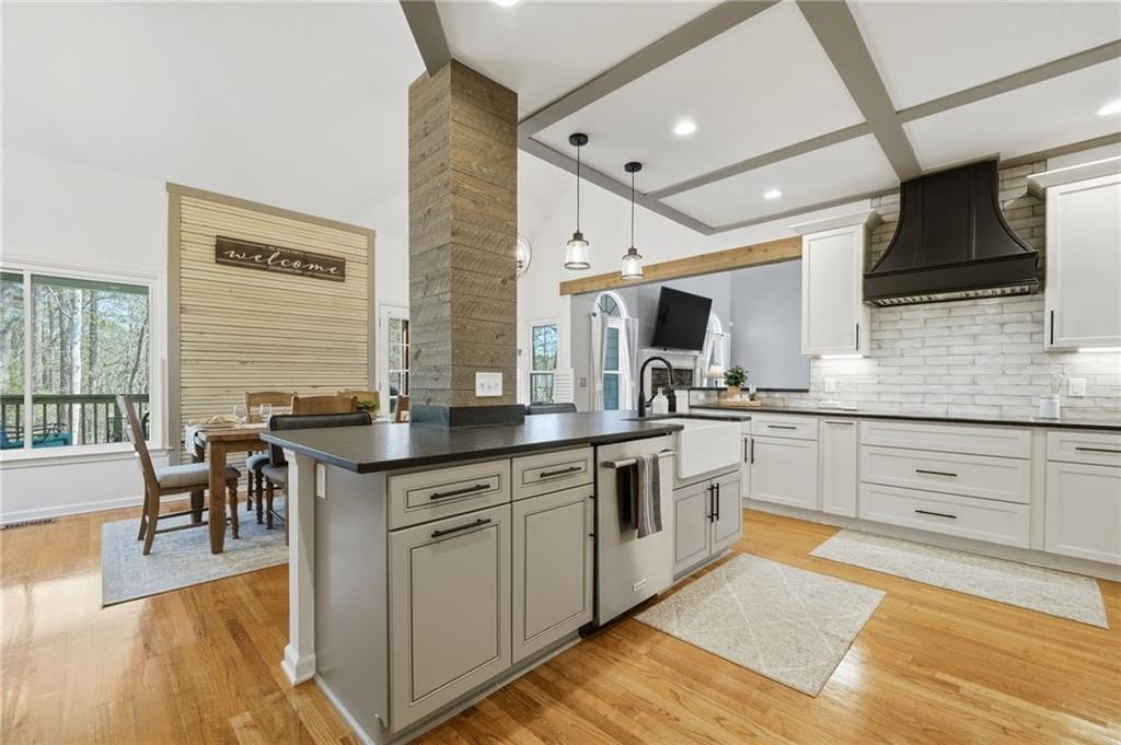 A MUST SEE peaceful retreat with Lake Allatoona access! Hike to the lake through the wooded backyard/Corps property or take a golf cart along the paved path to the community dock and party deck. Enjoy a break from the craziness of life and breathe in the beauty of nature, soak up the sunsets, and enjoy year-round lake living without the hassle of dock maintenance. Situated on a large lot in the highly desirable Lovinggood Landing golf cart community, this gorgeous, updated 6-bedroom, 3.5-bathroom beauty is calling you home! The 2-story foyer flows effortlessly into the great room with its lofty ceilings, natural light, and cozy stacked stone fireplace. Meander into the dreamy, recently remodeled chef's kitchen with beautiful wood beams, stunning shaker cabinets, a huge island/bar, newer stainless-steel appliances, granite counters, gorgeous lighting, a sitting area, and a dining space that could easily fit a table for twelve. It's the perfect spot to host family and friends! An adjacent room currently serves as an extension of the kitchen with a cool coffee bar and beautiful built-in cabinets, but it could also be utilized as an intimate formal dining room or cheerful office. Retreat to the private master on main that boasts high ceilings, tons of natural light, and access to the back deck and porch swing. The remodeled master bath features a double vanity with granite counters, a pretty soaking tub, separate tiled shower, and a large walk-in closet. A convenient half bath and laundry room/mud room complete the main floor. On the upper floor, you'll find three generously sized secondary bedrooms with walk-in closets and a shared Jack-and-Jill bathroom. You're not going to want to miss seeing the bright and cheerful, fully finished, terrace level that would make the perfect in-law suite. Unlike a typical basement, each room has a large window (or French doors) and is flooded with natural light. There's so much to love -- from the spacious bedrooms, full bath and beautiful eat-in kitchen to the open living room, easy-to-access storage areas and peaceful screened patio! Above the screened patio is a huge, partially covered deck with plenty of room to relax, grill out with friends, or wind down at the end of the day. Opportunities like this don't come along often! Jump at your chance to move near the lake and start living your best life today! *Windows and all three HVAC systems have been replaced.