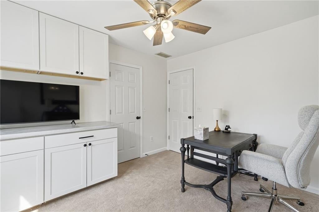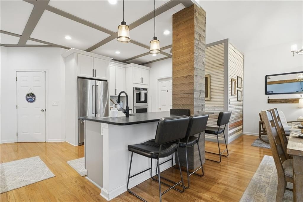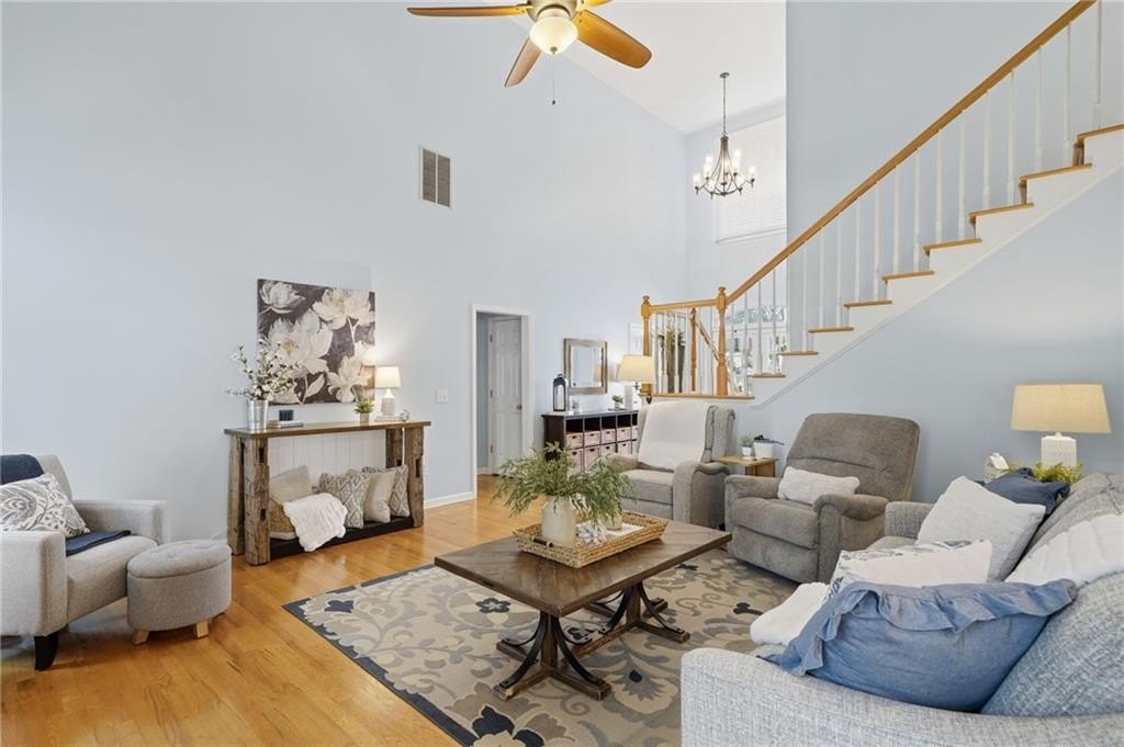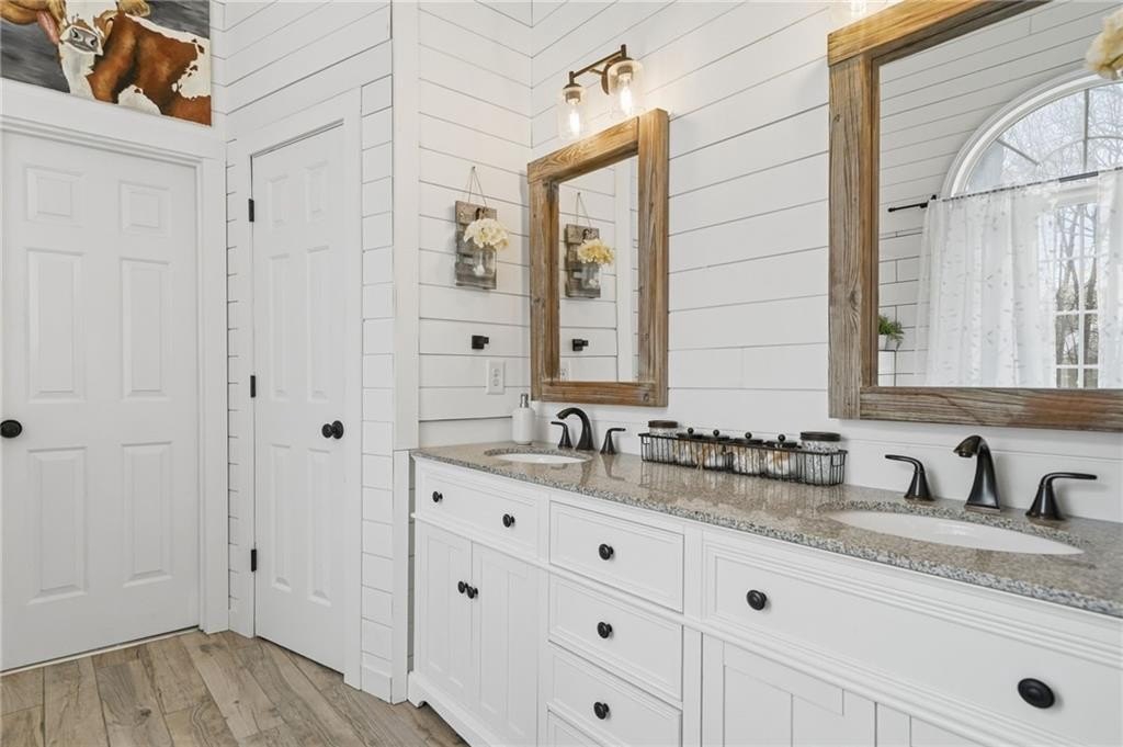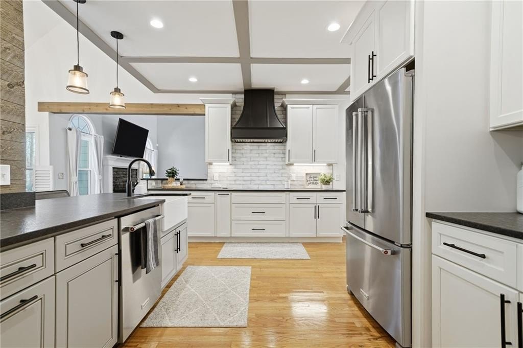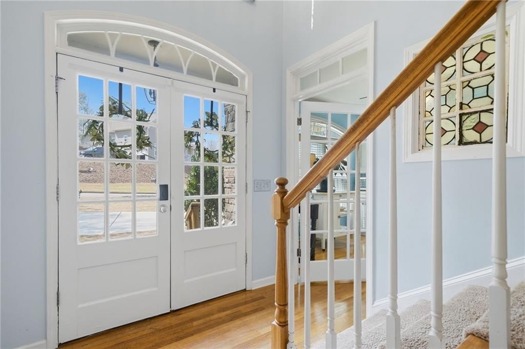 A MUST SEE peaceful retreat with Lake Allatoona access! Hike to the lake through the wooded backyard/Corps property or take a golf cart along the paved path to the community dock and party deck. Enjoy a break from the craziness of life and breathe in the beauty of nature, soak up the sunsets, and enjoy year-round lake living without the hassle of dock maintenance. Situated on a large lot in the highly desirable Lovinggood Landing golf cart community, this gorgeous, updated 6-bedroom, 3.5-bathroom beauty is calling you home! The 2-story foyer flows effortlessly into the great room with its lofty ceilings, natural light, and cozy stacked stone fireplace. Meander into the dreamy, recently remodeled chef's kitchen with beautiful wood beams, stunning shaker cabinets, a huge island/bar, newer stainless-steel appliances, granite counters, gorgeous lighting, a sitting area, and a dining space that could easily fit a table for twelve. It's the perfect spot to host family and friends! An adjacent room currently serves as an extension of the kitchen with a cool coffee bar and beautiful built-in cabinets, but it could also be utilized as an intimate formal dining room or cheerful office. Retreat to the private master on main that boasts high ceilings, tons of natural light, and access to the back deck and porch swing. The remodeled master bath features a double vanity with granite counters, a pretty soaking tub, separate tiled shower, and a large walk-in closet. A convenient half bath and laundry room/mud room complete the main floor. On the upper floor, you'll find three generously sized secondary bedrooms with walk-in closets and a shared Jack-and-Jill bathroom. You're not going to want to miss seeing the bright and cheerful, fully finished, terrace level that would make the perfect in-law suite. Unlike a typical basement, each room has a large window (or French doors) and is flooded with natural light. There's so much to love -- from the spacious bedrooms, full bath and beautiful eat-in kitchen to the open living room, easy-to-access storage areas and peaceful screened patio! Above the screened patio is a huge, partially covered deck with plenty of room to relax, grill out with friends, or wind down at the end of the day. Opportunities like this don't come along often! Jump at your chance to move near the lake and start living your best life today! *Windows and all three HVAC systems have been replaced.
