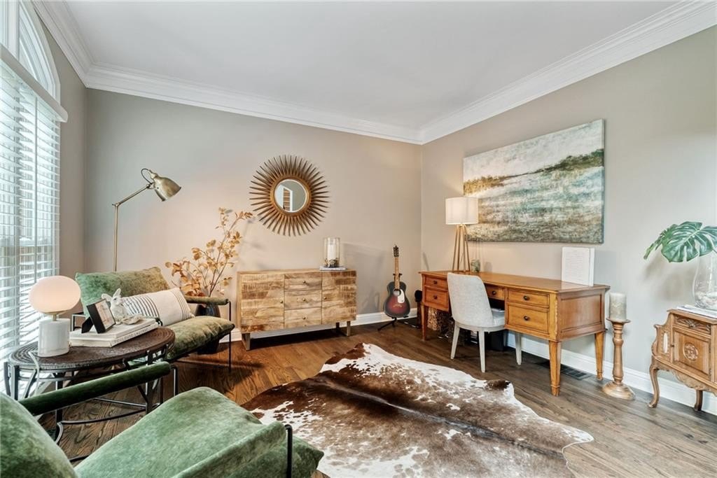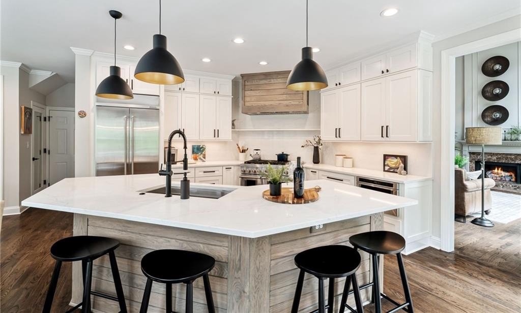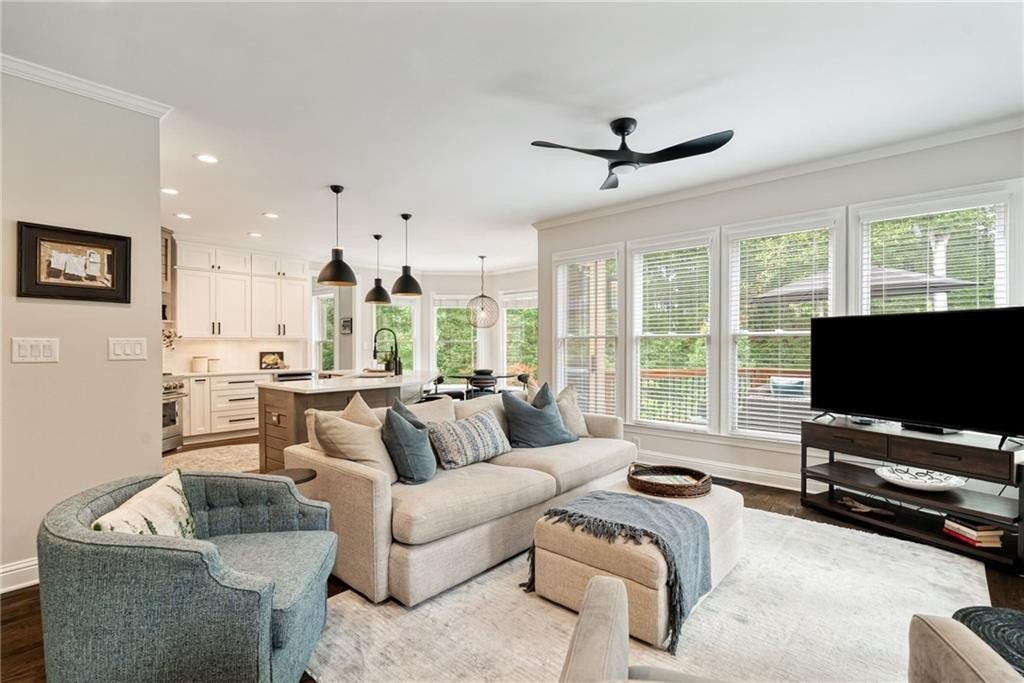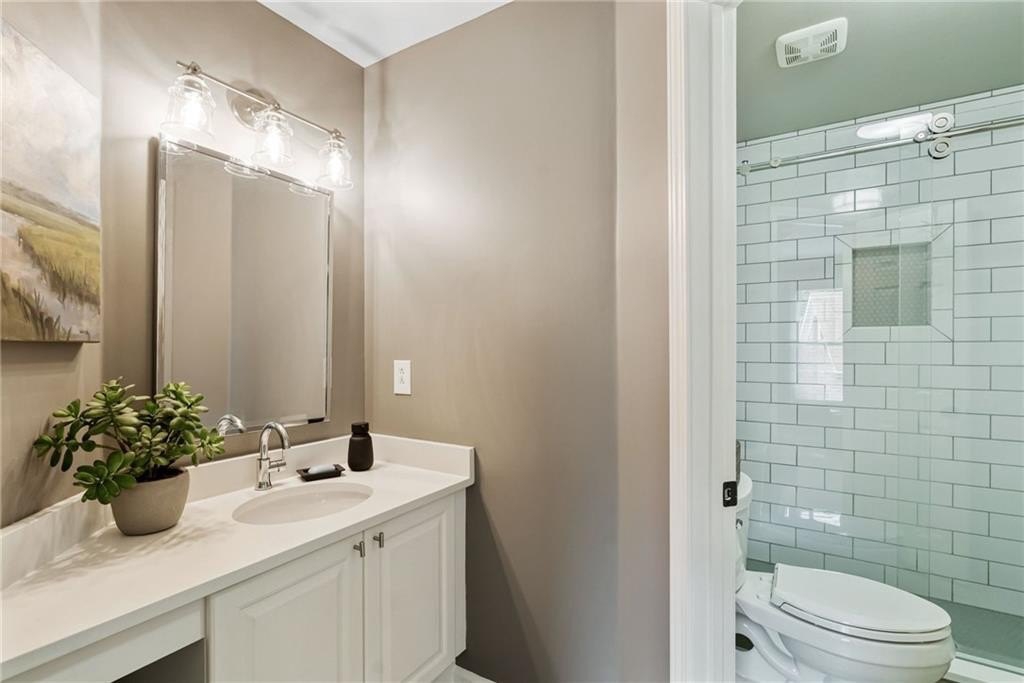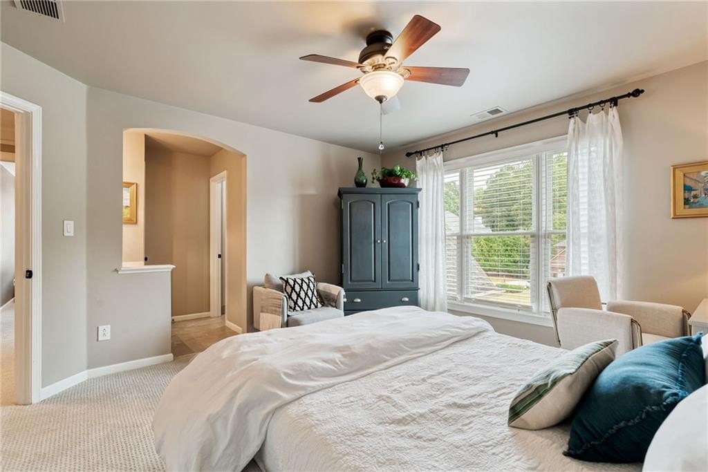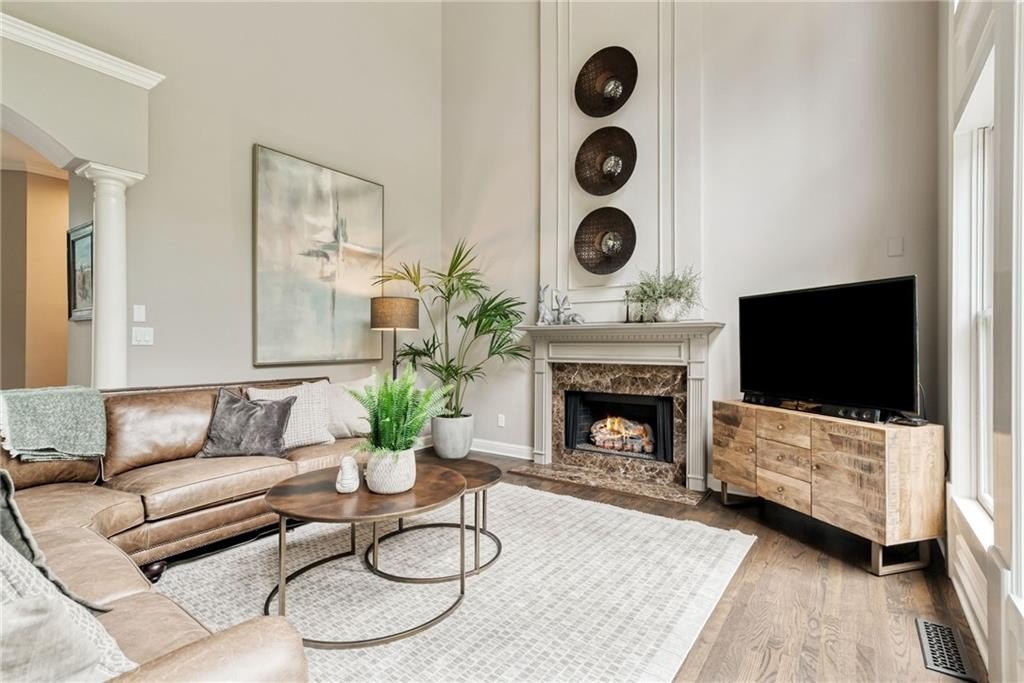 GORGEOUS BACKYARD OASIS JUST IN TIME FOR SUMMER! This 3 SIDE BRICK executive home has a RENOVATED KITCHEN AND MASTER BATH! Gorgeous designer touches throughout the home! 3 YO HEATED SALT WATER POOL w/ waterfall and tanning ledge, STACKED STONE OUTDOOR FIREPLACE and FLAT, LANDSCAPED, FENCED PRIVATE YARD make this one a stand out! EXPANSIVE WRAP AROUND SIDE AND REAR DECKS are perfect for friends and family gatherings. High trey ceilings and great views overlooking the wooded backyard are an additional bonus. The main floor has a 2 story foyer & living area with floor to ceiling windows. Enjoy this open floor plan with fully renovated kitchen featuring custom white oak island & range hood, quartz countertops, stainless steel KitchenAid appliances including a 6 burner gas freestanding range with double oven. Formal dining room and home office flex space round out the main level. UPSTAIRS you will find a RENOVATED MASTER SUITE WITH A DOUBLE SIDED FIREPLACE open to the master bedroom and the master spa bath with custom white oak cabinets. This space has a private sitting / dressing area as well. 3 additional secondary bedrooms (each with direct access to a full bathroom) complete this floor. ALL SECONDARY BATHROOMS HAVE BEEN UPDATED as well. The TERRACE LEVEL features a kitchenette / bar area, gym, several finished flex spaces, secondary home office - perfect for entertaining (or multi-generational living in-law suites) & a full bedroom and bathroom suite. The family / TV room has raised tray ceilings and another stacked stone fireplace and WALK OUT ACCESS FROM THE BASEMENT TO THE POOL DECK. GREAT CUSTOM, ENCLOSED STORAGE AREA under the deck! All new fixtures and modern lighting with center island. Most windows replaced 2021, hardwoods refinished, garage floor has epoxy finishes. Residents enjoy premier amenities including a junior Olympic pool and a second zero entry pool that was added just a couple of years ago. Enjoy miles of scenic walking trails through a private nature preserve along the Chattahoochee River, and a full sports complex with six lighted tennis courts, outdoor half court basketball, baseball field, soccer field, and sand volleyball. 2 fishing lakes, a fenced playground and updated clubhouse with fitness room round out the amenity package.