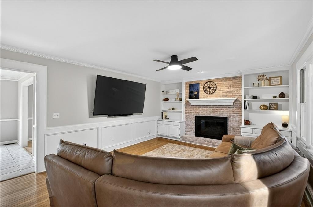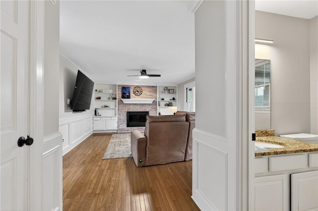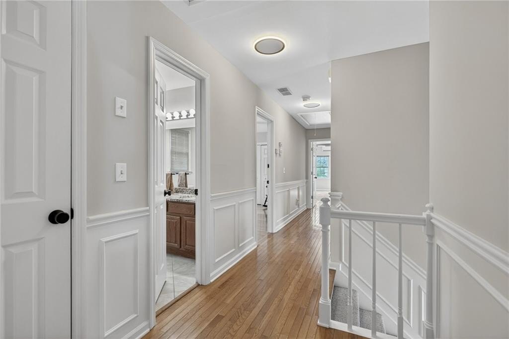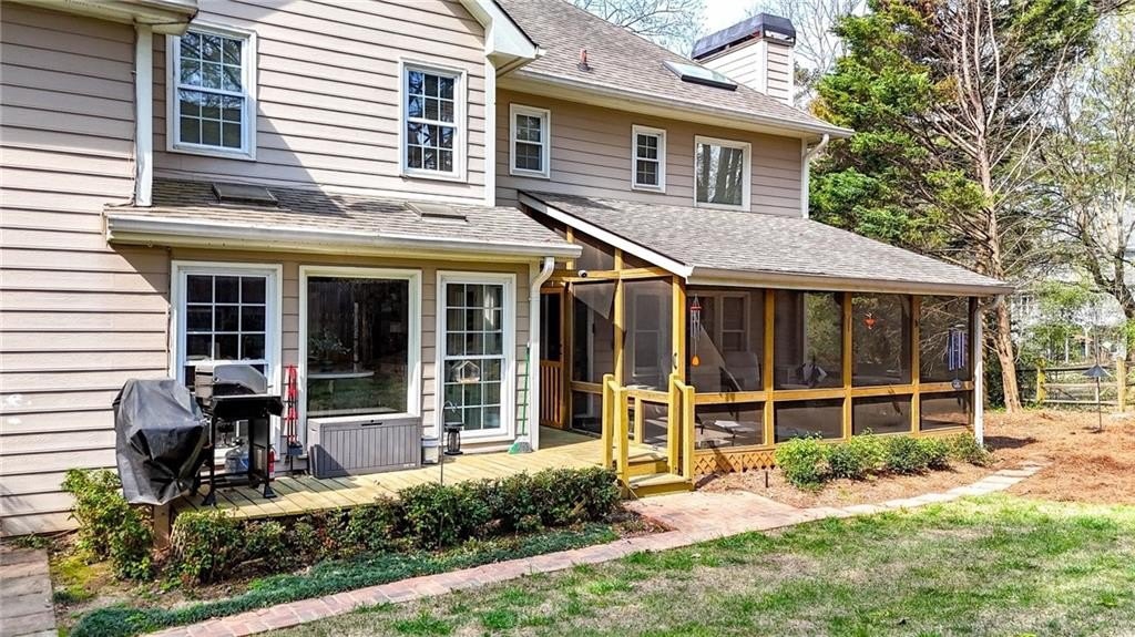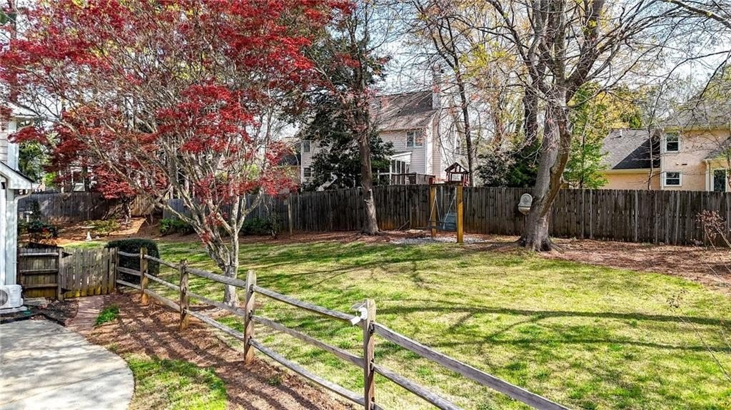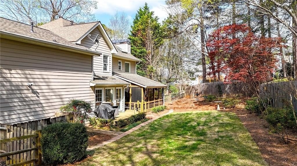 Tucked away on a private, fenced cul-de-sac lot, this classic East Cobb home offers timeless charm, versatile living spaces, and access to a highly desirable swim and tennis community. Inside, you'll find hardwood floors throughout both levels and a thoughtfully designed layout. The spacious family room features a brick fireplace with built-in bookcases, creating a warm and welcoming gathering space. The home offers both a formal living room and formal dining room, perfect for hosting or providing flexible space that could easily serve as a home office, playroom, study, or additional sitting room depending on your needs. The kitchen is bright and functional with granite countertops, double ovens, trash compactor, a large breakfast bar, and a sunny breakfast nook, flowing seamlessly into the main living areas. Just off the garage, a huge laundry room/mudroom provides excellent everyday functionality, along with access to a large storage room or workshop-ideal for hobbies, tools, or extra storage. Upstairs, the owner's retreat features a large walk-in closet and an updated bath with skylight, bringing in natural light for a spa-like feel. Two spacious secondary bedrooms share a full bath with dual vanities and granite countertops. A second staircase leads to an enormous bonus room with its own private full bath featuring tile and granite, offering incredible flexibility as a guest suite, media room, home office, gym or playroom. Step outside to the impressive vaulted screened porch, perfect for year-round enjoyment, overlooking the private, level, landscaped backyard complete with a grilling deck and swing-an inviting space for relaxing or entertaining outdoors. This home is the perfect blend of comfort, character, and convenience in the heart of East Cobb.