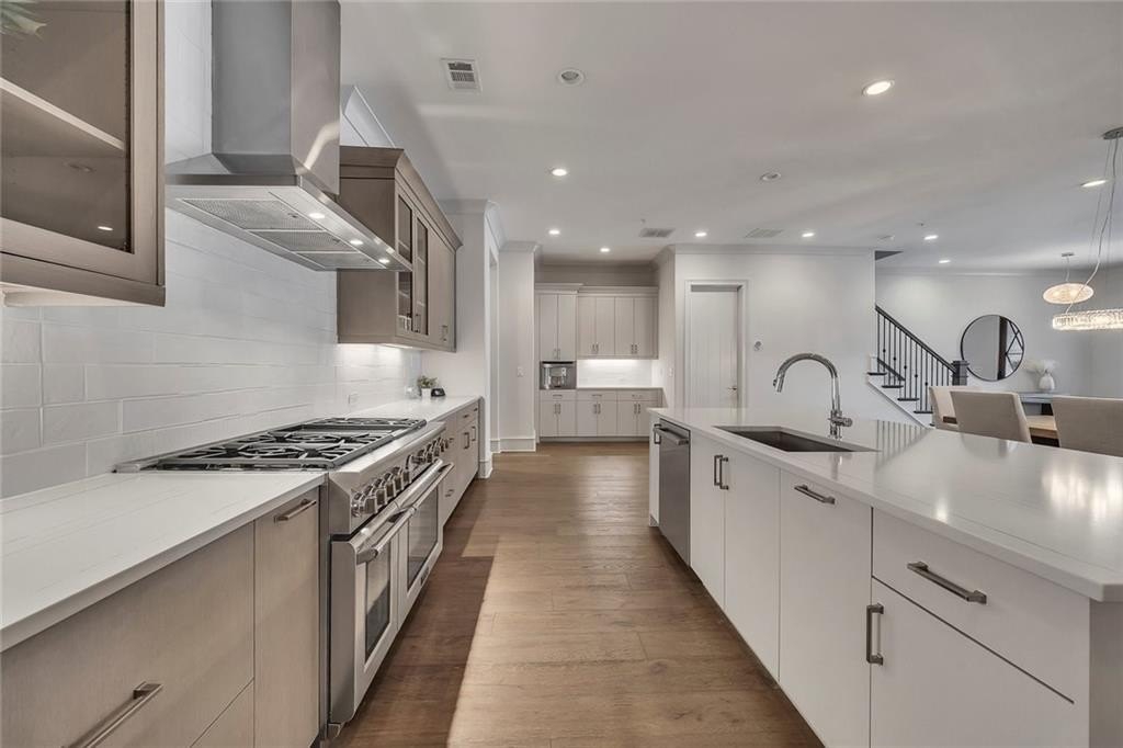 Welcome to Avalon Elegance, a rare opportunity to own one of the largest and most distinctive townhomes in Avalon's premier live-work-play community. Perfectly positioned on one of Avalon's coveted residential greens, this exceptional 3-bedroom, 3.5-bath residence offers over 3,300 square feet of thoughtfully curated luxury and design. Inside, sophisticated finishes and high-end upgrades define every space. The open-concept main level features designer flooring, a striking white stone fireplace, and a seamless flow between the living, dining, and chef's kitchen. Outfitted with premium Thermador appliances, quartz countertops, custom cabinetry, and a built-in espresso/cappuccino system, the kitchen is both functional and stunning. Retreat upstairs to oversized ensuite bedrooms, including a luxurious owner's suite with a spa-inspired bath, freestanding soaking tub, rain shower, and expansive walk-in closet. Additional features such as built-in whole-home audio, custom wood shutters, tray ceilings, and designer lighting elevate the home's refined aesthetic. A rare three-car garage with epoxy flooring, maintenance-free living, and HOA-included fiber-optic connectivity add everyday convenience. Residents enjoy access to Avalon's private pool, dog park, and vibrant social scene-just steps from upscale dining, shopping, and entertainment. Located minutes from Downtown Alpharetta and with easy access to GA-400, this home offers the perfect blend of luxury, lifestyle, and location