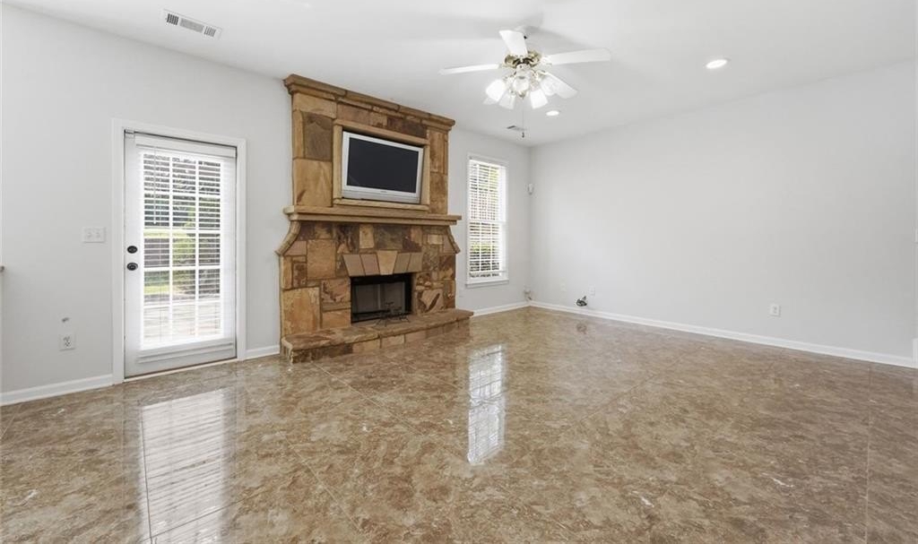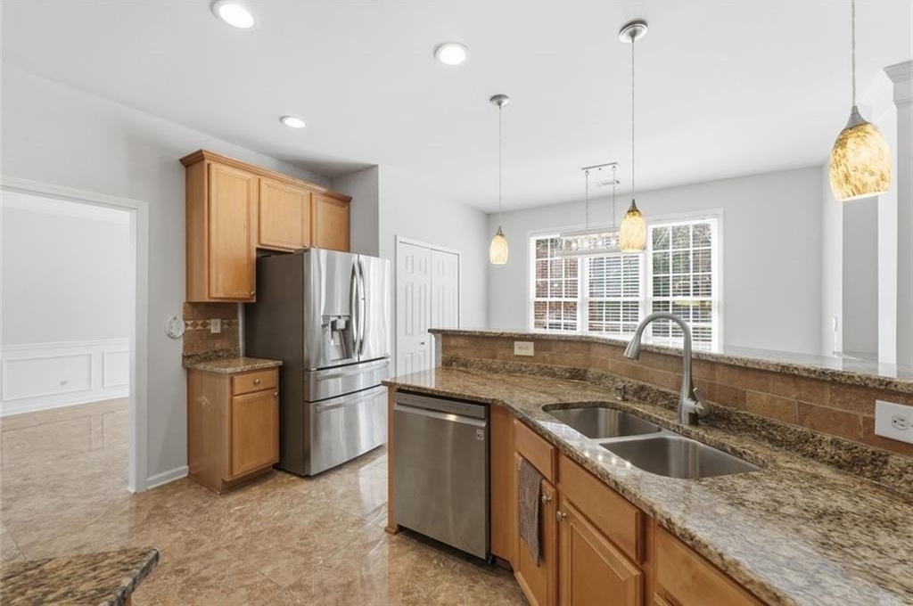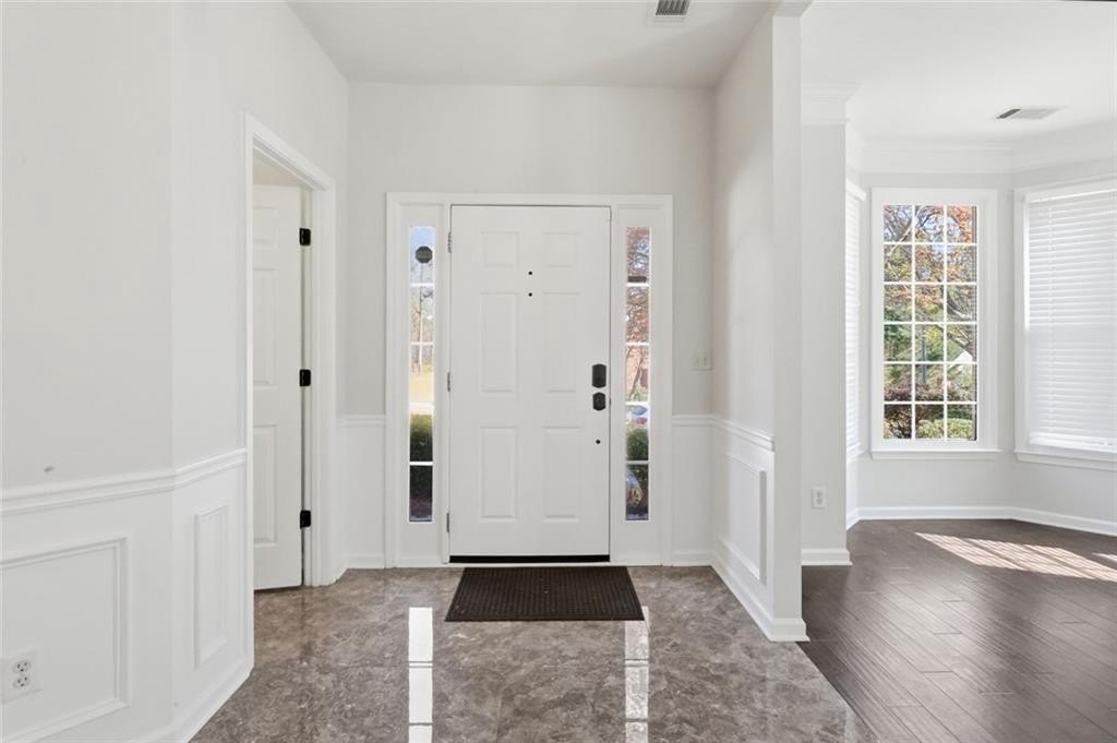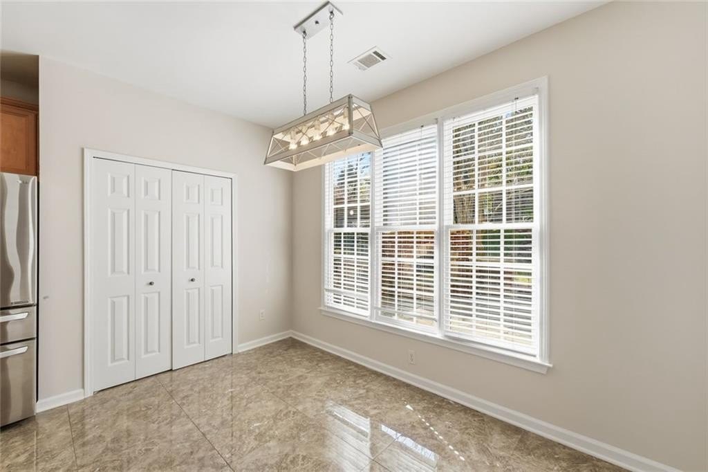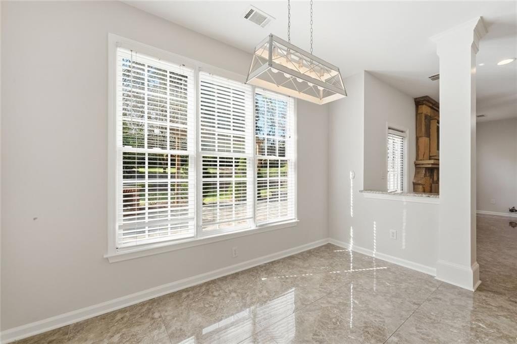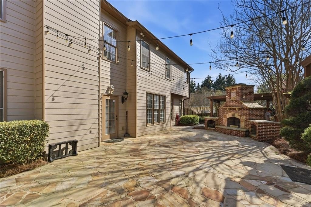 Welcome to this beautifully maintained home in the desirable Bailey Farms community in Lawrenceville! This charming residence offers the perfect blend of classic curb appeal and modern comfort, featuring a striking brick-front exterior, a spacious two-car garage, and a professionally landscaped yard. Step inside to discover a bright and elegant interior with abundant natural light. The formal dining room showcases gleaming tile floors, detailed wainscoting, and large windows-perfect for hosting gatherings and special occasions. The flowing layout leads into a warm and inviting kitchen and living space designed for both everyday living and entertaining. Upstairs, you'll find generously sized bedrooms and a well-appointed primary suite, providing comfort and privacy for the whole family. Out back, enjoy your own private retreat! The expansive stone patio is ideal for outdoor entertaining, complete with charming string lights and a custom-built brick fireplace-perfect for cozy evenings and weekend get-togethers. Conveniently located near shopping, dining, and top-rated schools, this home offers both tranquility and accessibility.