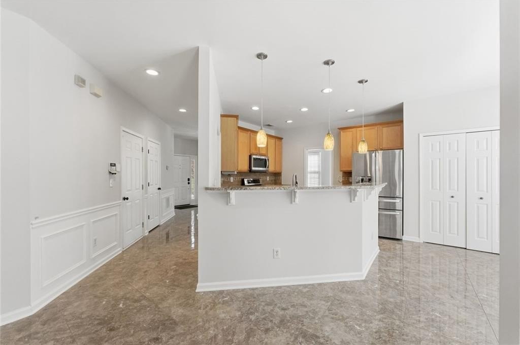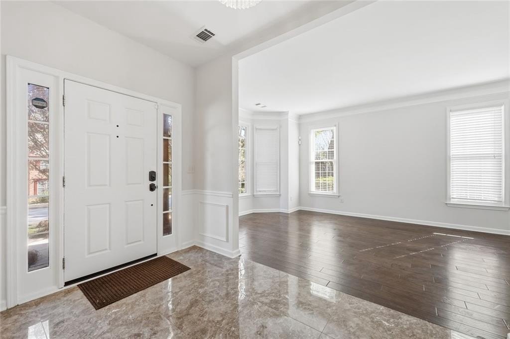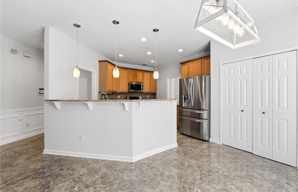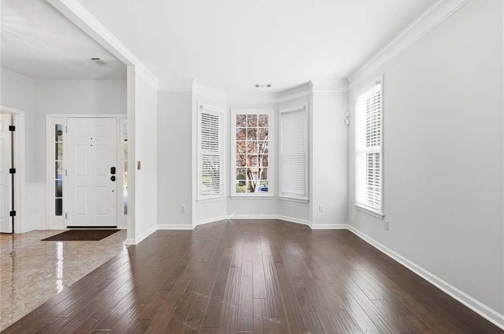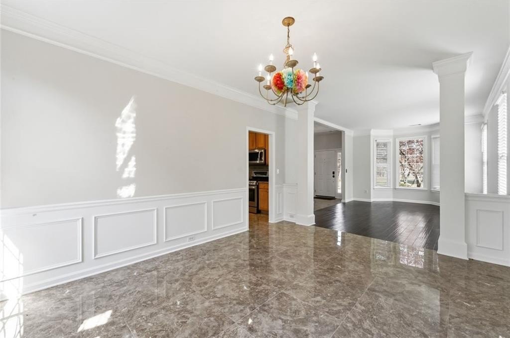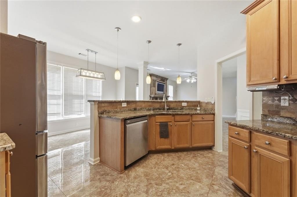 Welcome to this beautifully maintained home in the desirable Bailey Farms community in Lawrenceville! This charming residence offers the perfect blend of classic curb appeal and modern comfort, featuring a striking brick-front exterior, a spacious two-car garage, and a professionally landscaped yard. Step inside to discover a bright and elegant interior with abundant natural light. The formal dining room showcases gleaming tile floors, detailed wainscoting, and large windows-perfect for hosting gatherings and special occasions. The flowing layout leads into a warm and inviting kitchen and living space designed for both everyday living and entertaining. Upstairs, you'll find generously sized bedrooms and a well-appointed primary suite, providing comfort and privacy for the whole family. Out back, enjoy your own private retreat! The expansive stone patio is ideal for outdoor entertaining, complete with charming string lights and a custom-built brick fireplace-perfect for cozy evenings and weekend get-togethers. Conveniently located near shopping, dining, and top-rated schools, this home offers both tranquility and accessibility.