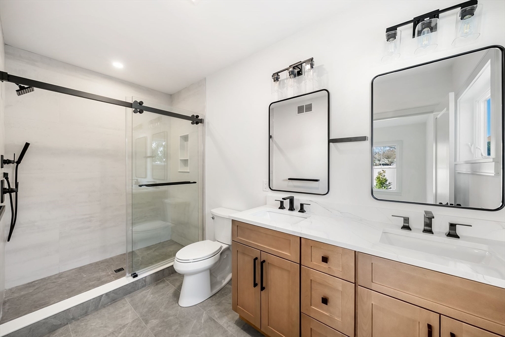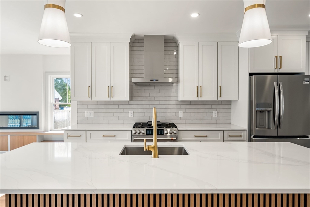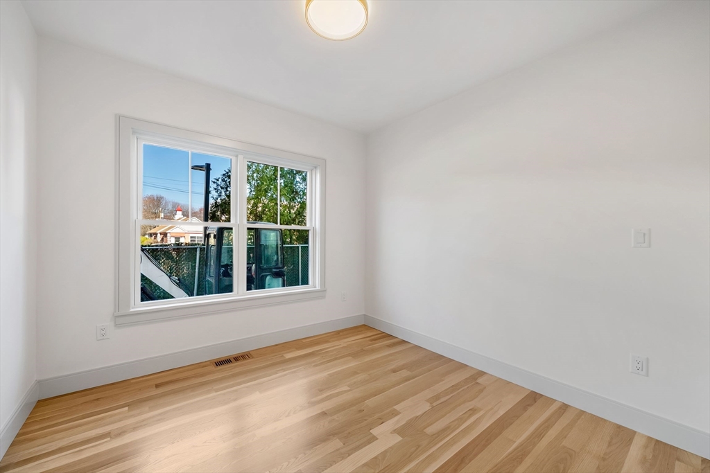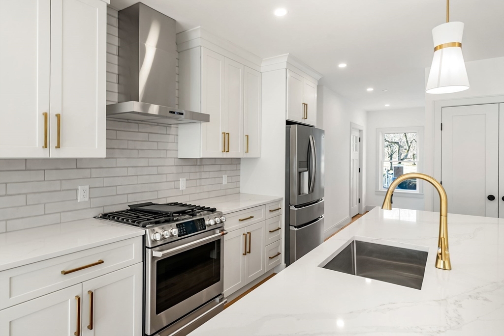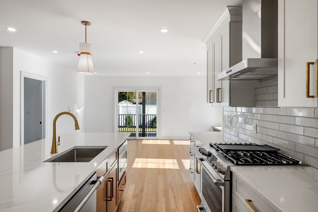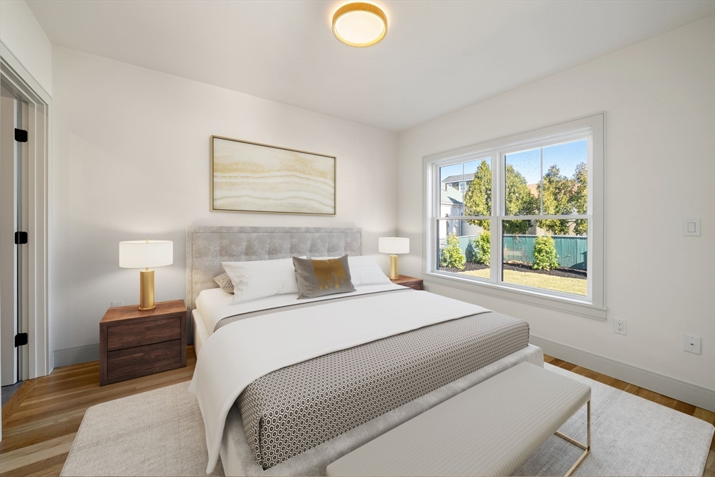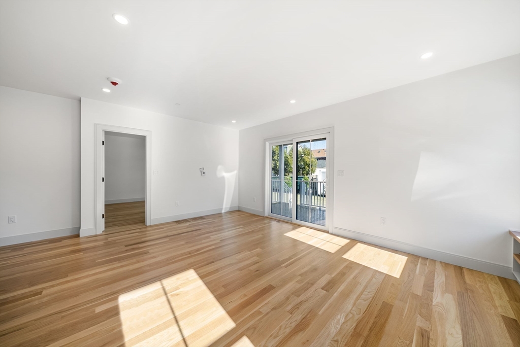 Perfectly positioned across from Spot Pond, this newly constructed 3-bedroom, 2-bath luxury residence offers a refined blend of elevated design and natural beauty. This direct-entry first-floor home is thoughtfully crafted with custom finishes throughout, showcasing white oak flooring, bespoke cabinetry, and elegant quartz surfaces in both the kitchen and baths. The open-concept layout is designed for modern living and effortless entertaining, highlighted by stunning custom-designed living room built-ins anchored by a sleek, modern fireplace. A private ~200 sq ft deck extends the living space outdoors, while select rooms capture partial pond views, bringing a serene backdrop indoors. Ideally located just moments from the trails of Middlesex Fells Reservation and Stone Zoo, with convenient access to Interstate 93, this residence offers an exceptional lifestyle of both tranquility and connectivity complete with two off-street parking spaces and dedicated storage.