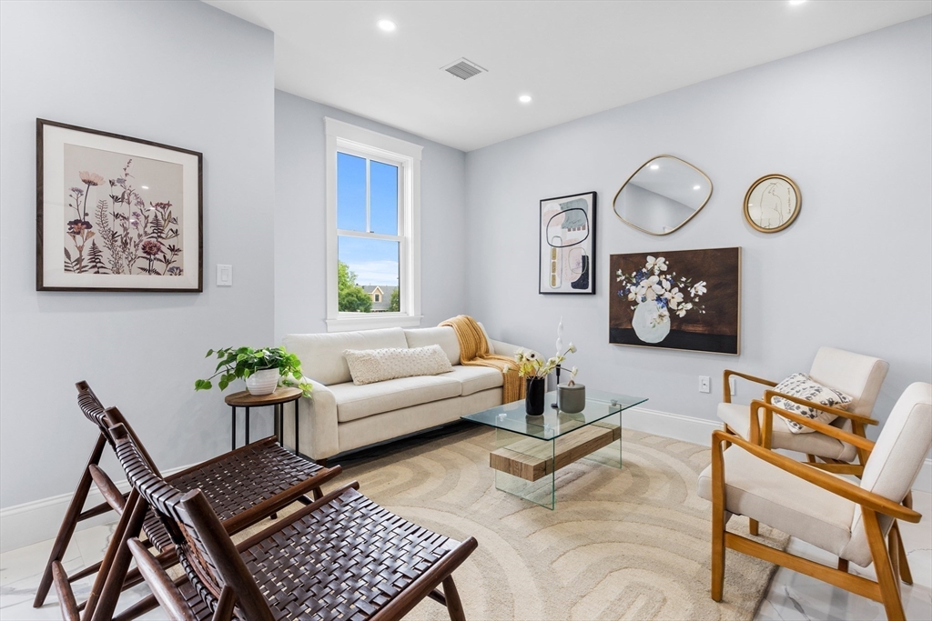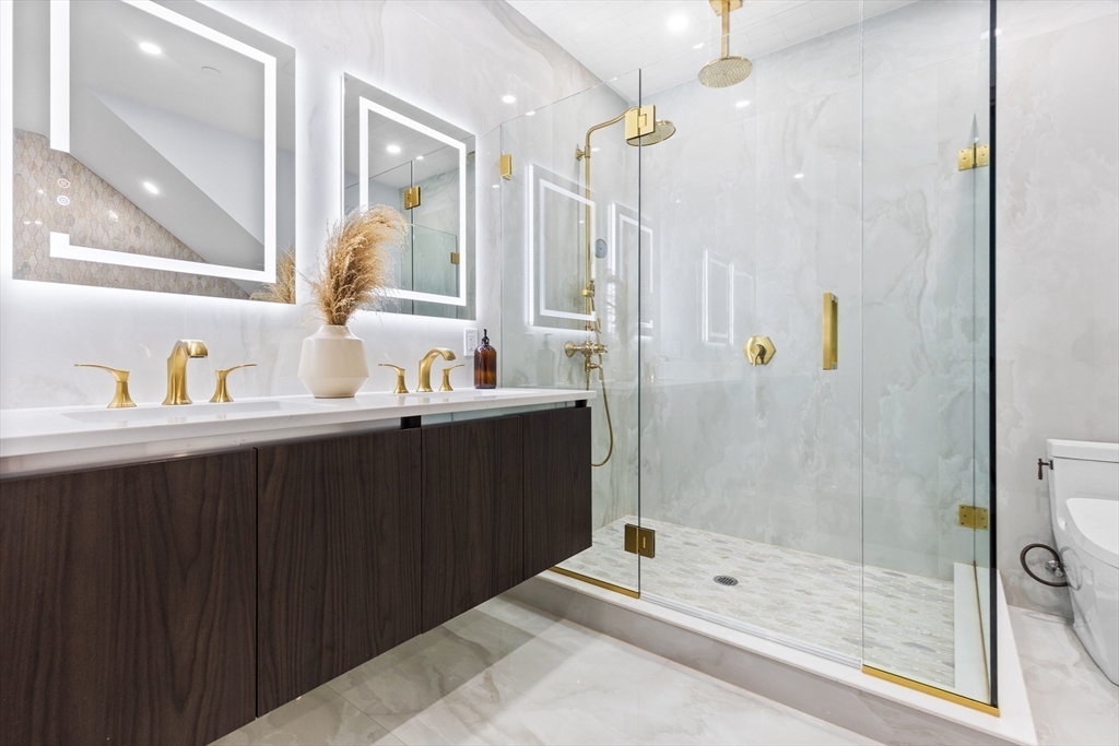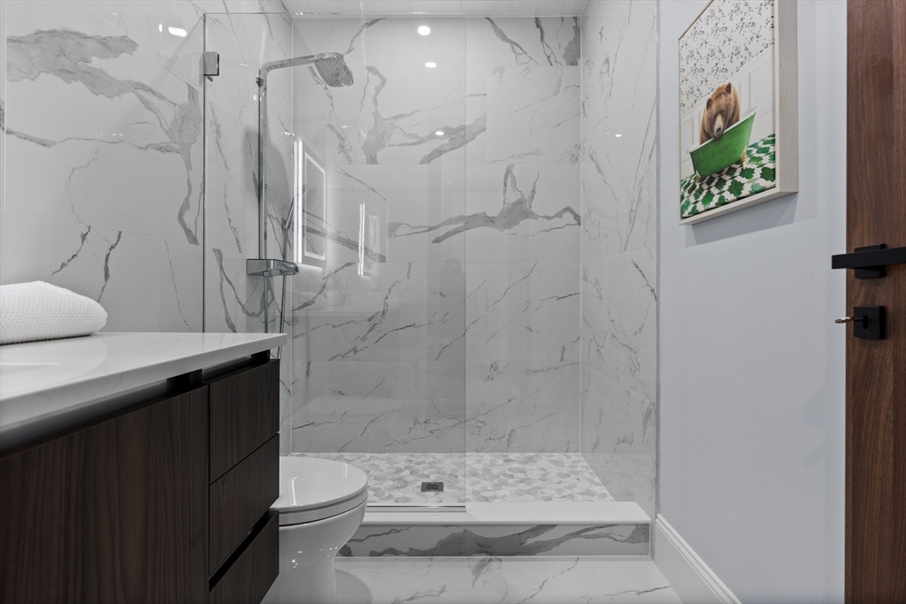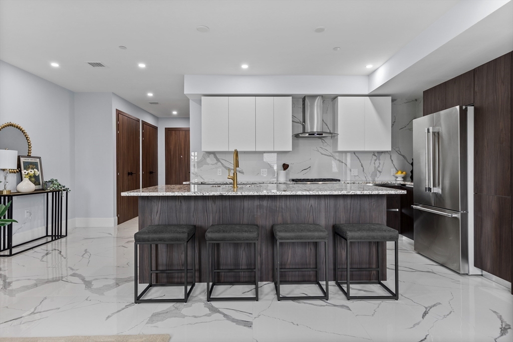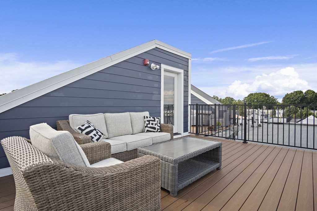 Experience luxury living in the heart of Savin Hill with this stunning new construction bi-level penthouse. Offering 2 bedrooms, 2 full baths, and 2 half baths, designed with an open-concept layout perfect for modern living. The chef-inspired kitchen showcases custom Italian cabinetry, quartz countertops, and premium Thermador appliances. Enjoy a seamless transition between indoor and outdoor living with a deck off of the main living area. On the bedroom level, you’ll find the primary suite featuring a walk-in closet and a spa-like bath complete with double vanities, a luxurious shower, and a deep soaking tub. Ascend to the top level to discover a private roof deck offering beautiful views, perfect for entertaining or relaxing under the stars. This unit also includes 2 garage spots, in-unit laundry, a common patio and an abundance of storage space. Nestled on a quiet residential street, moments from public transportation and the vibrant entertainment & dining offerings of Savin Hill.