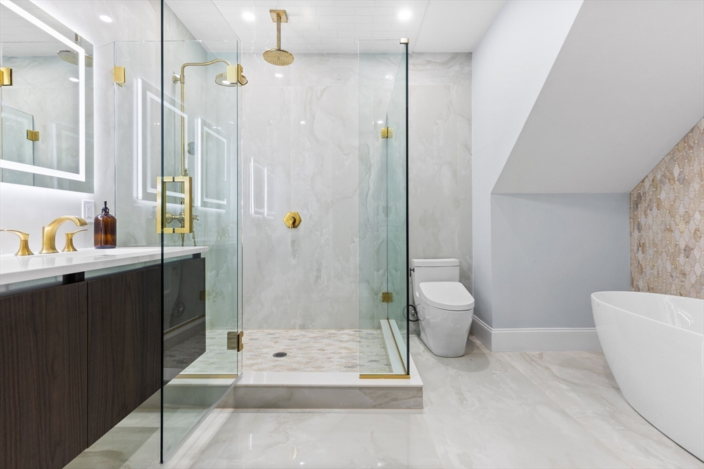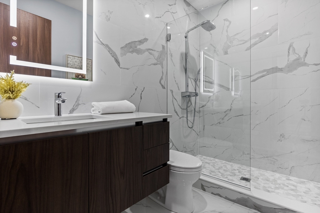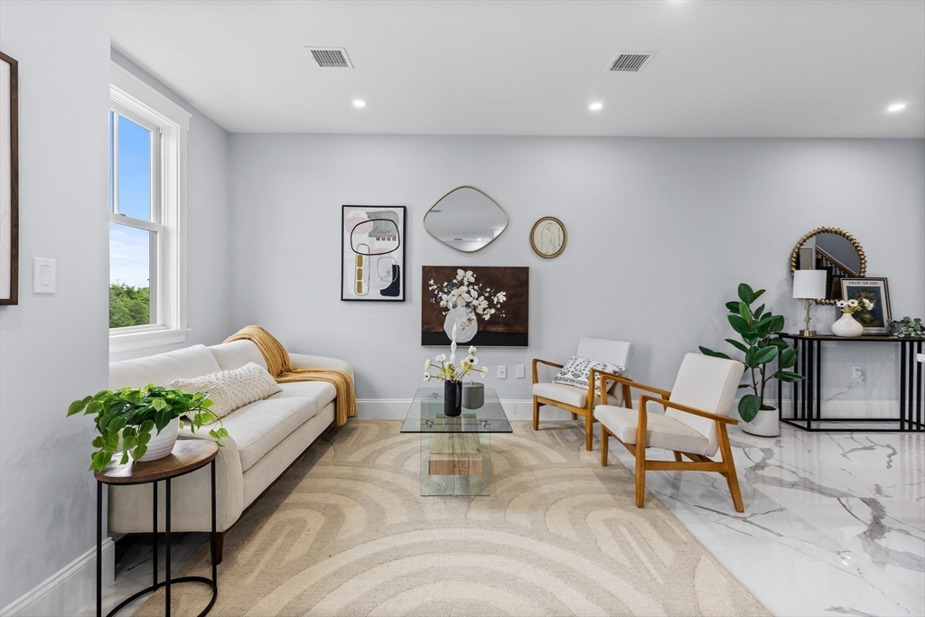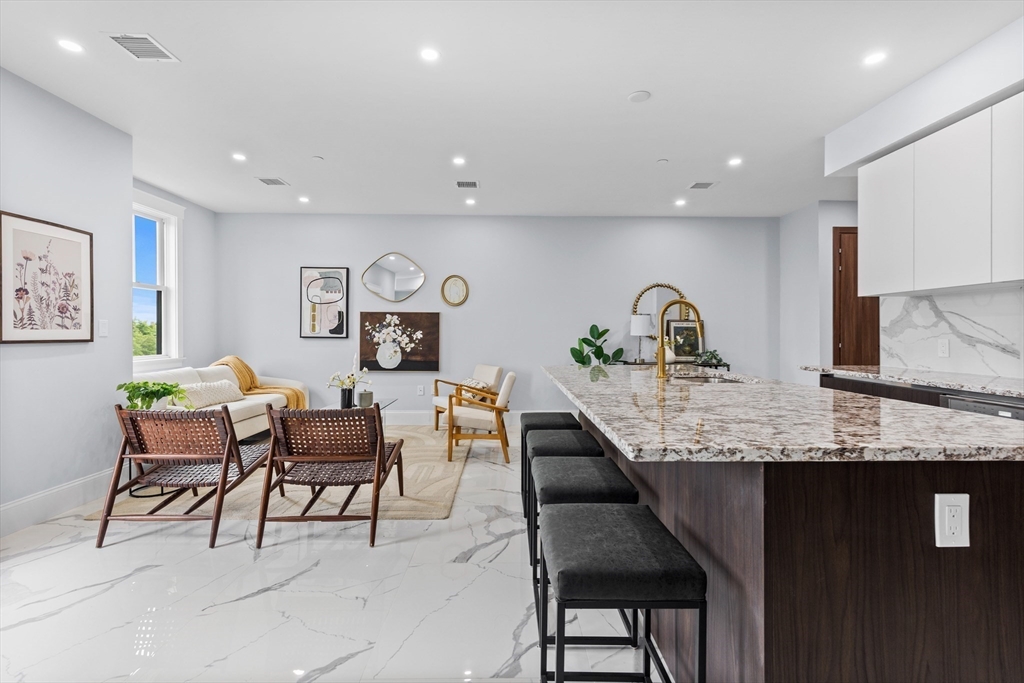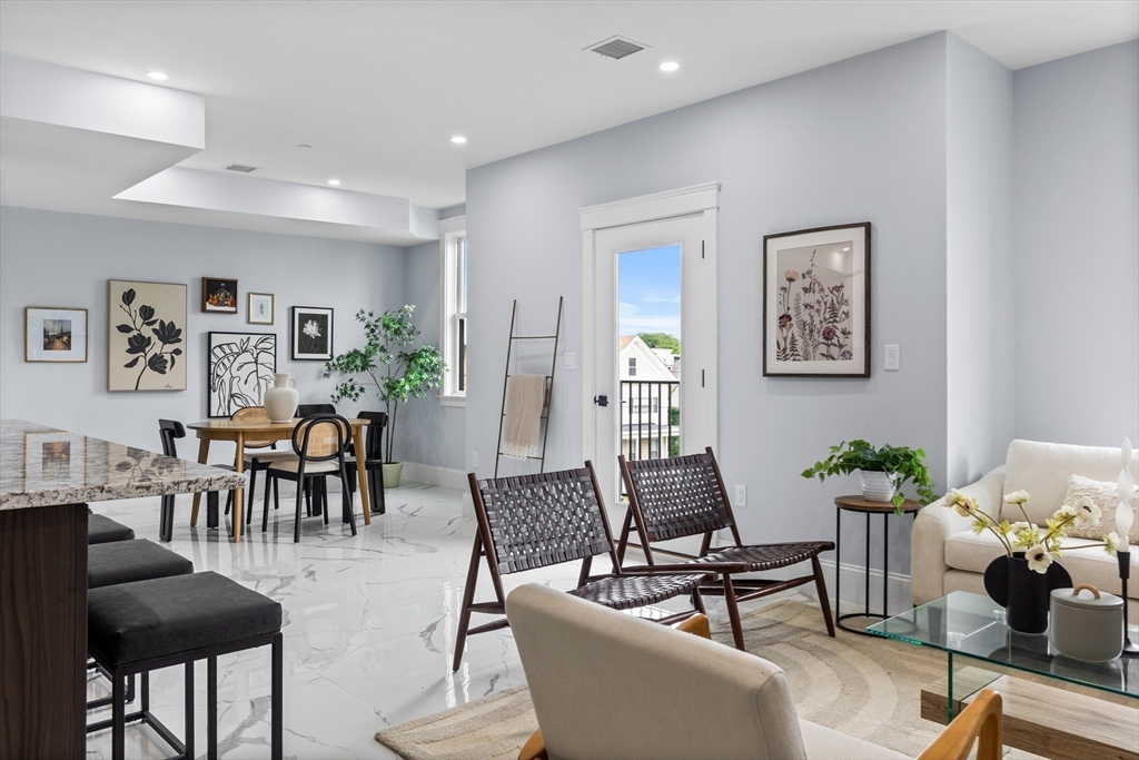 Experience luxury living in the heart of Savin Hill with this stunning new construction bi-level penthouse. Offering 2 bedrooms, 2 full baths, and 2 half baths, designed with an open-concept layout perfect for modern living. The chef-inspired kitchen showcases custom Italian cabinetry, quartz countertops, and premium Thermador appliances. Enjoy a seamless transition between indoor and outdoor living with a deck off of the main living area. On the bedroom level, you’ll find the primary suite featuring a walk-in closet and a spa-like bath complete with double vanities, a luxurious shower, and a deep soaking tub. Ascend to the top level to discover a private roof deck offering beautiful views, perfect for entertaining or relaxing under the stars. This unit also includes 2 garage spots, in-unit laundry, a common patio and an abundance of storage space. Nestled on a quiet residential street, moments from public transportation and the vibrant entertainment & dining offerings of Savin Hill.