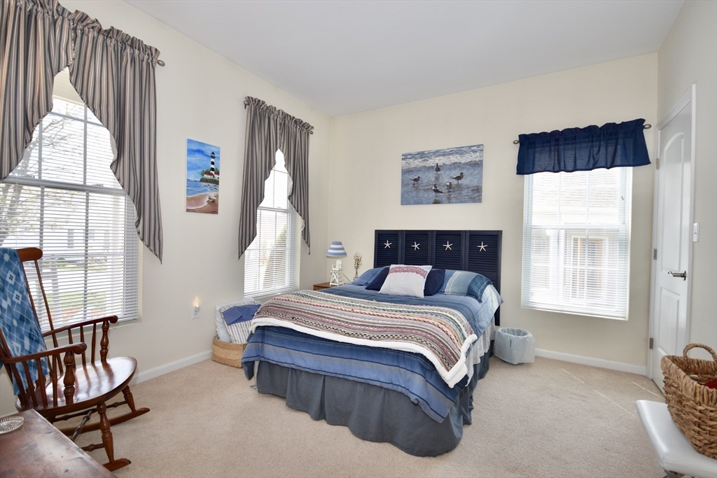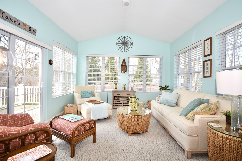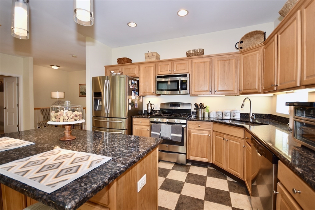 Discover your new sanctuary at Village Crossing! This contemporary home in an active adult community offers style, comfort, and convenience, ideal for living or retiring. Step into the sunlit entrance that floods the open-concept space. The LR features hardwood floors, a fireplace, and a dining area with skylights - perfect for gatherings. The open concept flows from the LR to the bright and airy sunroom. Descend to the partially finished basement, cleverly converted for added value, with a half-bath, storage, and workshop space. With 2B and 2.5 B, relaxation and entertainment abound. The kitchen is complete with stainless appliances which includes a new refrigerator, and granite countertops. Step outside to a beautifully landscaped yard, perfect for gatherings. In a serene neighborhood, yet near shopping, White Horse beach, and dining. Don't miss this opportunity to make it yours!