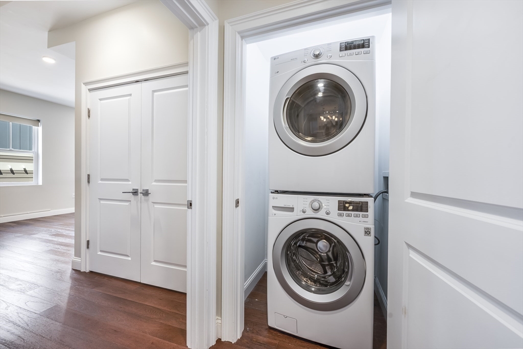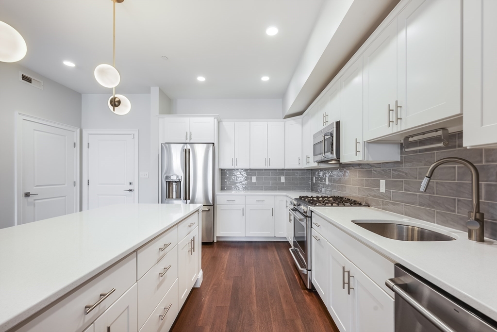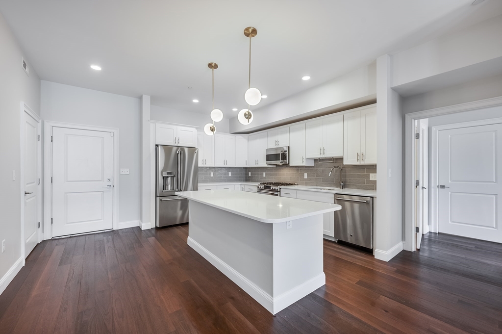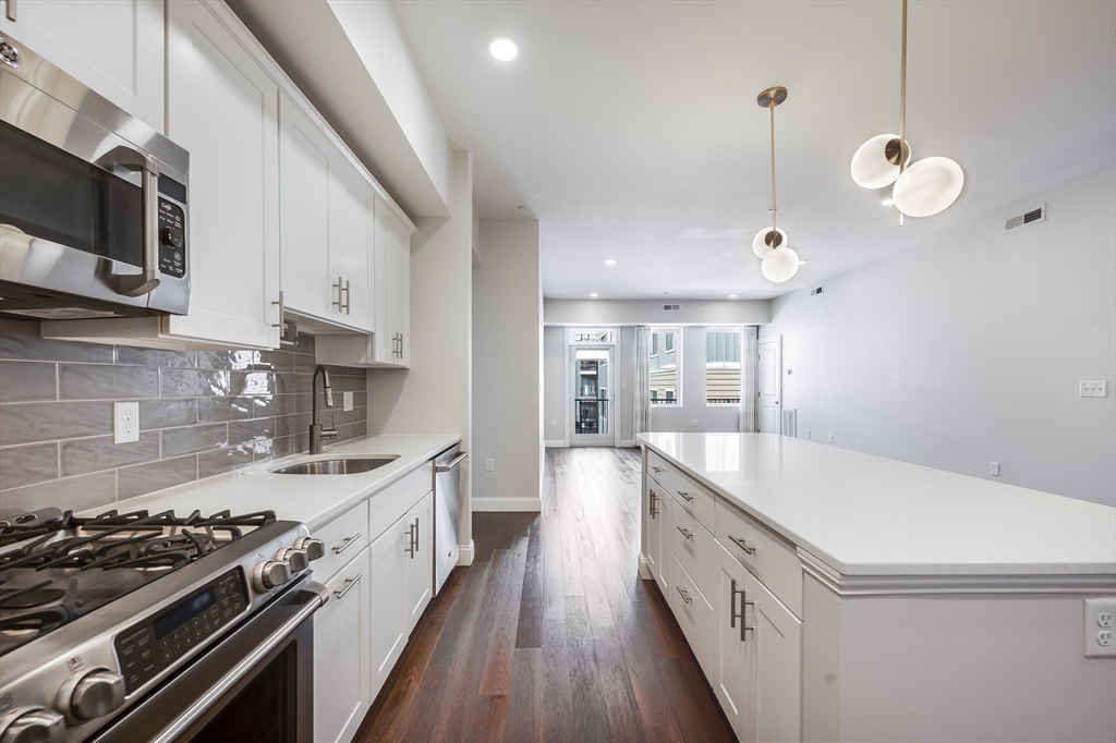 Welcome to this beautifully maintained 2-bedroom, 2-bath condo, built in 2017 and freshly painted for a move-in ready experience. Ideally situated just moments from the Red Line, with effortless access to the Seaport, Downtown Boston, and major commuter routes, this home offers the perfect blend of style, comfort, and convenience.Entire condo is bright and offers an open living space featuring hardwood floors, high ceilings, and direct access to a private deck—perfect for morning coffee or evening relaxation. The modern kitchen boasts stainless steel appliances, quartz countertops, and ample cabinetry, seamlessly flowing into the dining and living areas. Both bedrooms are generously sized, with the primary suite offering a walk-in closet and a sleek, en-suite bath. Additional features include central air, in-unit laundry, extra storage, and garage parking for one car. This professionally managed elevator building offers peace of mind and low-maintenance living.